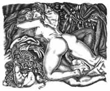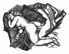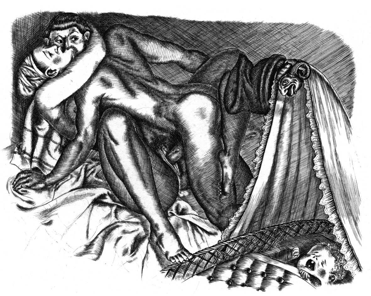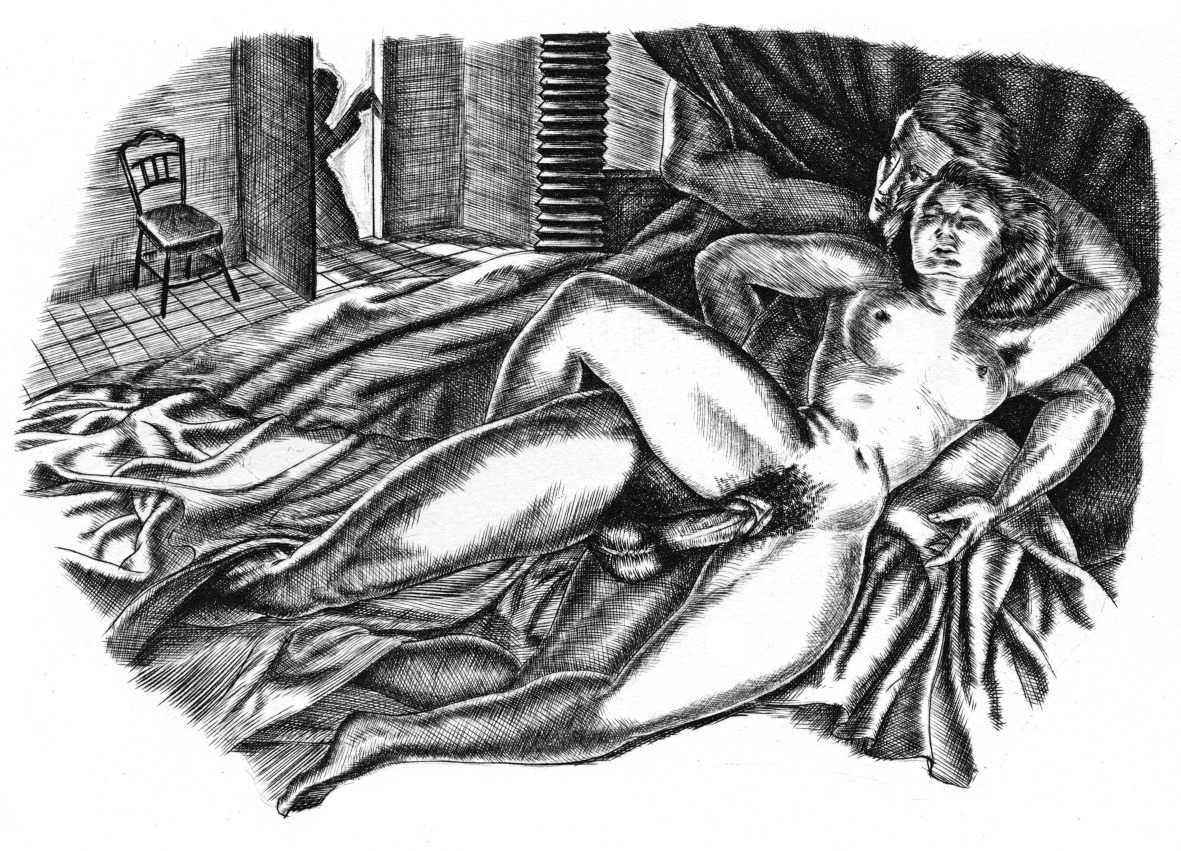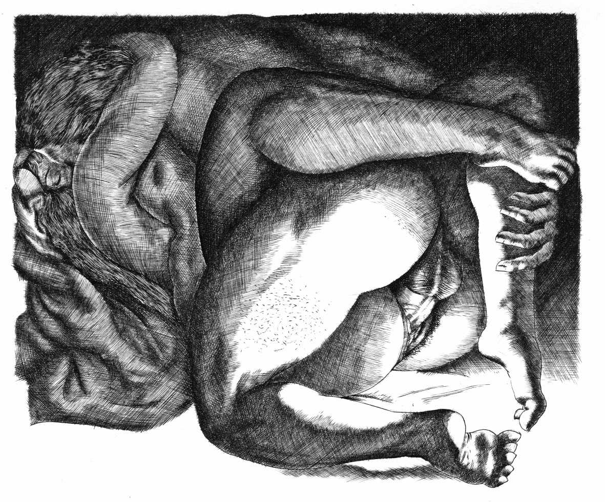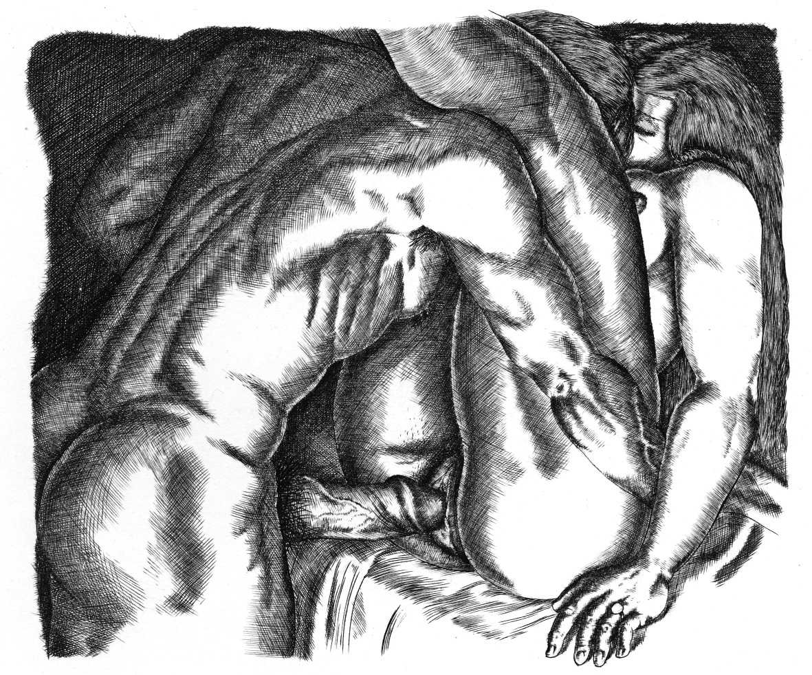 Pietro Aretino’s Sonetti Lussuriosi (Sonnets luxurieux in French), also known as I Modi or ‘The positions’, are the subject of a Themes and Topics entry which you can find here. It seems surprising that so few modern illustrators have revisited what was for centuries a key erotic text, but Tavy Notton brilliantly revisits Renaissance artist Marcantonio Raimondi’s sixteen classic sexual variants, giving us a powerful sense of how satisfying sex can be for both people involved. And in such a much more powerful, convincing fashion than most illustrated sex manuals!