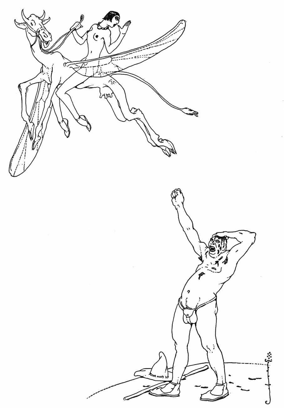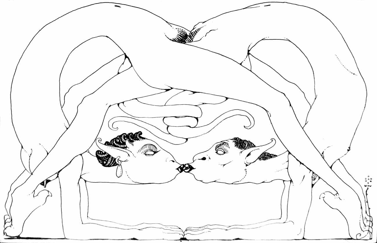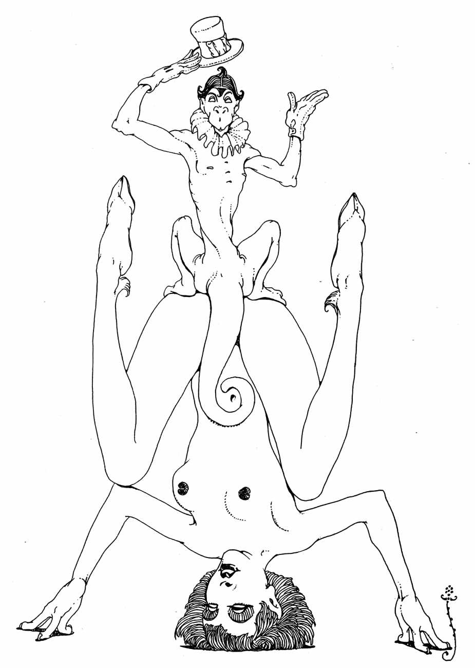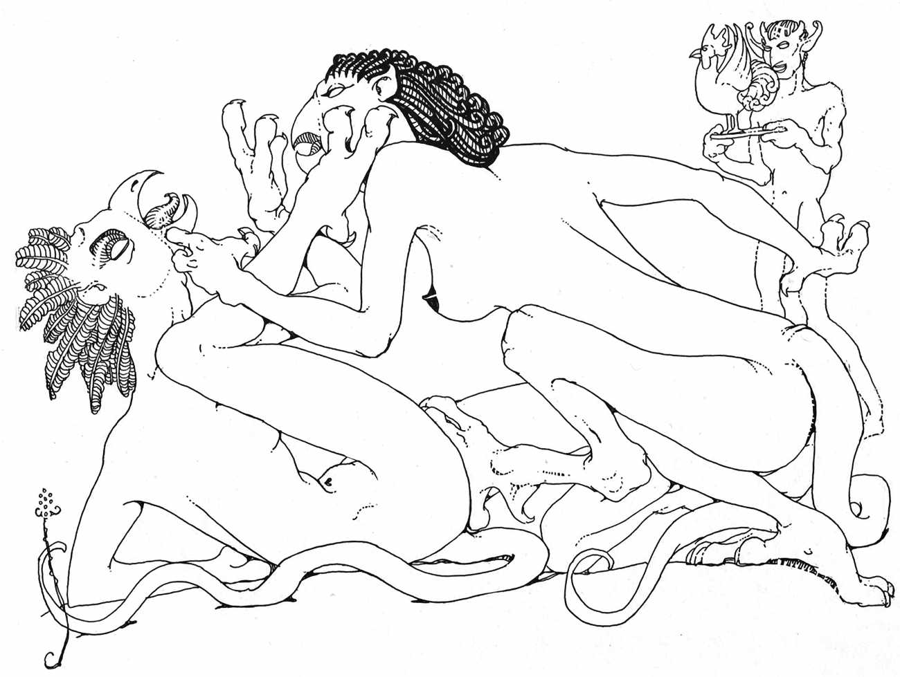 In New York in 1929 Blaine decided to publish a portfolio of his clever drawings combining fantasy and sexuality. He called it Venus Sardonica, the ‘sardonic’ implying exactly the sense of critically mocking the sexual mores that he was exploring in his magnificent extravaganzas. Each of the fifty drawings depicts part-humans, part-creatures involved in a wide variety of sexual interactions.