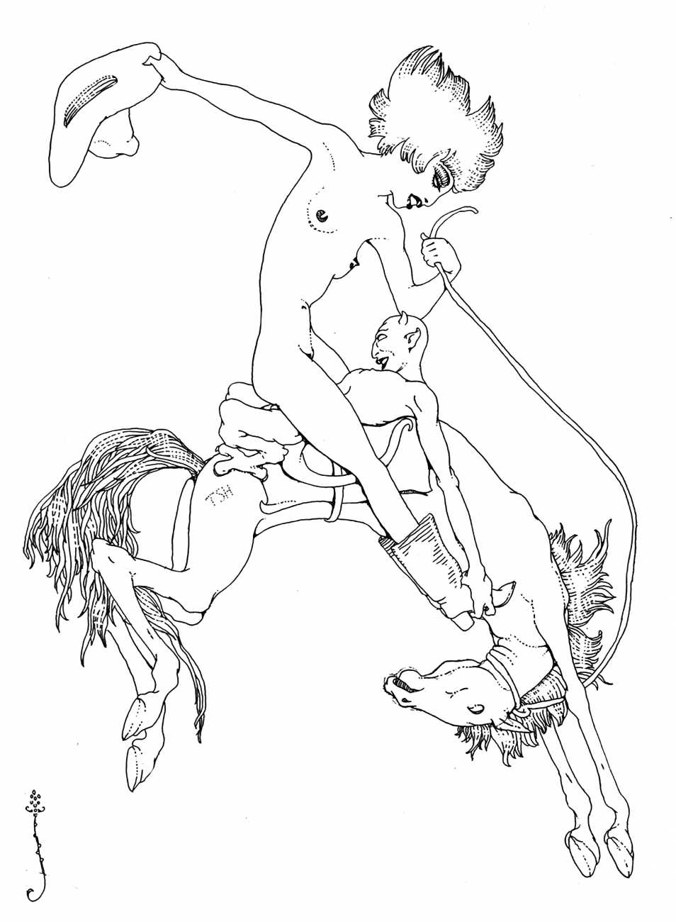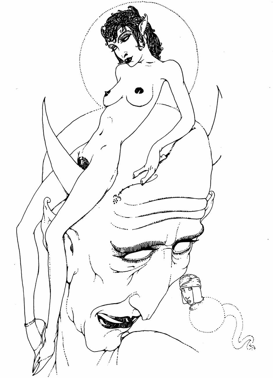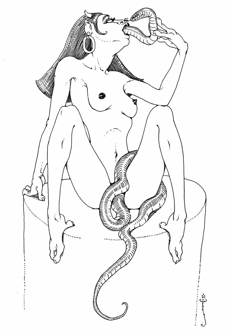 In New York in 1929 Blaine decided to publish a portfolio of his clever drawings combining fantasy and sexuality. He called it Venus Sardonica, the ‘sardonic’ implying exactly the sense of critically mocking the sexual mores that he was exploring in his magnificent extravaganzas. Each of the fifty drawings depicts part-humans, part-creatures involved in a wide variety of sexual interactions.