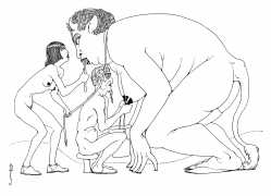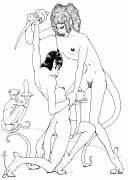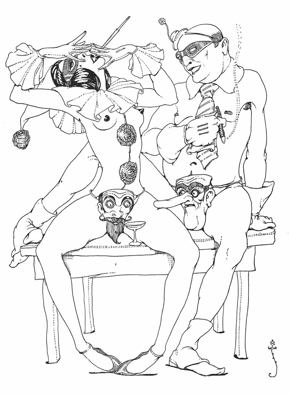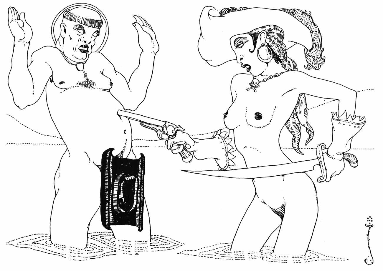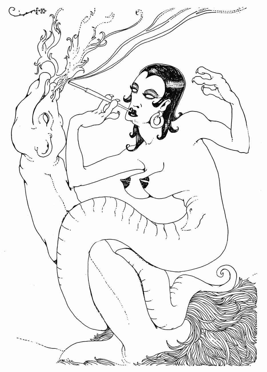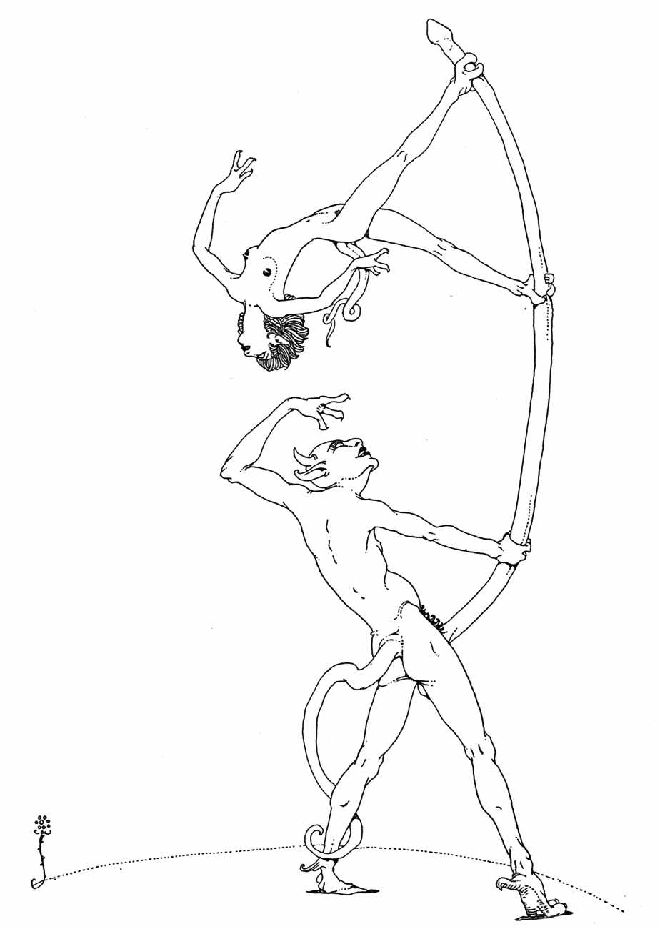 In New York in 1929 Blaine decided to publish a portfolio of his clever drawings combining fantasy and sexuality. He called it Venus Sardonica, the ‘sardonic’ implying exactly the sense of critically mocking the sexual mores that he was exploring in his magnificent extravaganzas. Each of the fifty drawings depicts part-humans, part-creatures involved in a wide variety of sexual interactions.