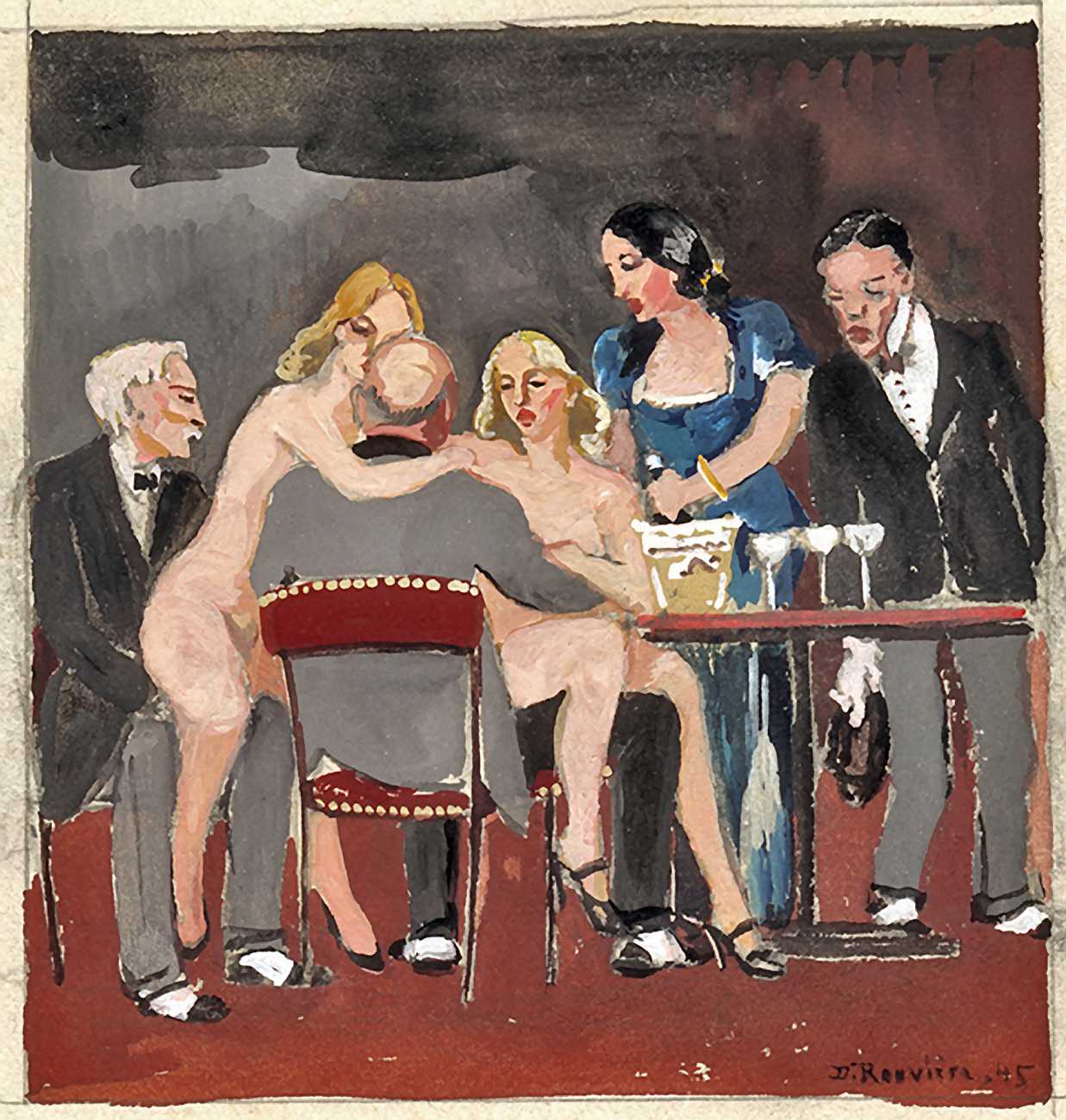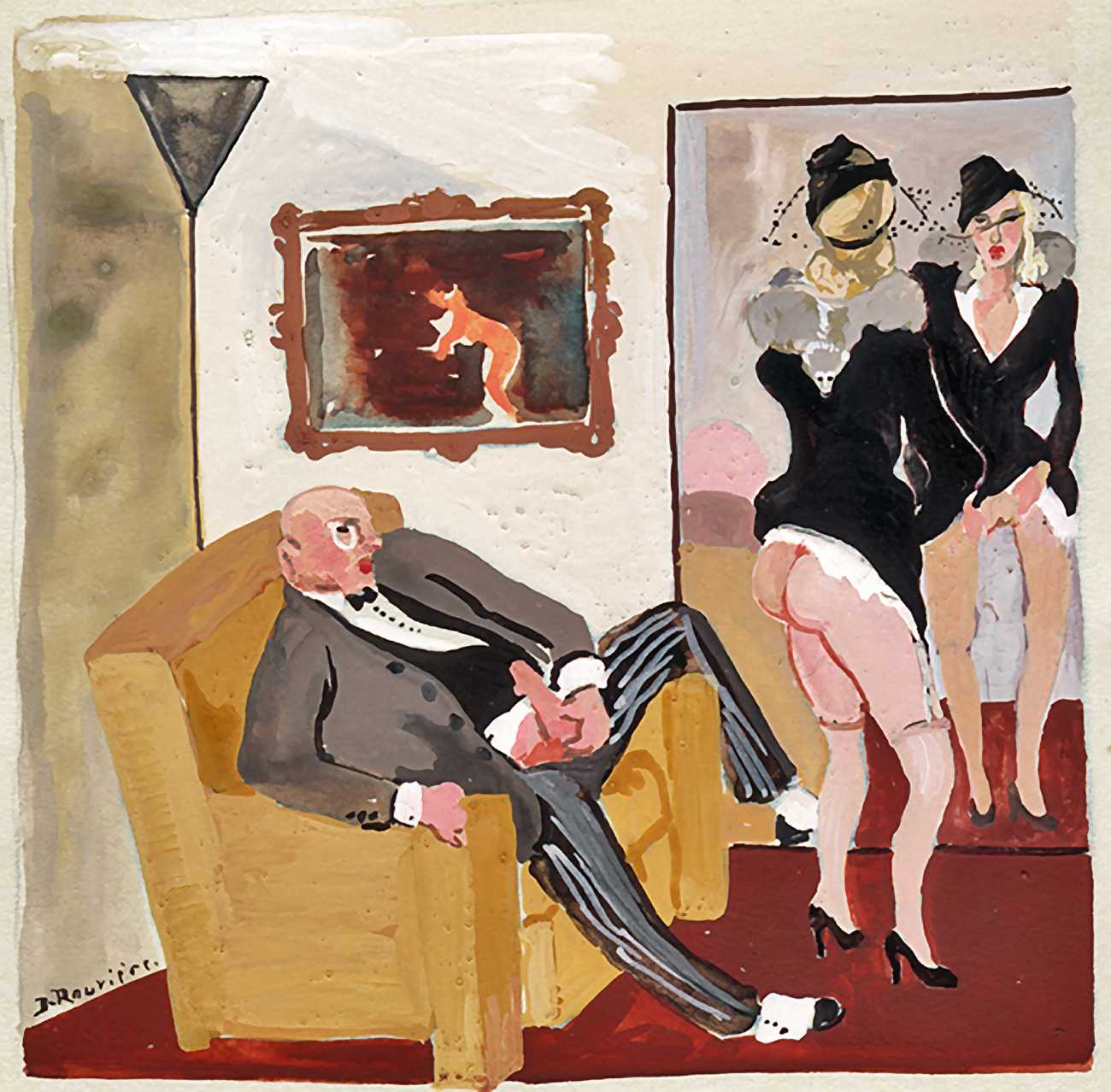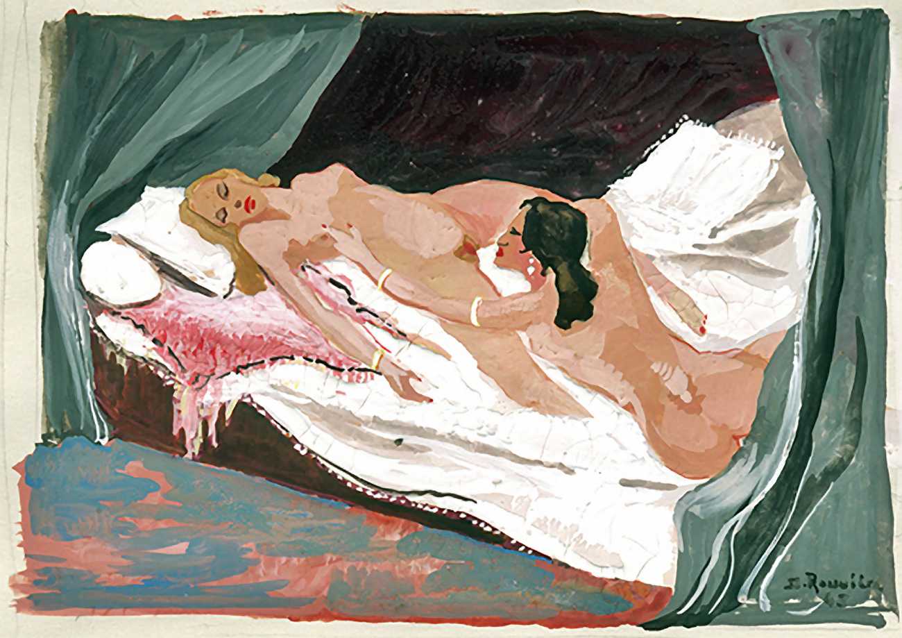 A small but perfectly formed portfolio of watercolours from 1945 make up what appears to be Rouvière’s only known foray into erotica, which is a pity as he was rather good at depicting domestic sex with a light, bright palette.