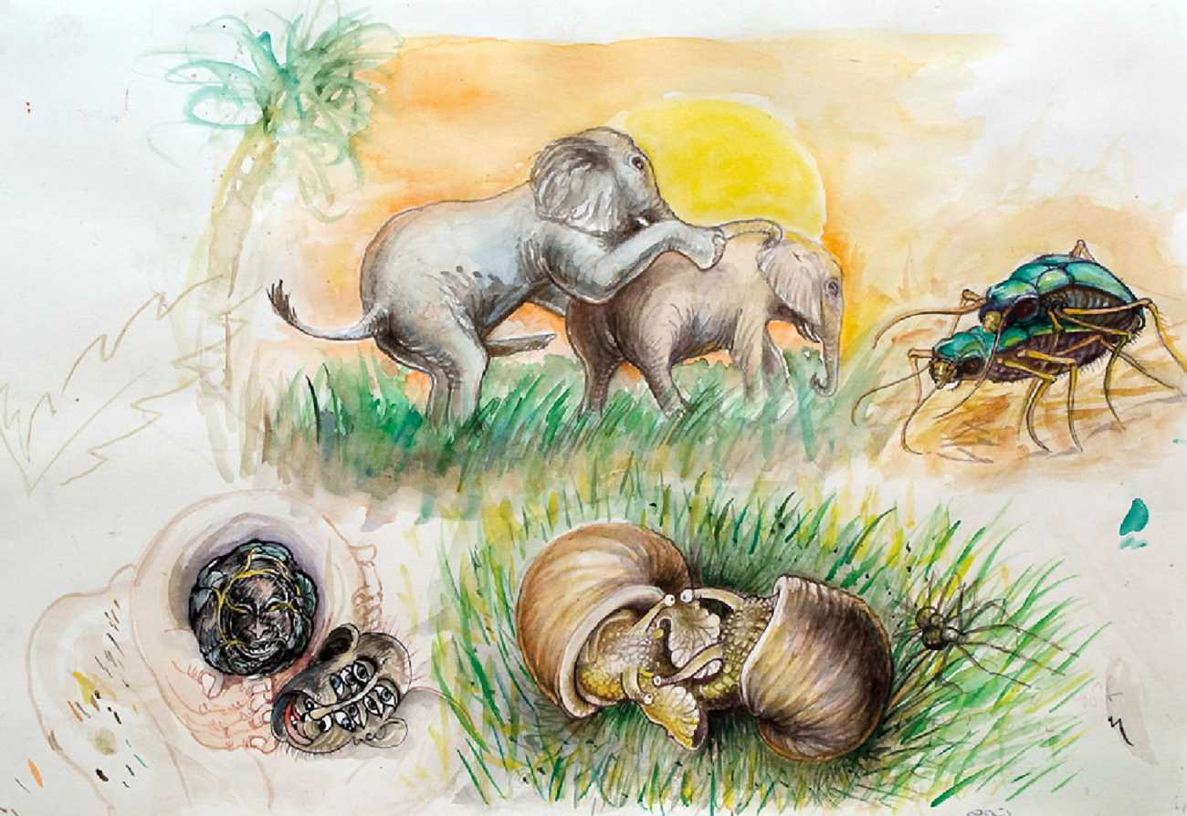 As you will see from the Big Bang paintings, Ulf Rahmberg regularly reworks his images unlimited by the edges of the original paper; he is quite happy to tape an extension patch as needed. We have also included several of the preliminary sketches for Big Bang.