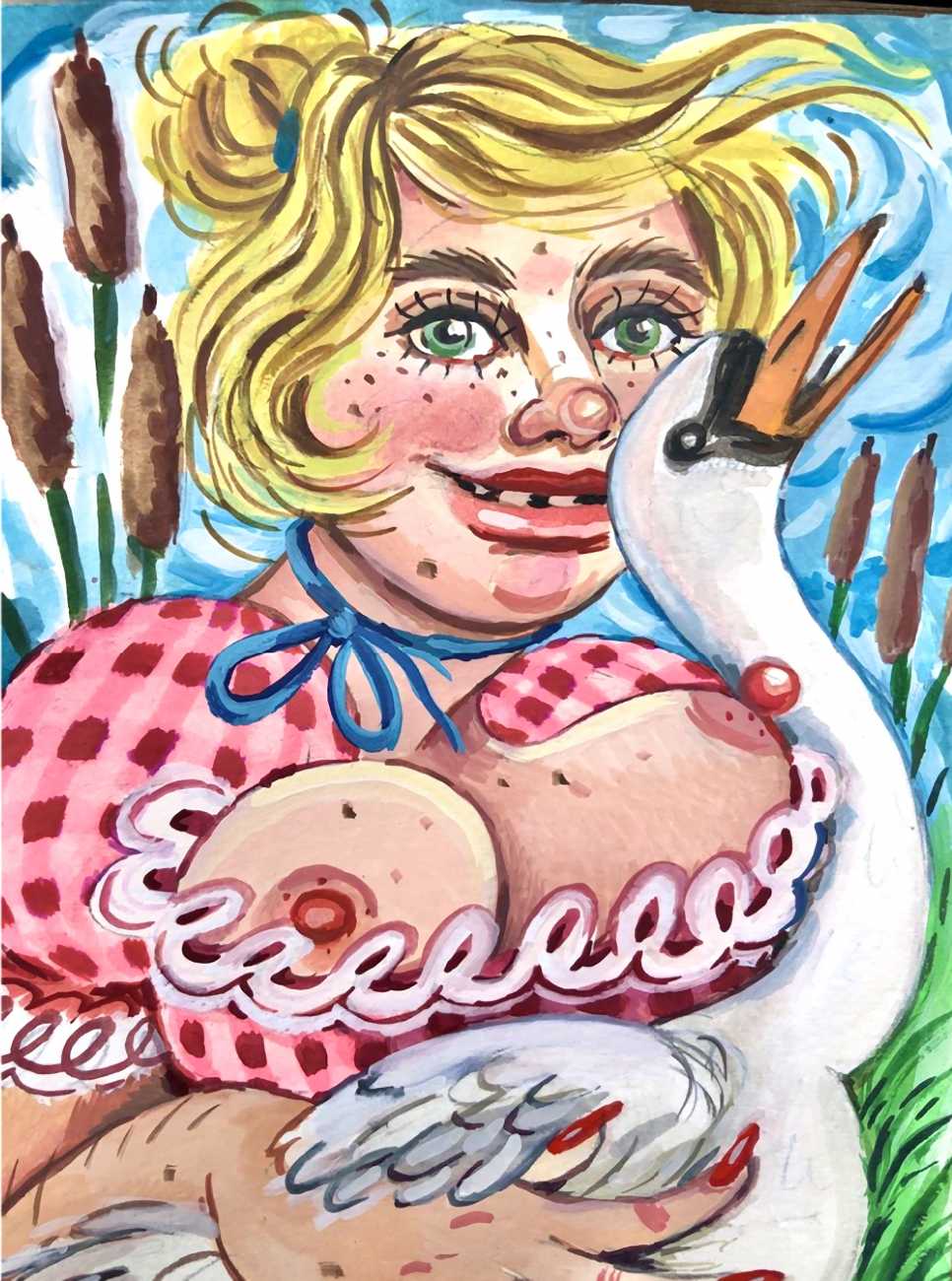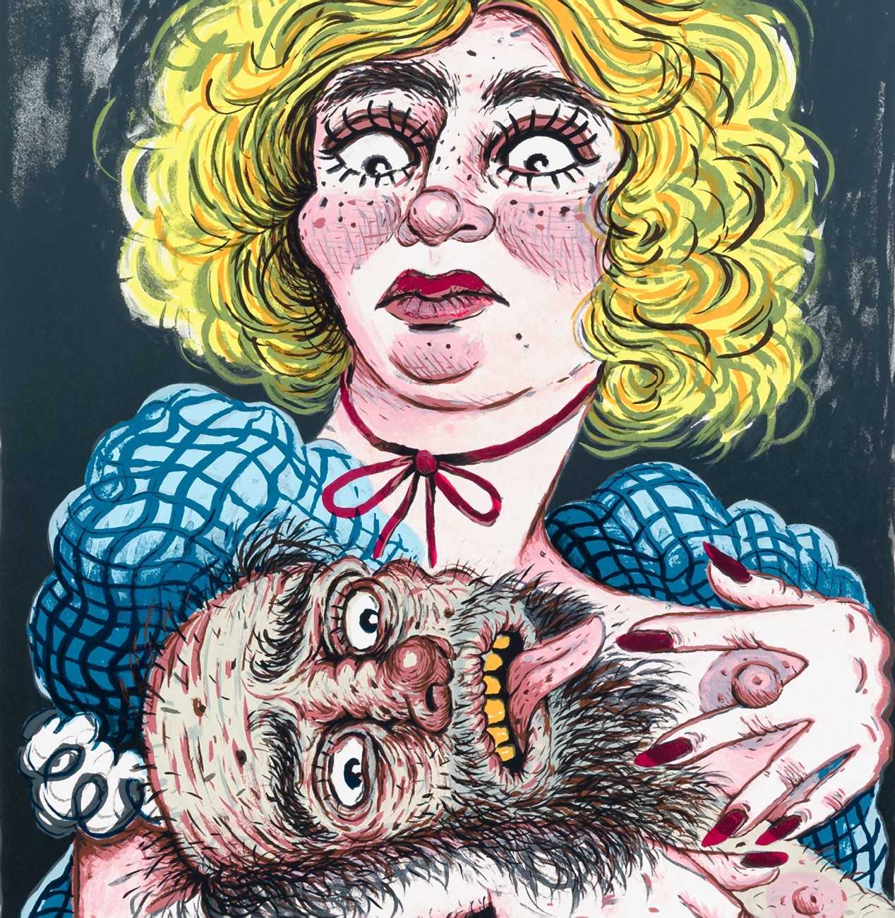 Art critic John Yau has written, ‘Morgan can be snarky and empathetic at the same time. Her combination of bawdy subject matter and deft caricature with clear drawing and precise gradations of shading culminates in wonderfully funny, art-historical contradiction. She has absorbed the basic tenets of Neo-classical drawing and applied them to raunchy, sexually explicit subject matter, something you cannot imagine Nicholas Poussin or Jacques-Louis David ever doing. By working in this manner, while acknowledging the influence of place on her subject matter, Morgan deliberately collides a high, serious style with her low-brow subject matter, essentially rendering the distinction moot. Moreover, instead of focusing on the political incorrectness of her characters’ behaviour, she celebrates their impolitic actions as she defines a funny, wayward world where women can punch back.’