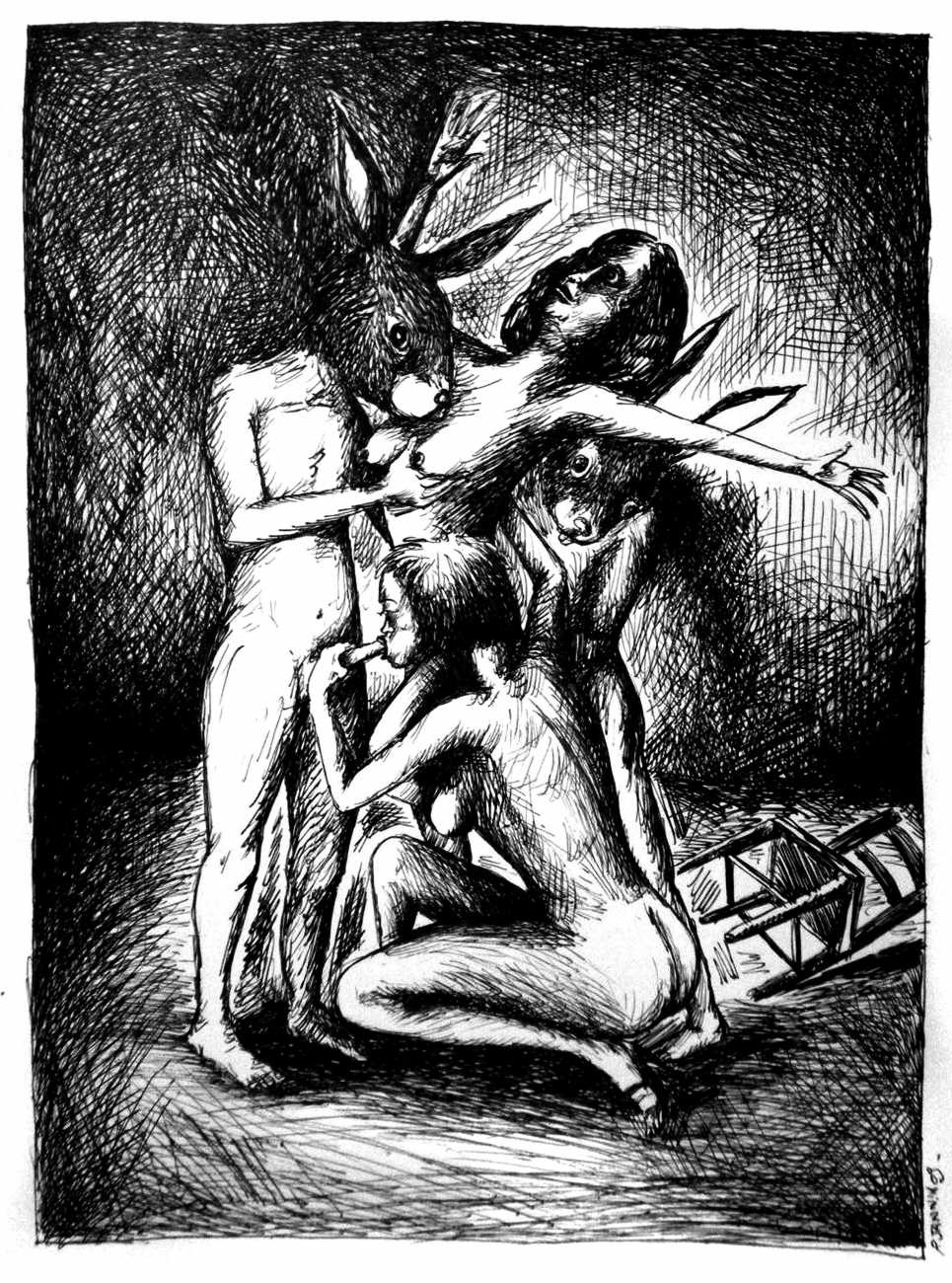 It started with the day that Patrick Jannin decided to draw a man with a rabbit’s head, which he did and found it funny, but then what to do with this rabbit? Well, what rabbits usually do when they are not eating. Rabbits fuck. This lustful little animal was going to give it their all, without any limit and without shame, and Jannin was going to do the same.