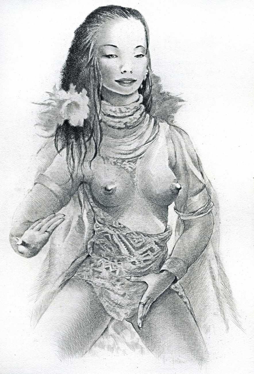 This suite of illustrations for a new edition of Franz Toussaint’s translations of prose poems from the Arabic, Le jardin des caresses (The Garden of Caresses), was Mariette Lydis’s last book commission, from the Paris publisher (and her friend) Germaine Raoult. They are only marginally erotic, to match the sweetly profound text, but display all the qualities that typify Lydis’s output – young breasts, young children, a selection of oriental types and a few well-drawn animals.