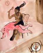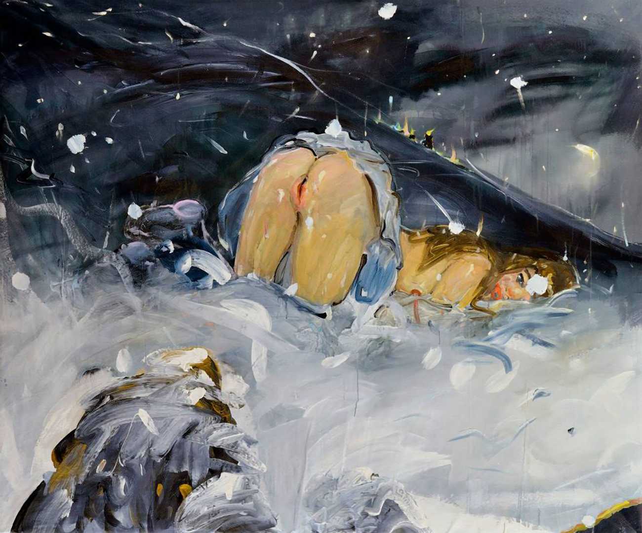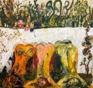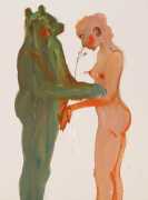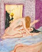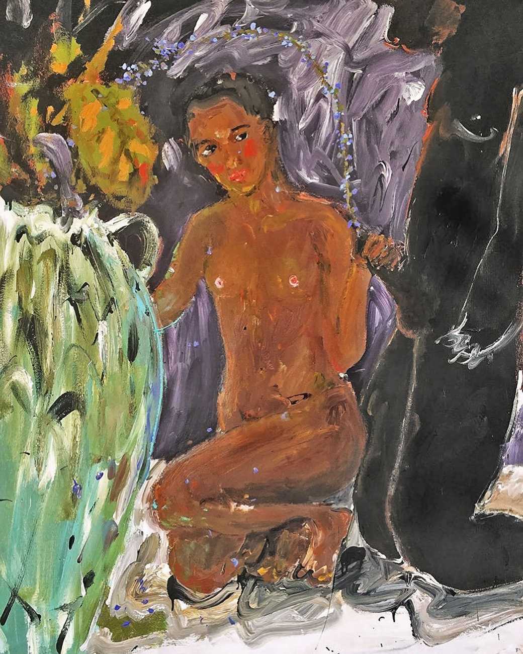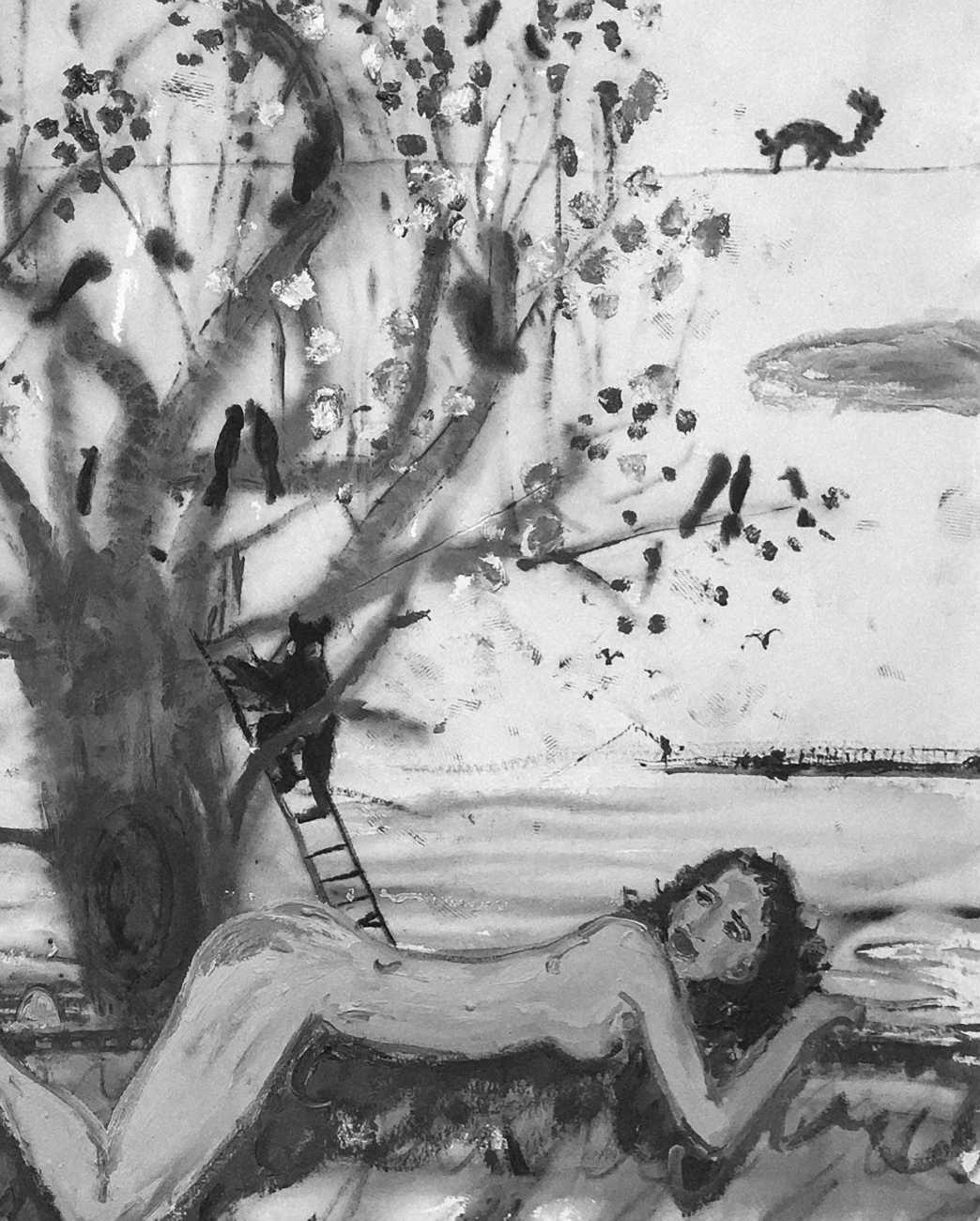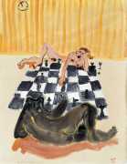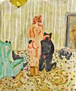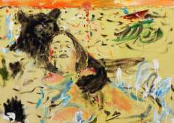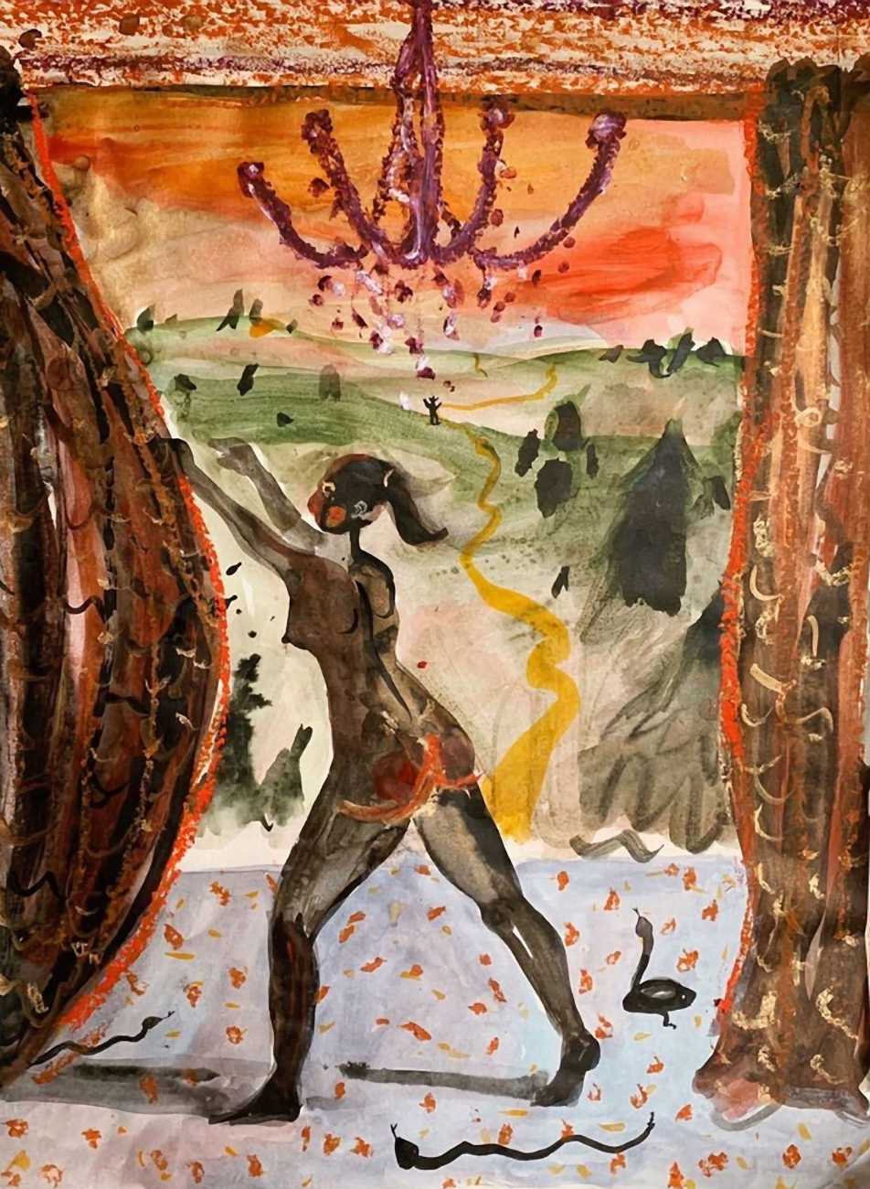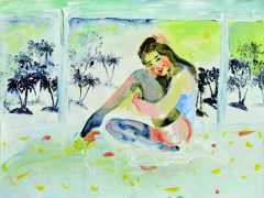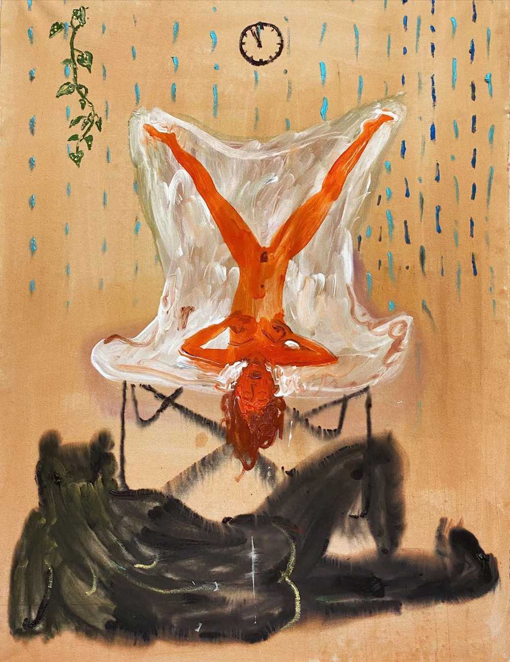 ‘Secrets of a Happy Household’ is the title of a 2020 exhibition shown at the Berlin gallery of Dittrich & Schlechtriem, which presented a series of works on paper in variations of ink, pencil, watercolour and acrylic, combining candid reality with psychological fantasy. As the introduction to the exhibition explained, ‘She uses honesty, fantasy and humour in her painting practice as tools of survival, the key to a tongue-in-cheek happy household’.