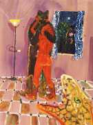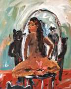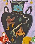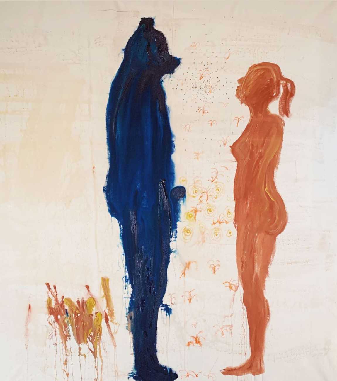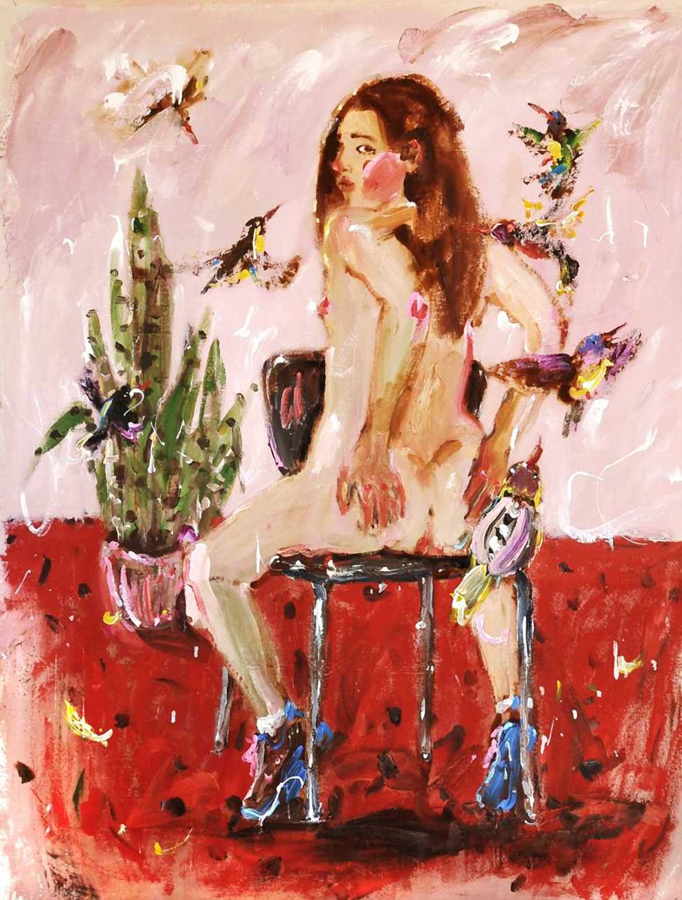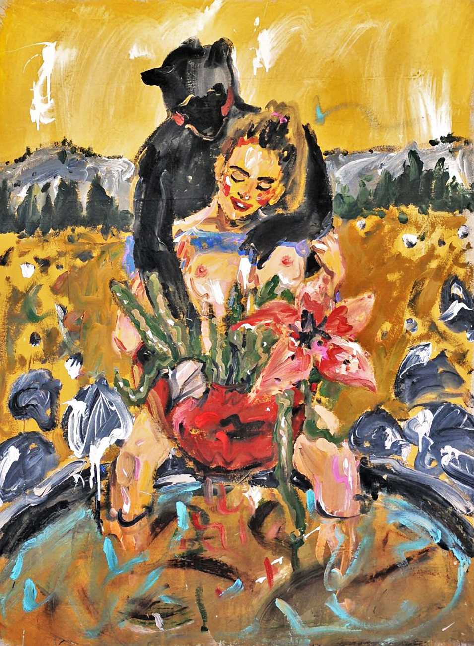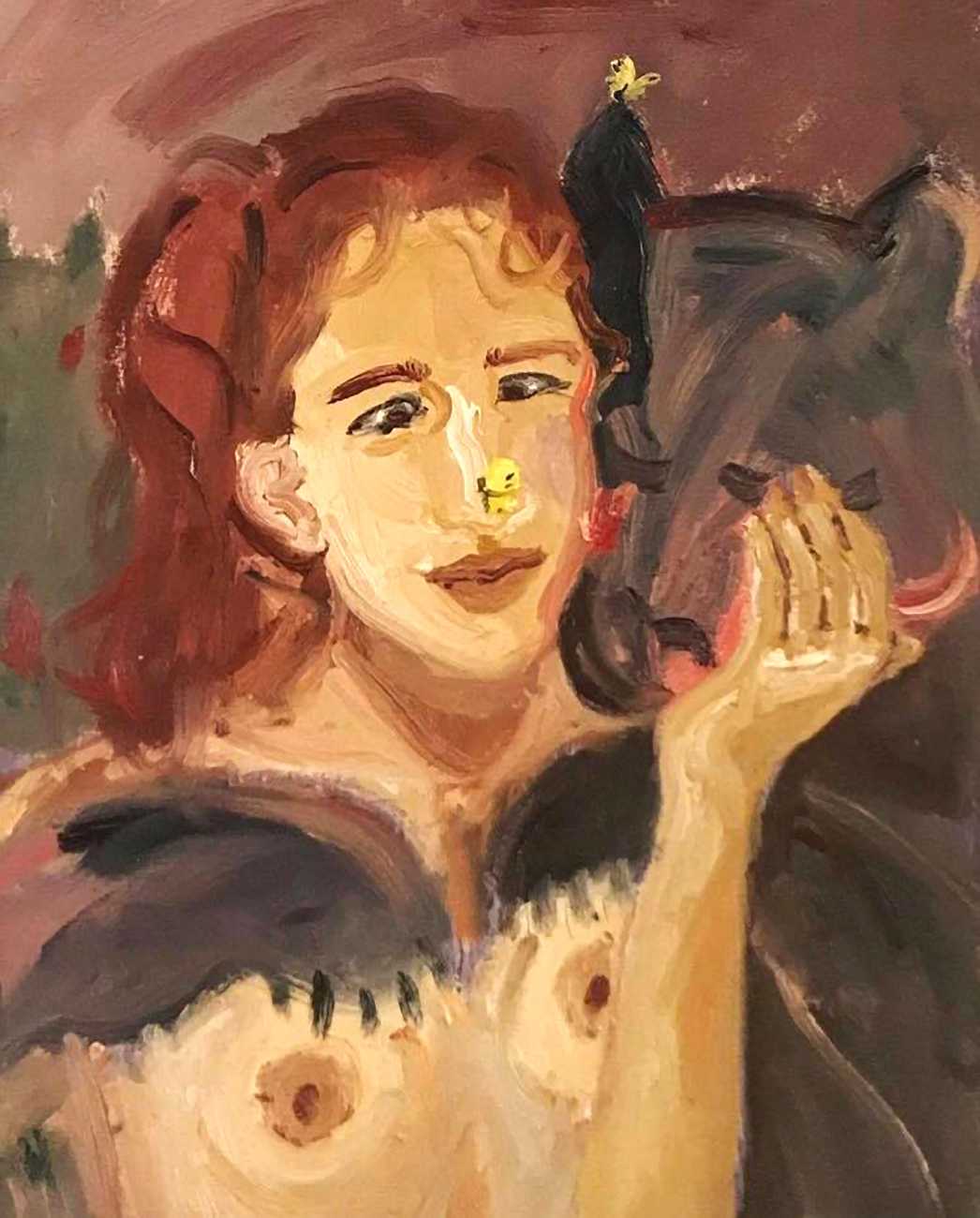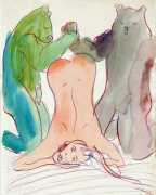 Stylistically varied, Katarina Janečková Walshe’s works can be quick diaristic depictions of everyday life. Others are patterned and layered, symbolic and allegorical, articulating a larger narrative on identity, femininity, and the complexities of power. Bears, snakes and dogs regularly stand in for men, while the women remain in focus and control. Deliberately, often provocatively, the artist and her subjects direct the viewer’s gaze, allowing a connection to and reflection on sexuality and identity.