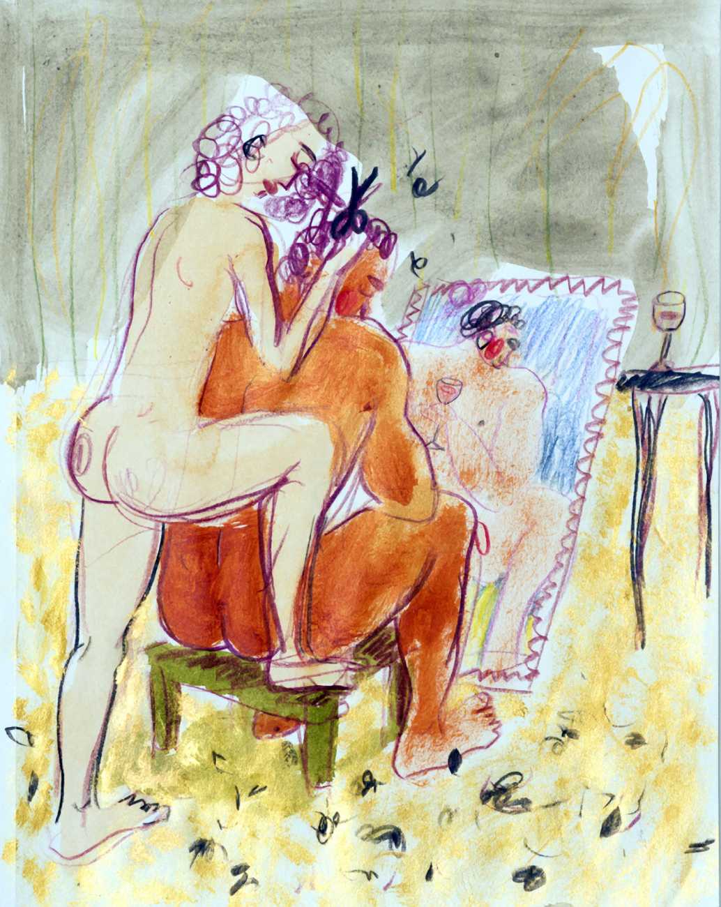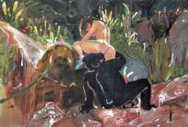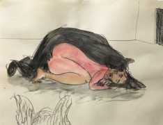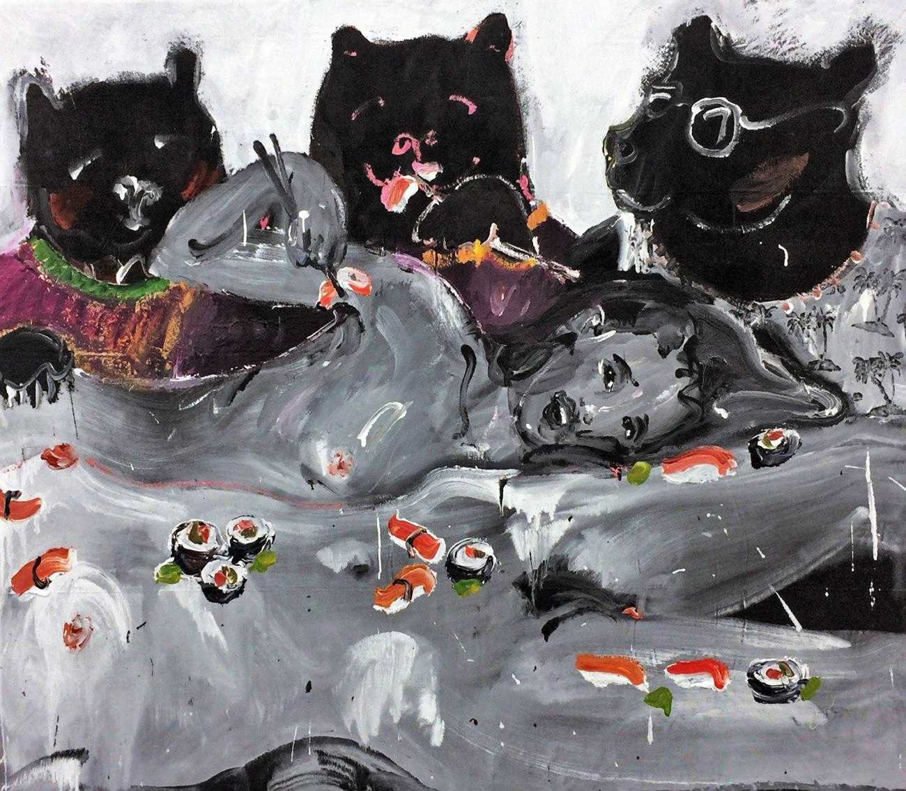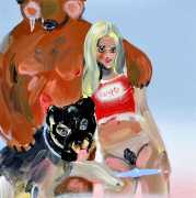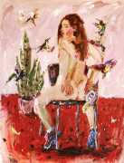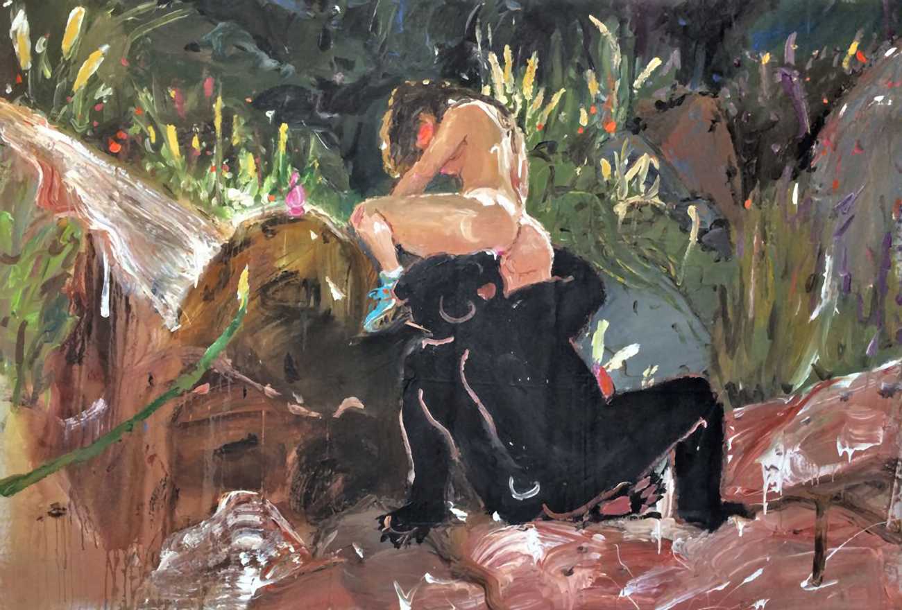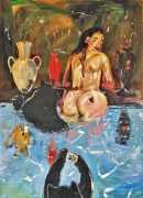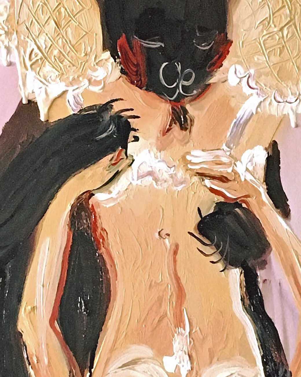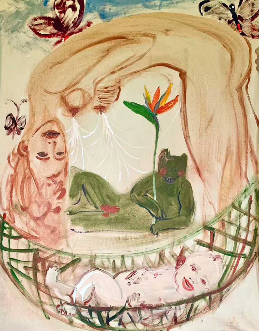 Stylistically varied, Katarina Janečková Walshe’s works can be quick diaristic depictions of everyday life. Others are patterned and layered, symbolic and allegorical, articulating a larger narrative on identity, femininity, and the complexities of power. Bears, snakes and dogs regularly stand in for men, while the women remain in focus and control. Deliberately, often provocatively, the artist and her subjects direct the viewer’s gaze, allowing a connection to and reflection on sexuality and identity.