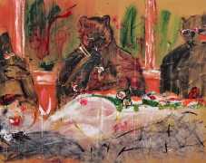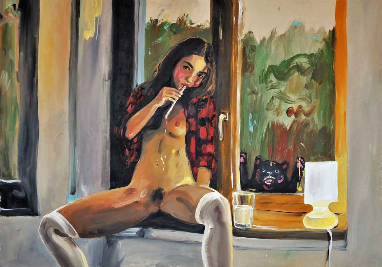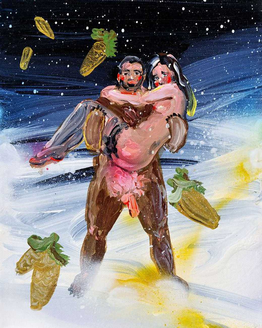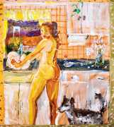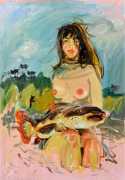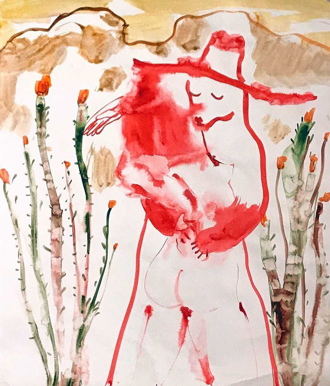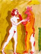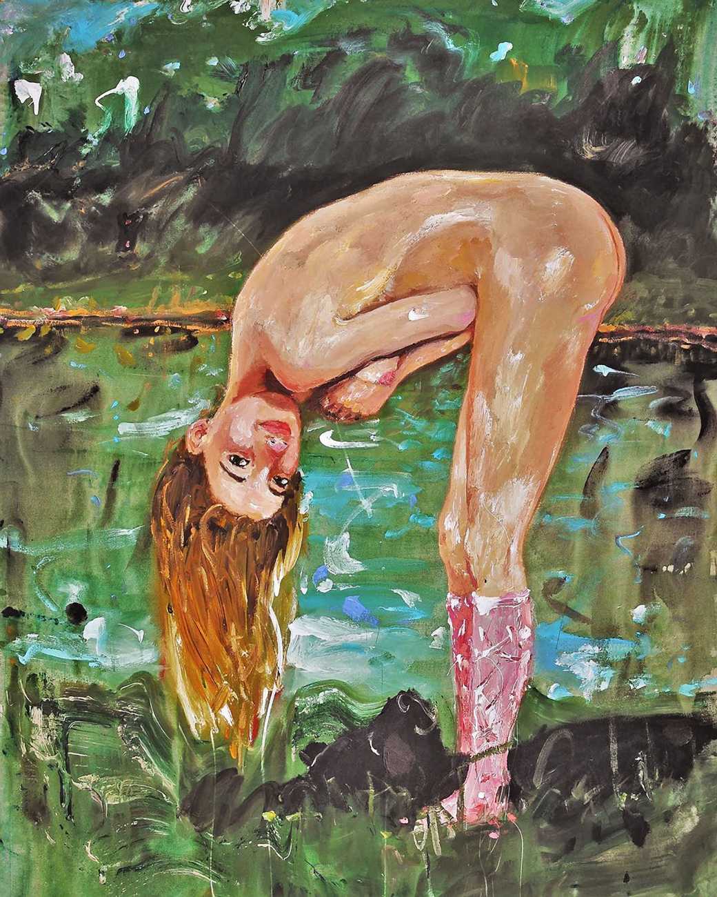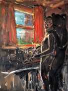 Stylistically varied, Katarina Janečková Walshe’s works can be quick diaristic depictions of everyday life. Others are patterned and layered, symbolic and allegorical, articulating a larger narrative on identity, femininity, and the complexities of power. Bears, snakes and dogs regularly stand in for men, while the women remain in focus and control. Deliberately, often provocatively, the artist and her subjects direct the viewer’s gaze, allowing a connection to and reflection on sexuality and identity.