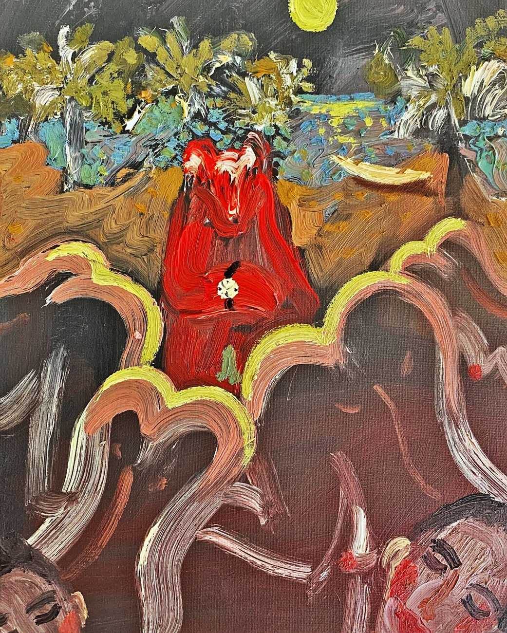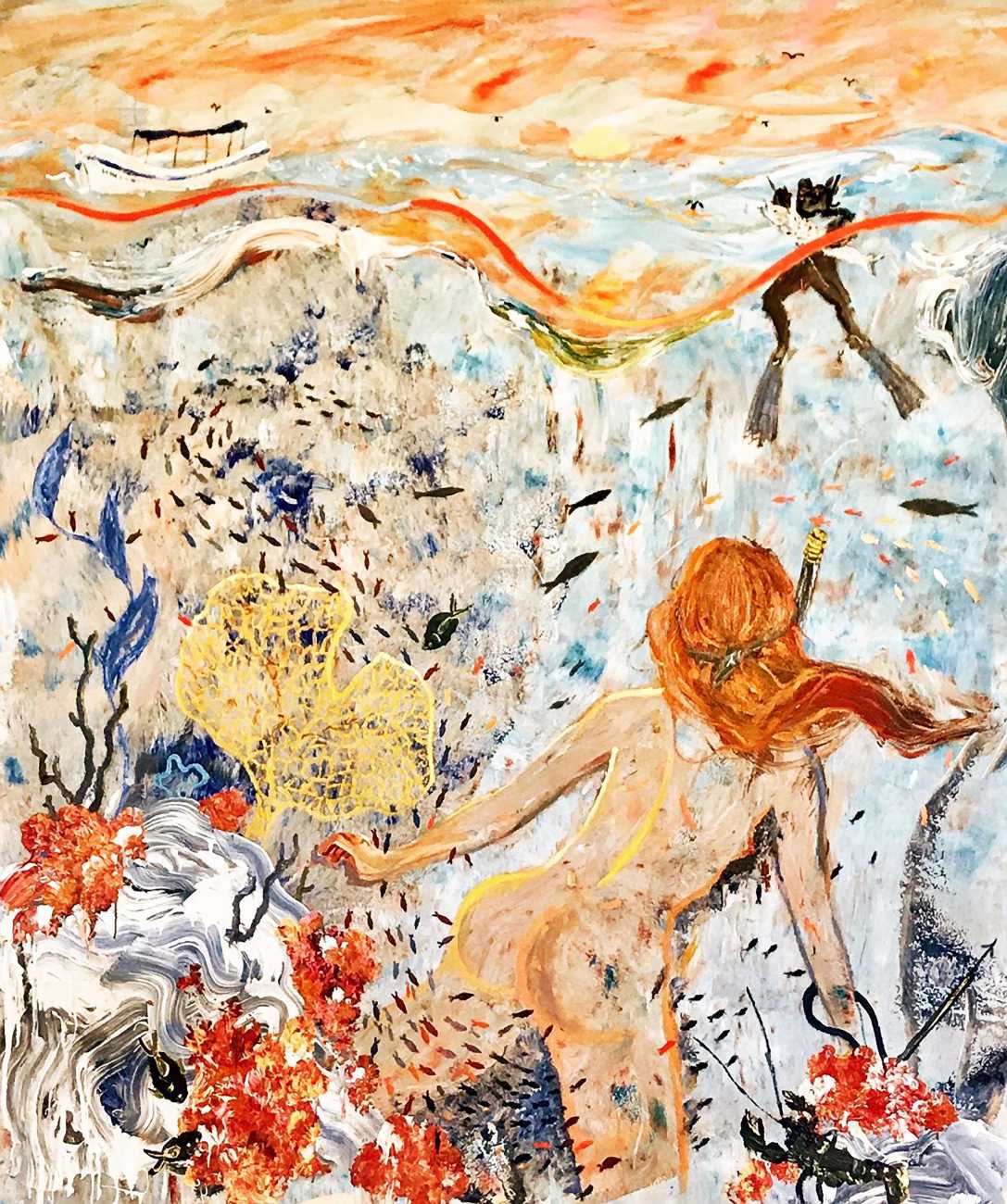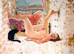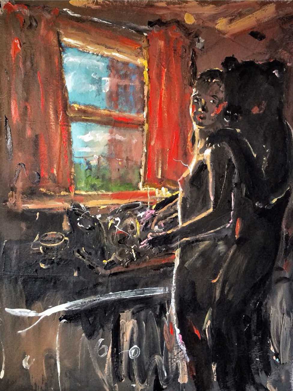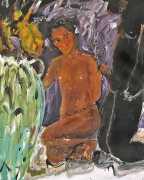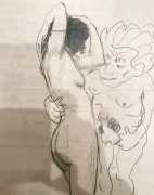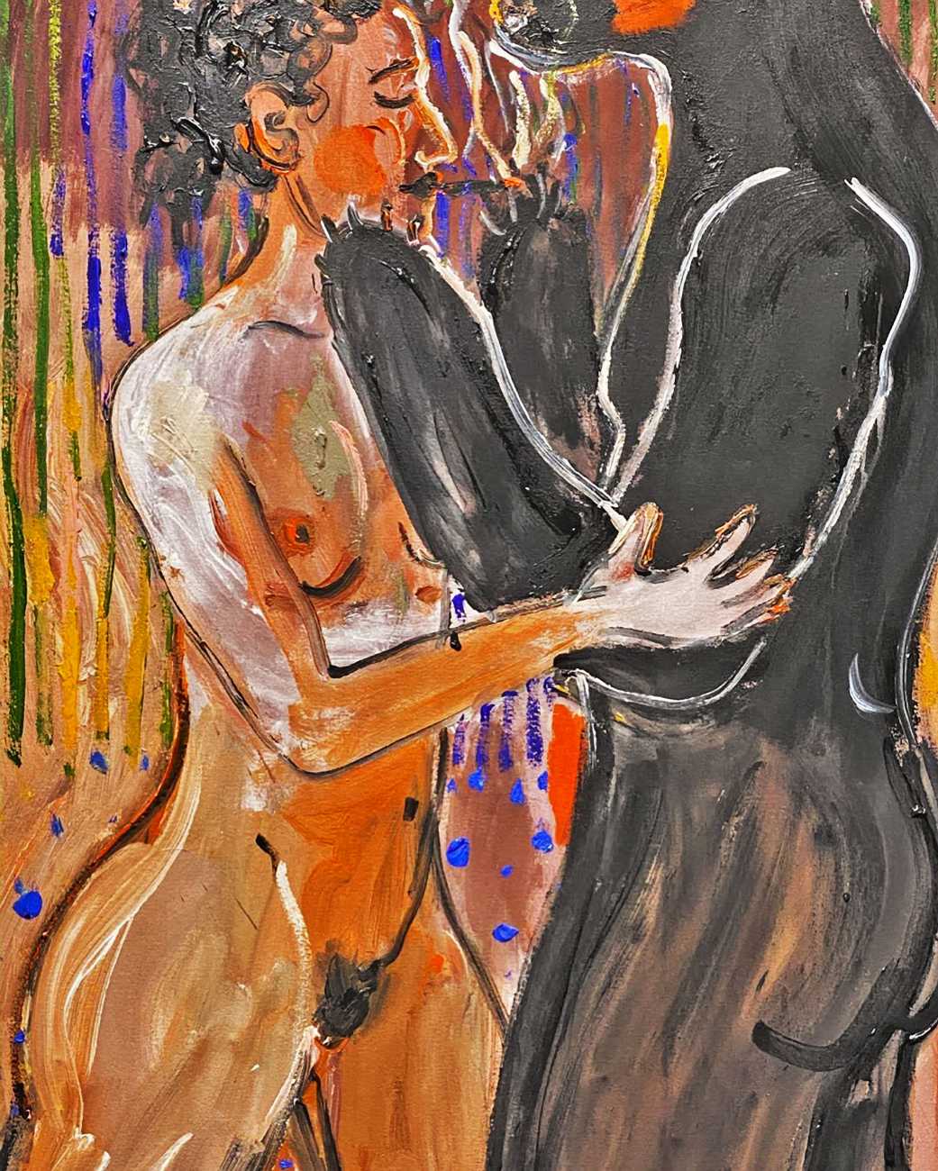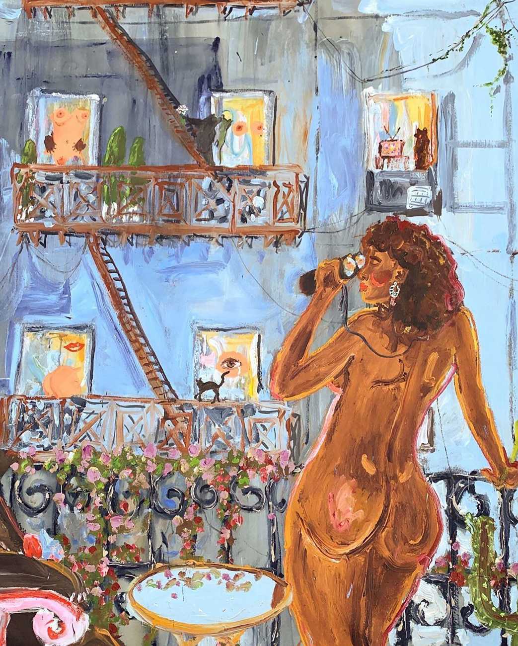 Stylistically varied, Katarina Janečková Walshe’s works can be quick diaristic depictions of everyday life. Others are patterned and layered, symbolic and allegorical, articulating a larger narrative on identity, femininity, and the complexities of power. Bears, snakes and dogs regularly stand in for men, while the women remain in focus and control. Deliberately, often provocatively, the artist and her subjects direct the viewer’s gaze, allowing a connection to and reflection on sexuality and identity.