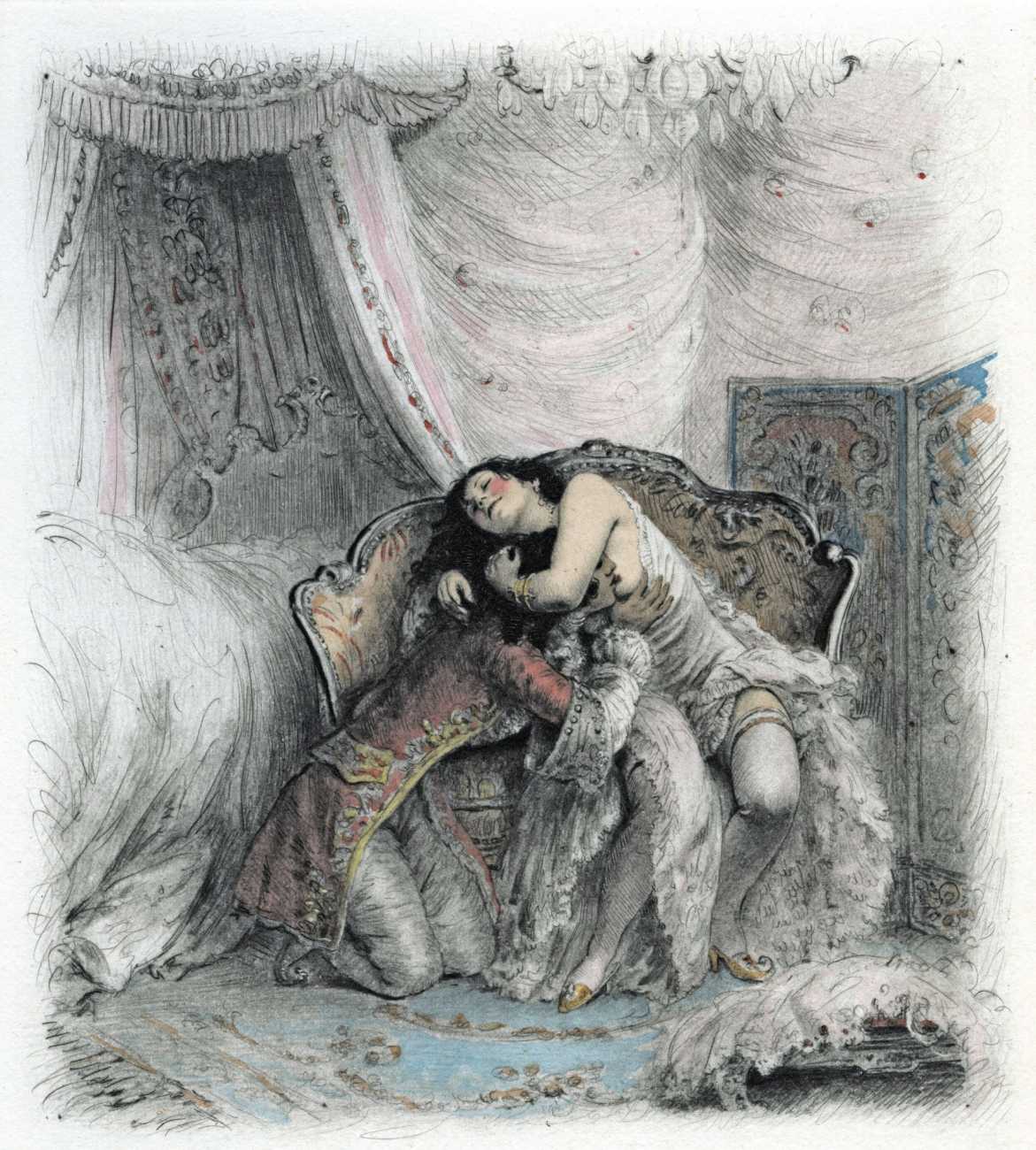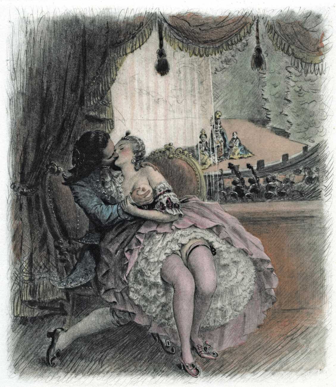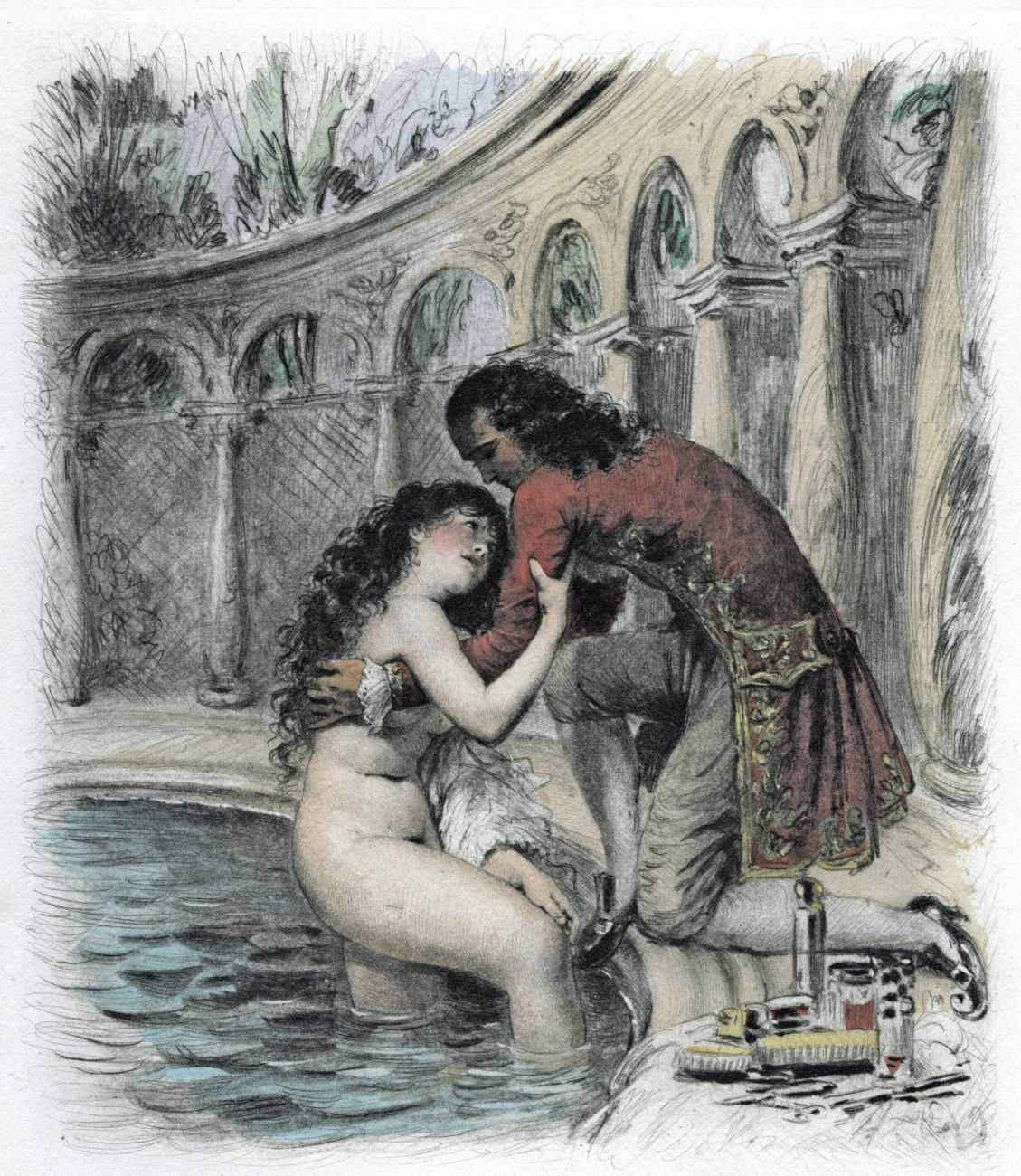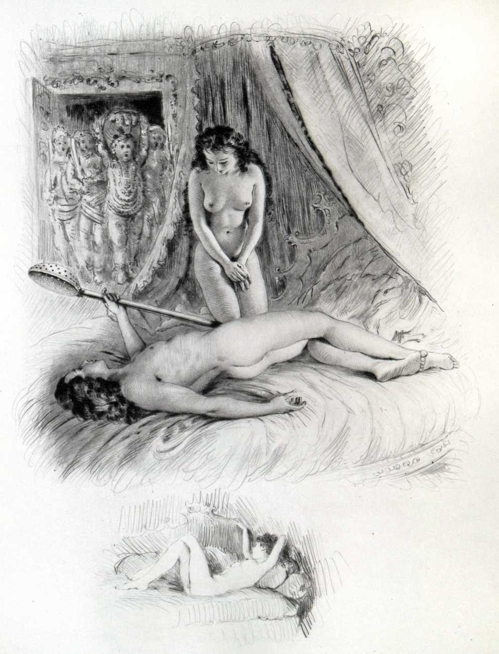 Bécat’s plates for this new edition of Tanzaï et Néadarné come from one of his busiest periods as an illustrator, and show signs of being done in haste. All the elements are there, but both the quality and originality of the interpretation are not of his usual high quality. As well as the coloured plates from the standard edition of the book, we have included some of the plates with ‘remarques’, the smaller marginal drawings included only in the additional set of prints destined for 60 de luxe copies.