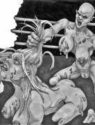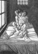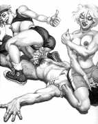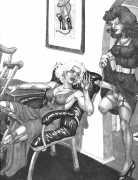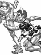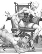 Kirwan nearly always worked in bright colours using his favourite double-ended Prismacolor markers, but when a commission required it he was also happy to work in monochrome, using permanent black ink and watercolour washes. Here are some of his monochrome drawings, displaying his wide range of subject matter and acute sensitivity to composition and shading.