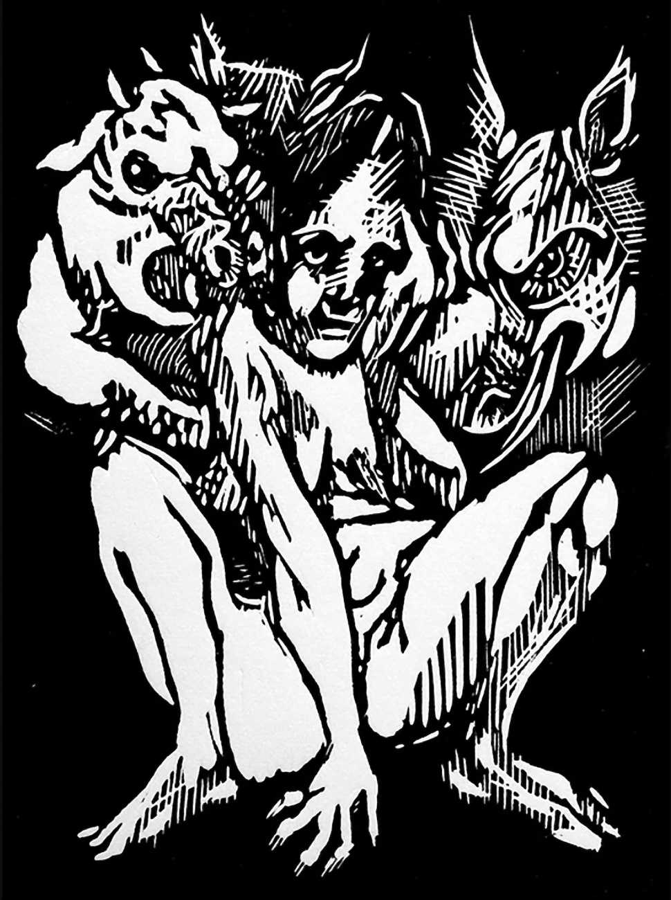 As well as etching and painting, Ewelina Kołakowska has also experimented with woodcut, using the simple power of the medium to produce some of her most striking images.