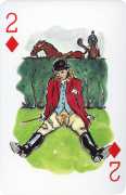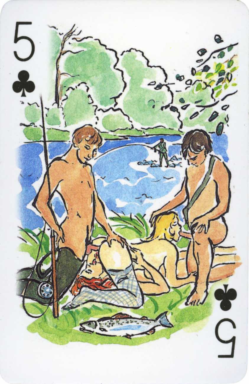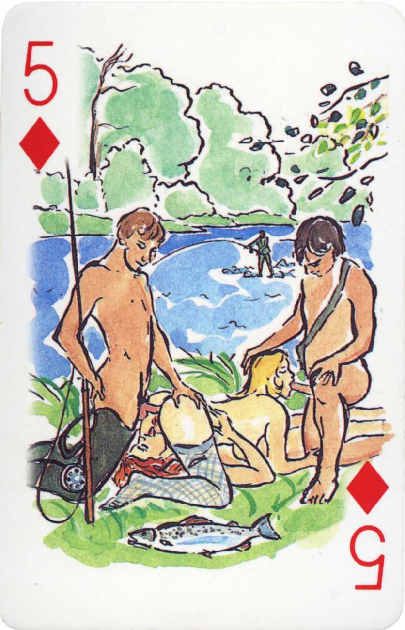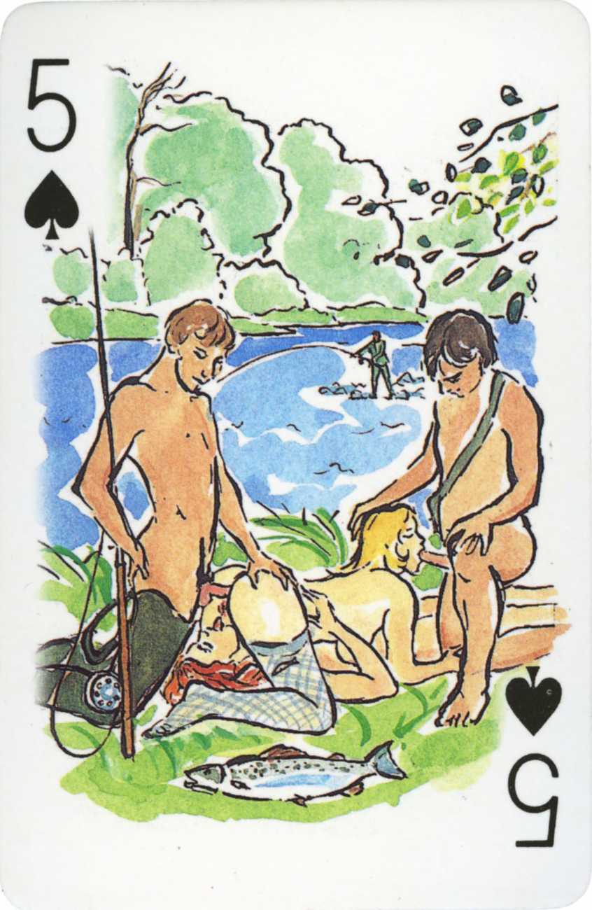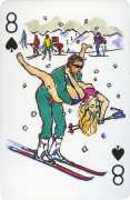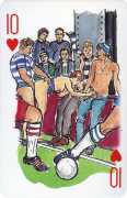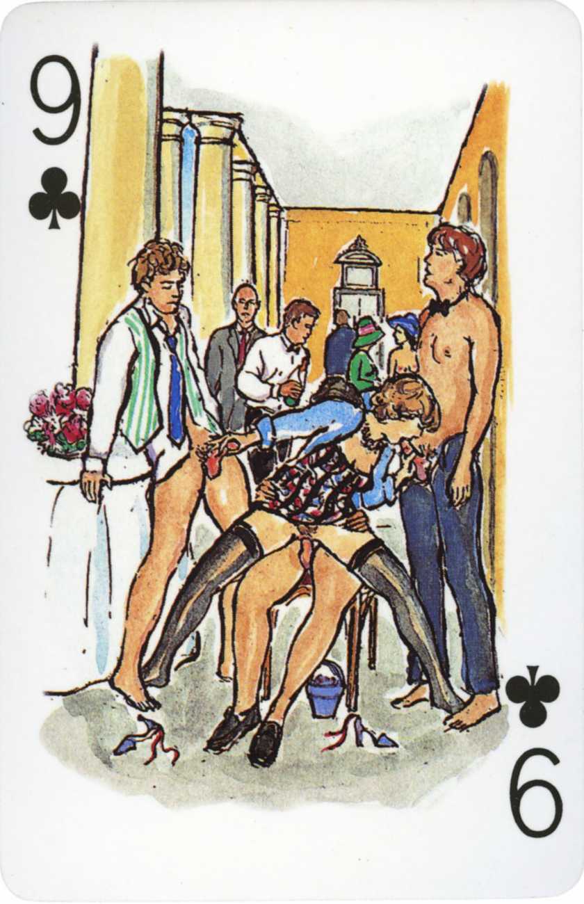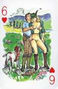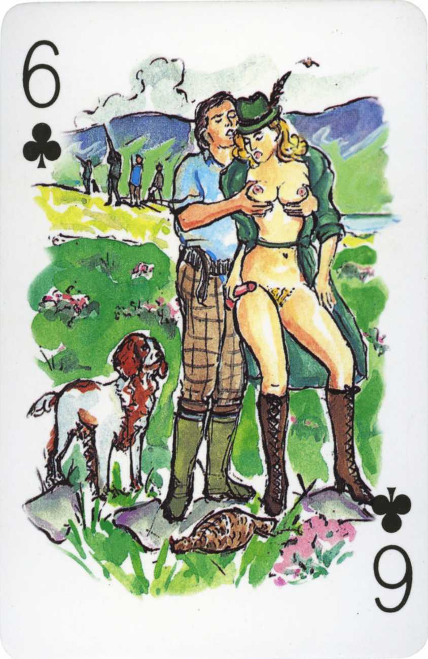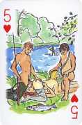 A Wicked Pack was the Erotic Print Society’s second offering of erotic playing cards, following Monica Guevara’s Black Box cards of two years earlier, which you can see here. The sports-themed paintings are not Sylvie Jones’ best, and the small format does not help; in addition the numbered cards from 2 to 10 repeat the same designs across all four suits, whether due to lack of time, budget or both we shall probably never know.