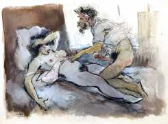 This Erotic Album of fourteen colourful and explicit drawings by Jagodziński was included in his estate after his death; the only dated one is from 1950, but most have the feel of that era. There are some witty scenes, also some quite tender sexual sharings; it would be interesting to know whether he was drawing from experience, imagination, or both.