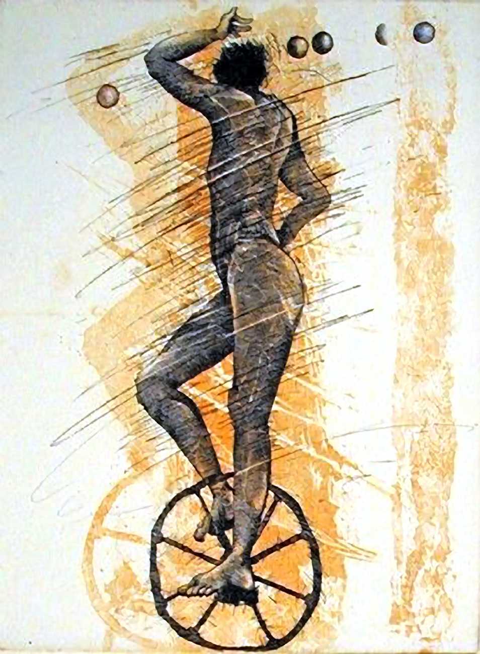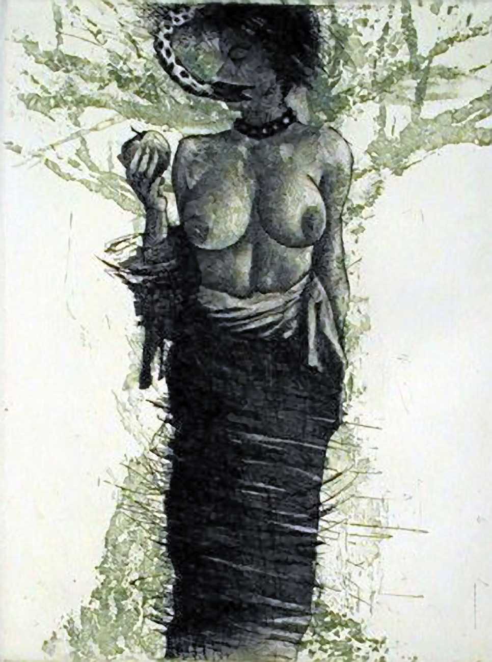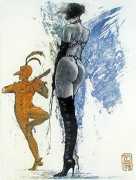 The trivial, the ordinary, the fragment are all elements of his sensual, symbolic interpretation; it is in this way that he achieves immediacy. He clarifies life’s conflicts and joie de vivre in a sensual, meaningful way. The charm of his women, who stretch with lascivious naked sophistication, has a natural generosity. In a world without erotic taboos, his sensuous female figures with their graceful lines show his love and adoration of women with obvious relish.