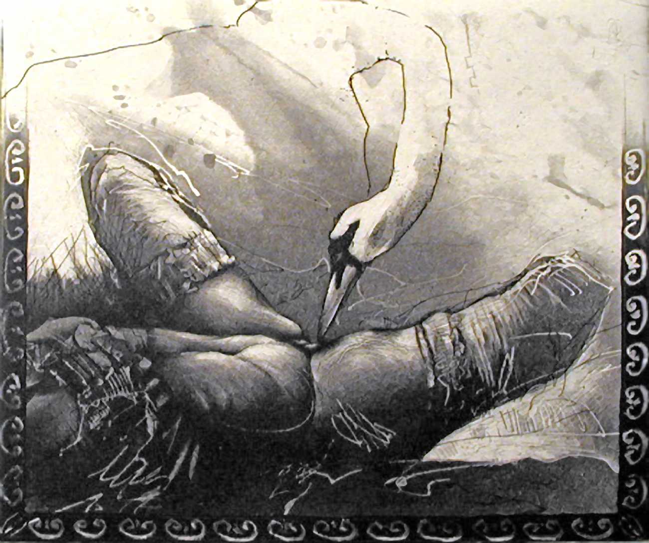 In his etchings Bodo Klös demonstrates both the despair and the joy of life, our bondage to sexuality and our fear of death. He is a socially committed artist, at times symbolic, at times poetic, using his work to explore everyday life with its secret joys and its tender consolations. What makes his art approachable is that it is not distant, ironic or sarcastic, but represents a loving sympathy with the complexities of life.