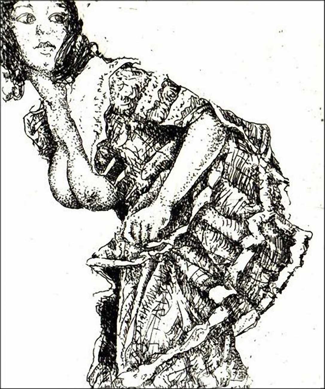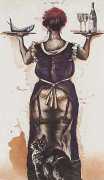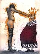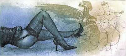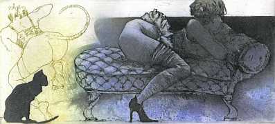 Etching is Klös’s favourite medium, and he is one of the best current German proponents of the technique, especially of the use of colour in his etchings. Over the years he has collaborated with writers and poets to produce portfolios of linked images, including here four from the 1998 series Sofadamen (Sofa Women), which had an accompanying text by the author Jacqueline Strobel from Chemnitz.