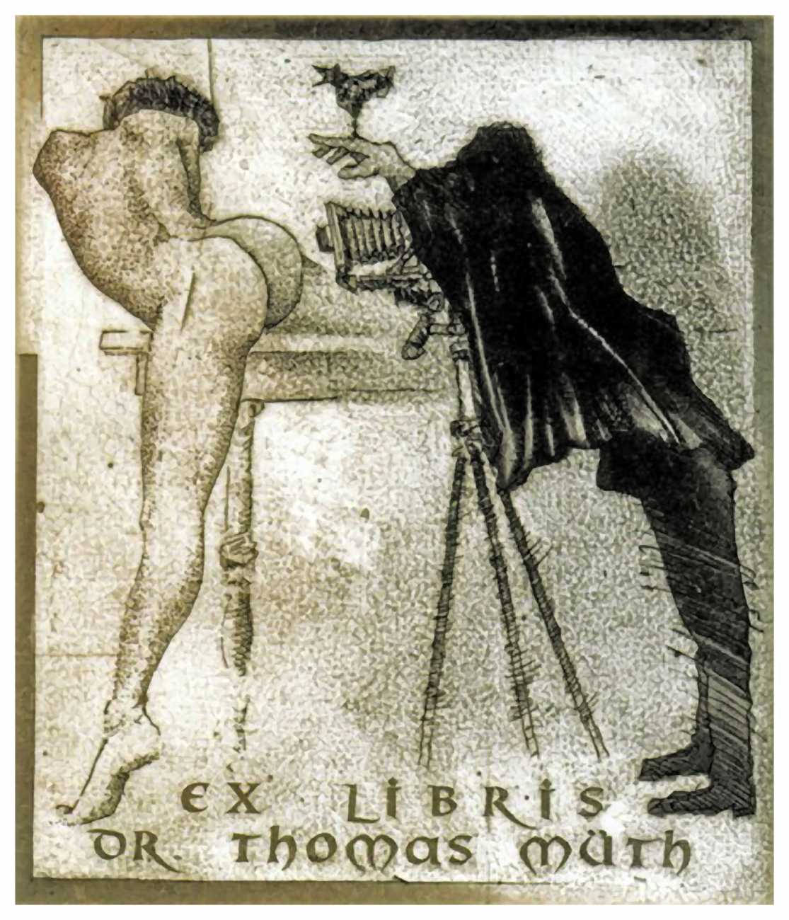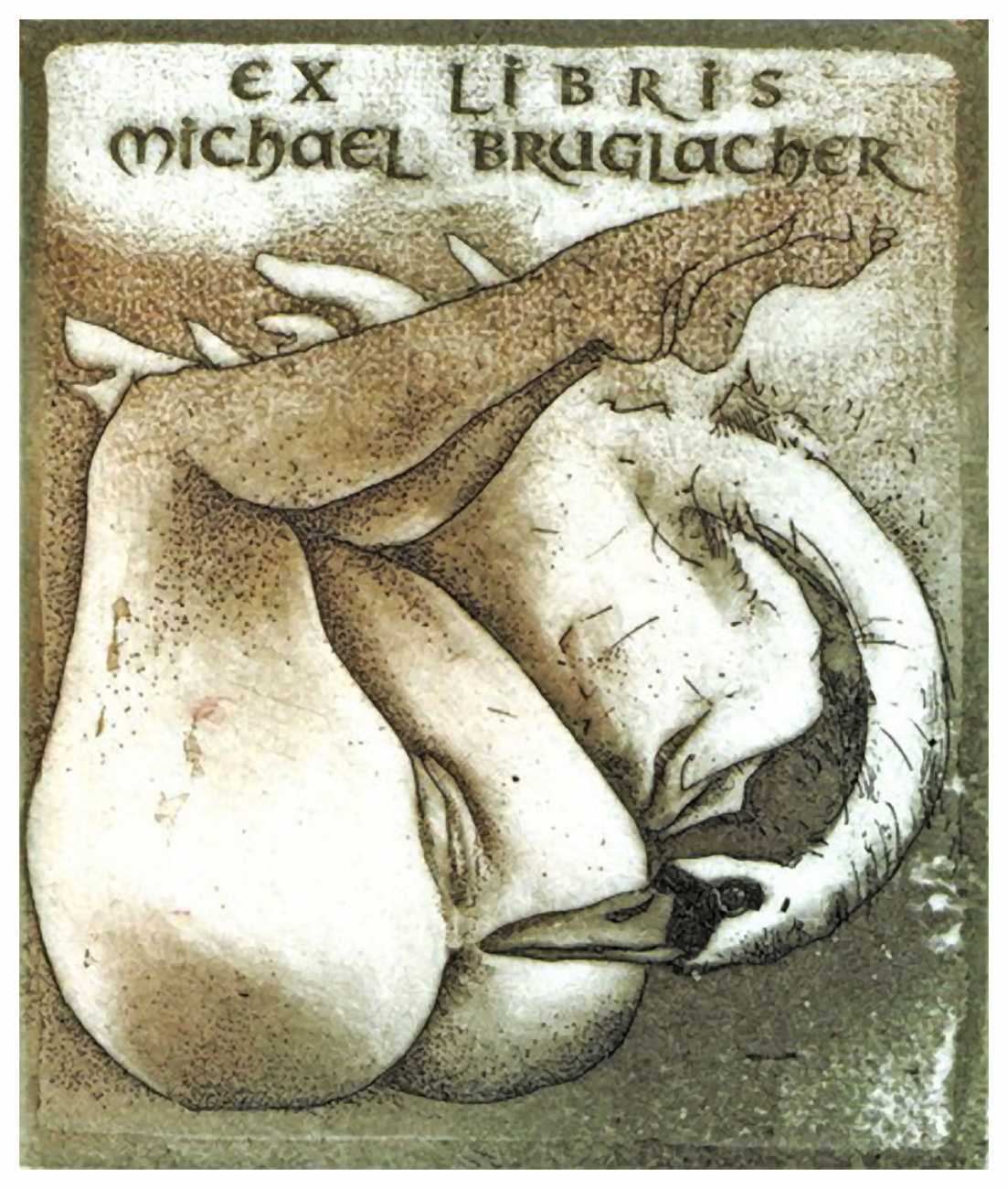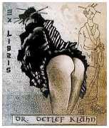 In recent years there has been a definite trend towards erotic subjects for bookplates, partly a throwback to the 1920s and 30s and partly to explore the potential of engraving techniques. Bodo Klös’s etching techniques are the ideal medium for these small erotic masterpieces.