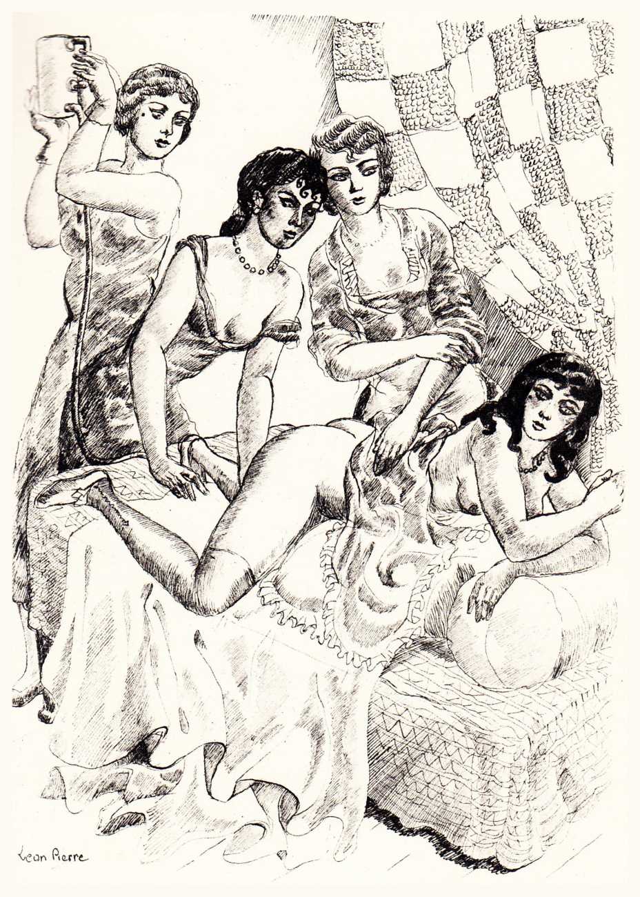 This addition to Jean Fort’s Collection des Orties Blanches (The White Nettle Collection), written by the prolific author René-Michel Desergy (under his own name for a change), recounts the experiences of a group of trainee young women learning the flagellation proclivities of some of the clientele of the establishment run by the glove-wearing Madame Diana, or Diana gantée.