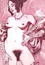 Gamiani, ou une nuit d’excès (Gamiani, or A Night of Excess), widely assumed to have been written by Alfred de Musset, is one of the best-known and most-illustrated of French erotic novels. Based on de Musset’s experiences with George Sand and her lesbian lover, Gamiani opens with Alcide watching Countess Gamiani and her young lover Fanny enjoying one another’s bodies. Very much aroused, Alcide reveals himself and joins them, and they spend the rest of their time together sharing their intimate stories and re-enacting scenes from them.