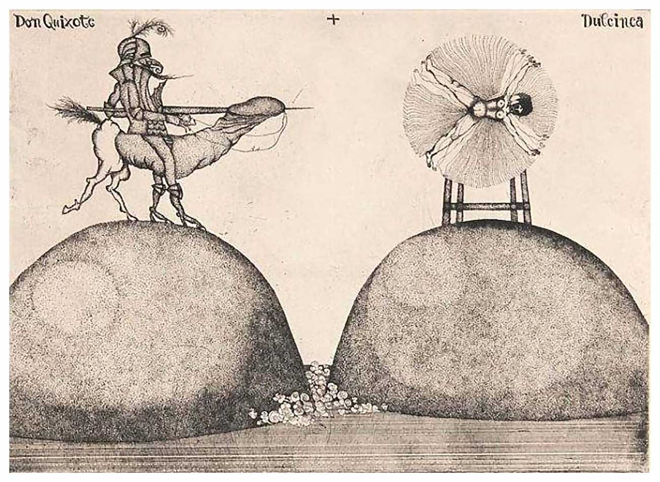 In 1968–69 the specialist publisher Merlin Verlag in Hamburg commissioned a series of portfolios of erotic prints from selected German artists – the first of these, Merlin-Mappe No. 1, was a series of six Niederstrasser etchings featuring literary lovers, hence the title Paar-odien (Parodies of Couples). The pairs included are Lolita und Humbert Humbert, Kitten und Jimmiboy, Lola und Professor Raat, Ysa and the Duke of Centigloria, Dulcinea and Don Quixote, and Lady Chatterley and the Gamekeeper. A complementary text was included by the Austrian poet Hans Carl Artmann.