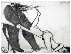 Following the success of Paarodien, Merlin went on to commission three artists – Johannes Vennekamp, Arwed Gorella and Uwe Bremer – to produce portfolios of etchings inspired by selected works of the Marquis de Sade, all of which you can see by looking at the relevant artist’s entries elsewhere on the website.