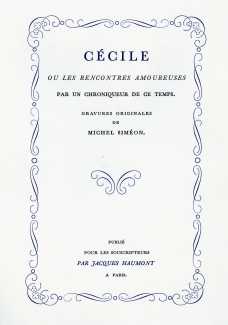 The Siméon-illustrated Cécile was published by Jacques Haumont in a limited, numbered, boxed edition of 516 copies.