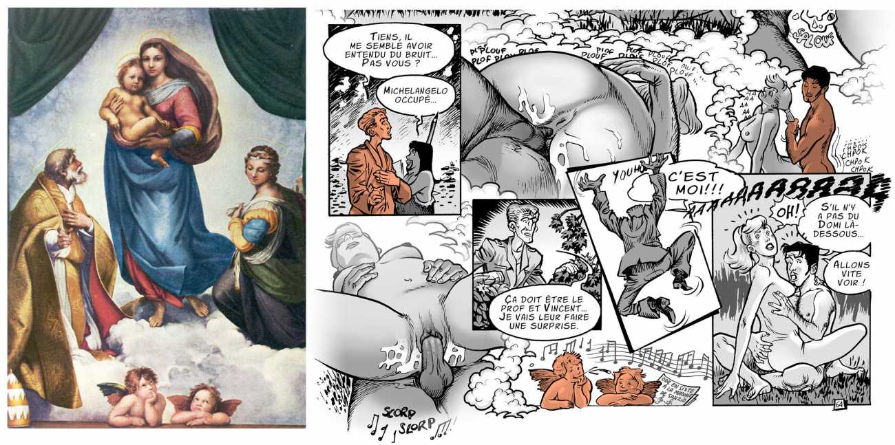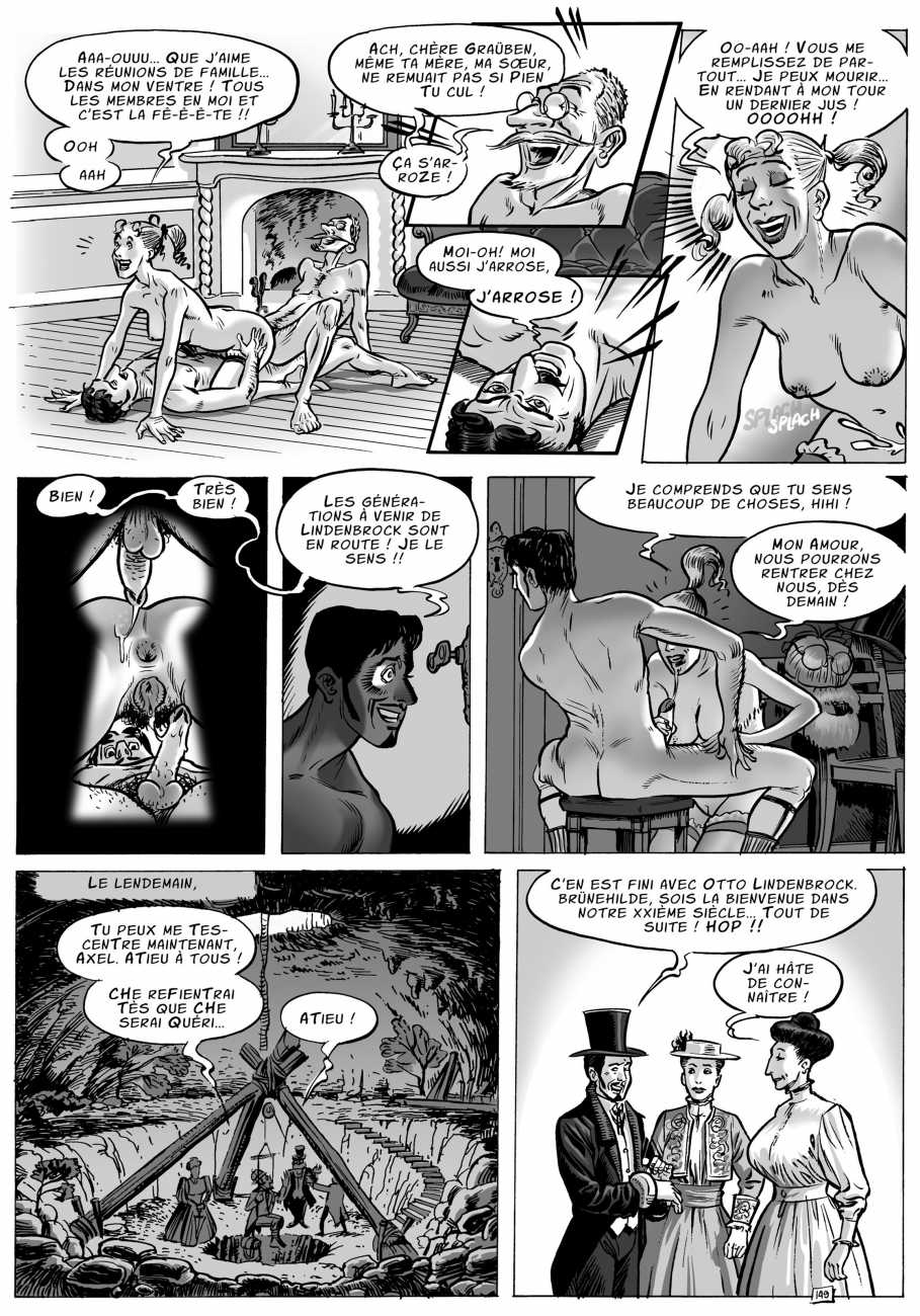 The back-cover blurb from the 2012 collected Dynamite edition explains the narrative succinctly: ‘The charming professor Linda Lidenbrock engages with the bowels of our planet in the company of Vincent Ledanoy, an experienced expert of deep orifices. A tribute to tales of adventure and travel from the end of the nineteenth century, Journey to the Depths is also a nod to burlesque cinema and Anglo-Saxon humour, but with the difference that the protagonists fornicate on each page – in the capsule taking them to the centre of the earth, on the beaches of a lost continent, on the island of Lilliput – even in the world of the Amazons.’