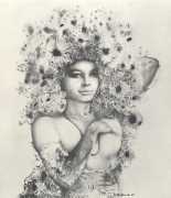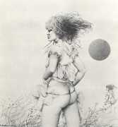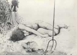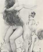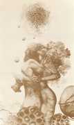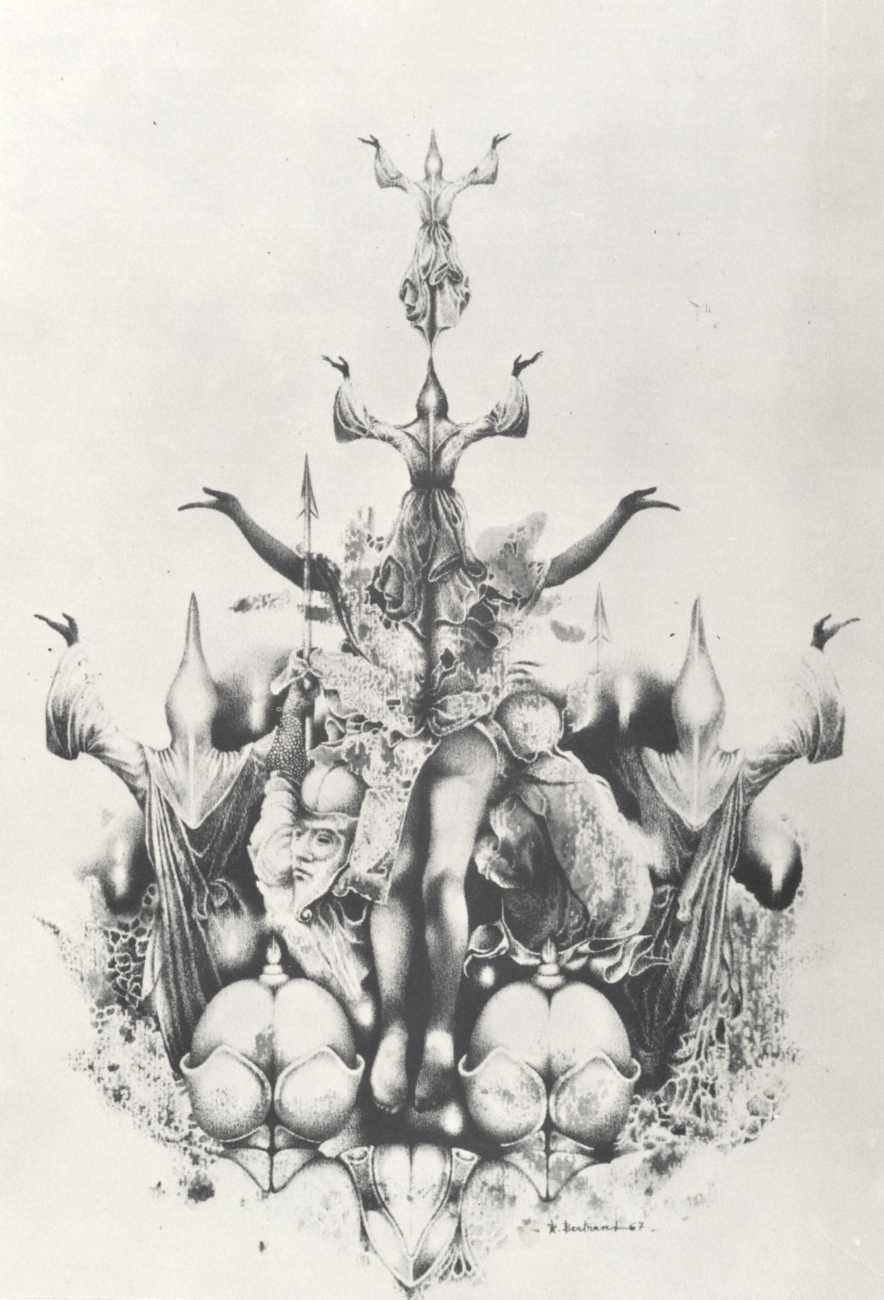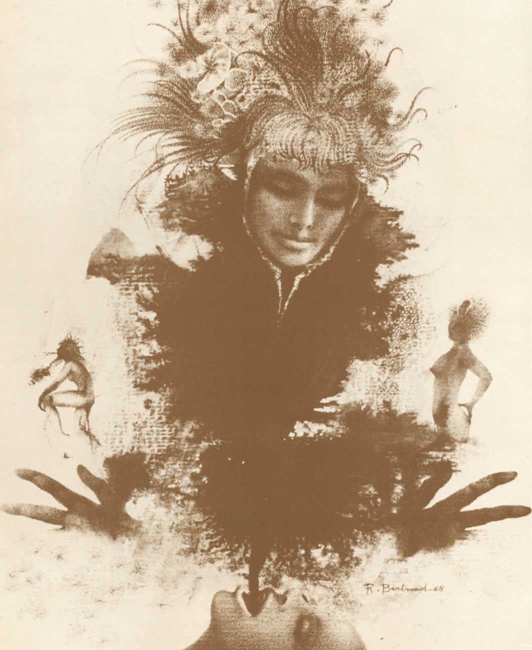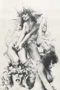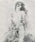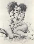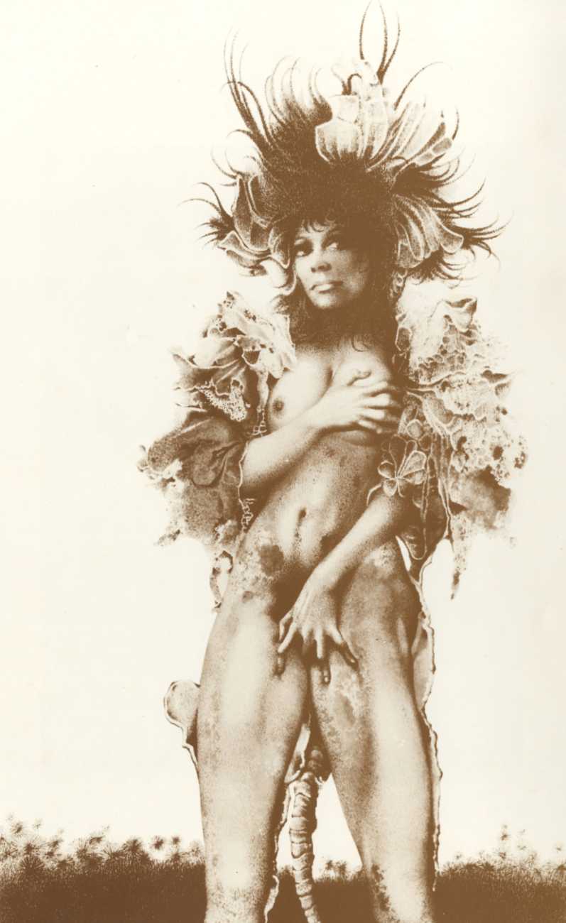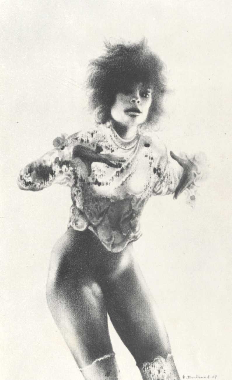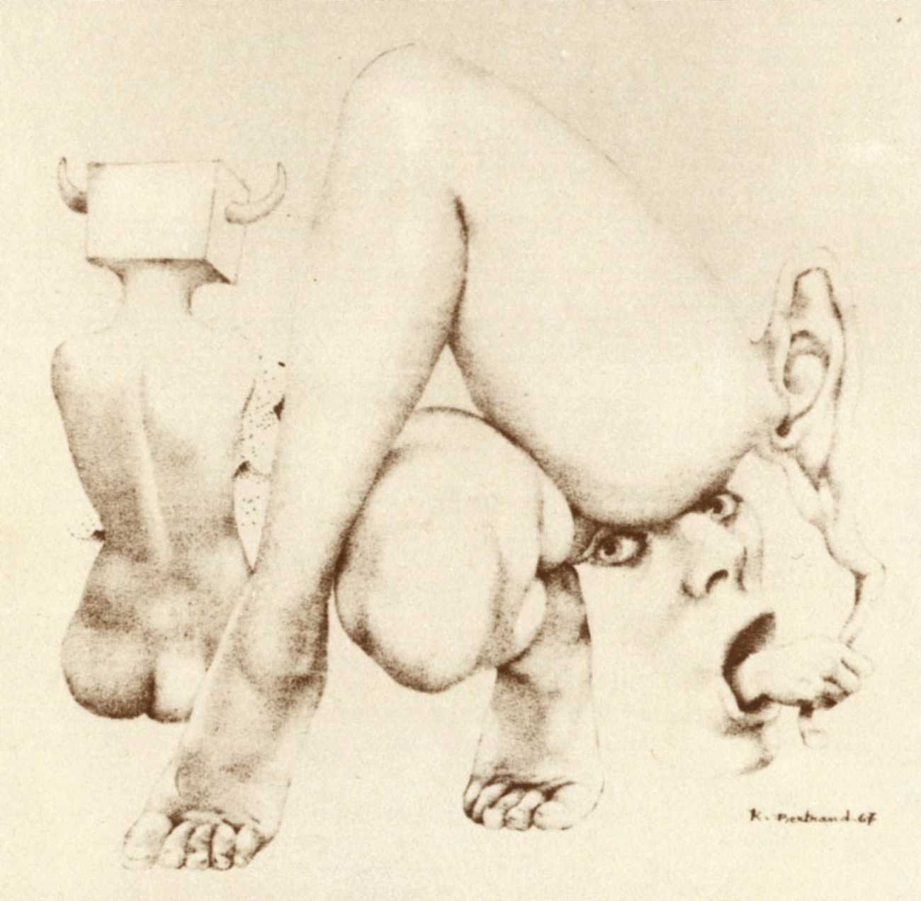 The first of the two Bertrand portfolios produced by Eric Losfeld contains six paintings and 102 drawings, some of which are reproduced in sepia. This collection of his work allows us to experience his psychedelic fantasies in their full range and context. This was the time of Timothy Leary, LSD, the Oz trial, and the musical Hair, when Bertrand-style imagery was the must-have artistic outpouring of hippydom and the alternative dropout lifestyle. There was little of the later analysis of gender and race stereotypes, so it seemed perfectly acceptable to sexualise young women with frizzy Afro hairstyles.
