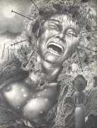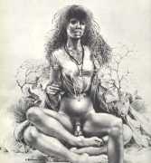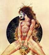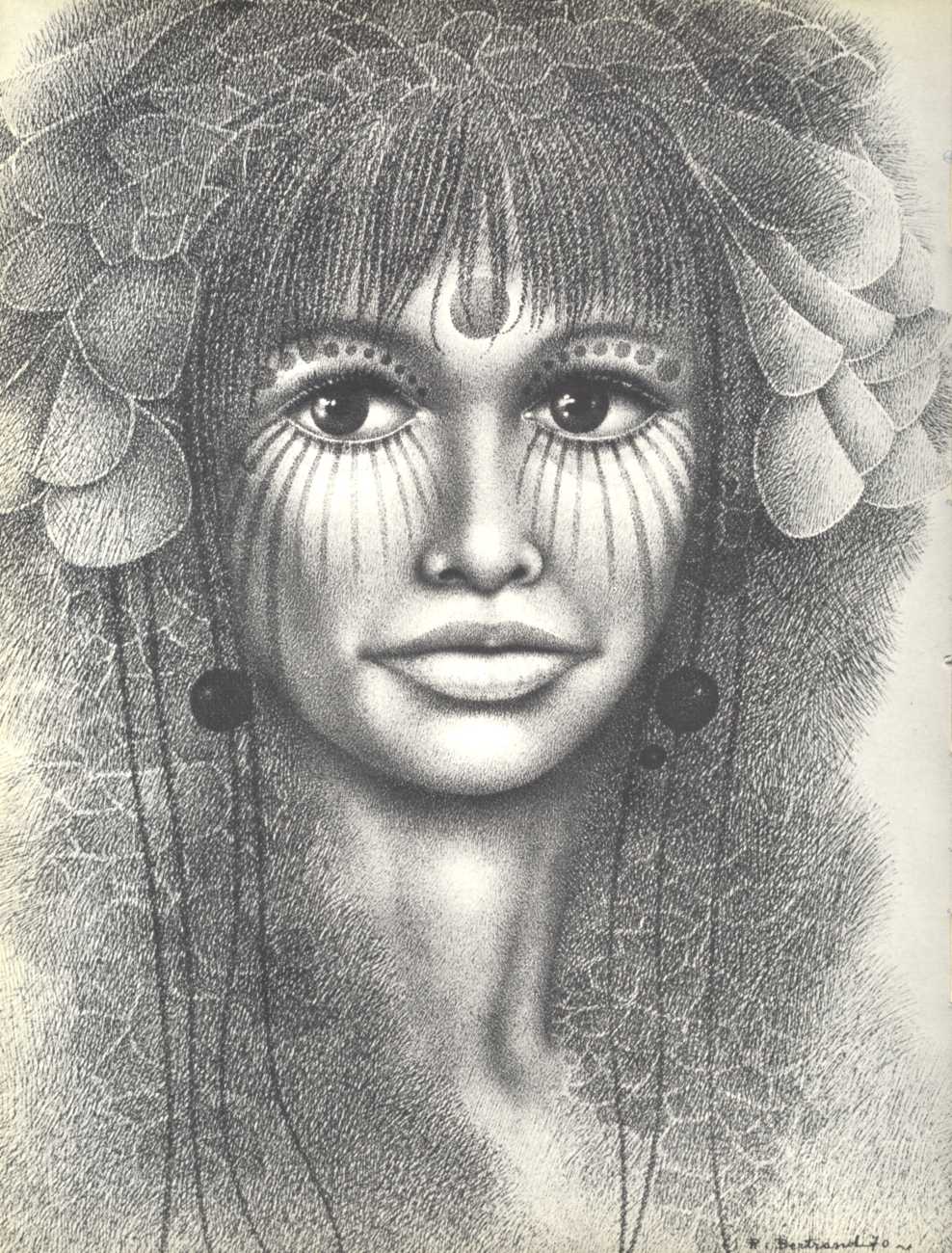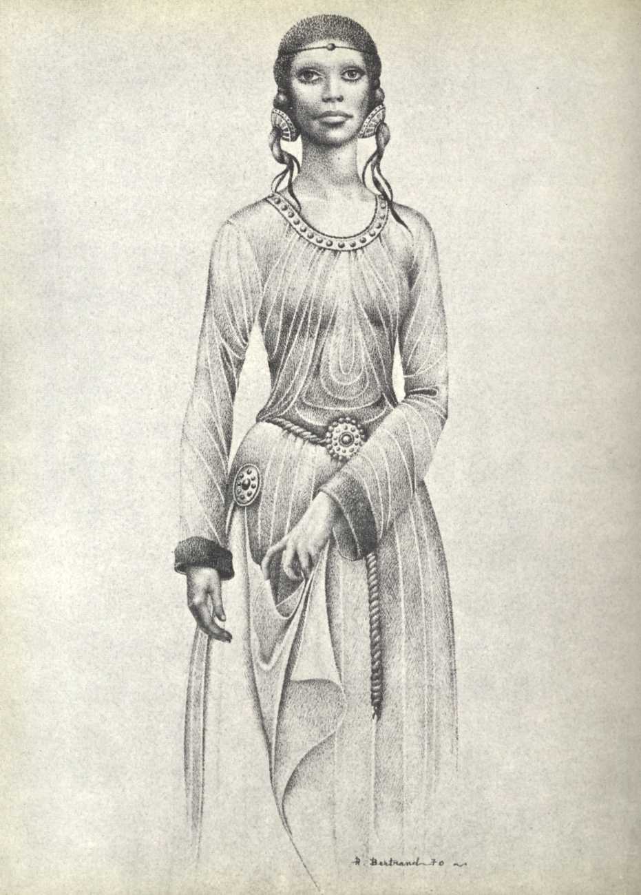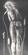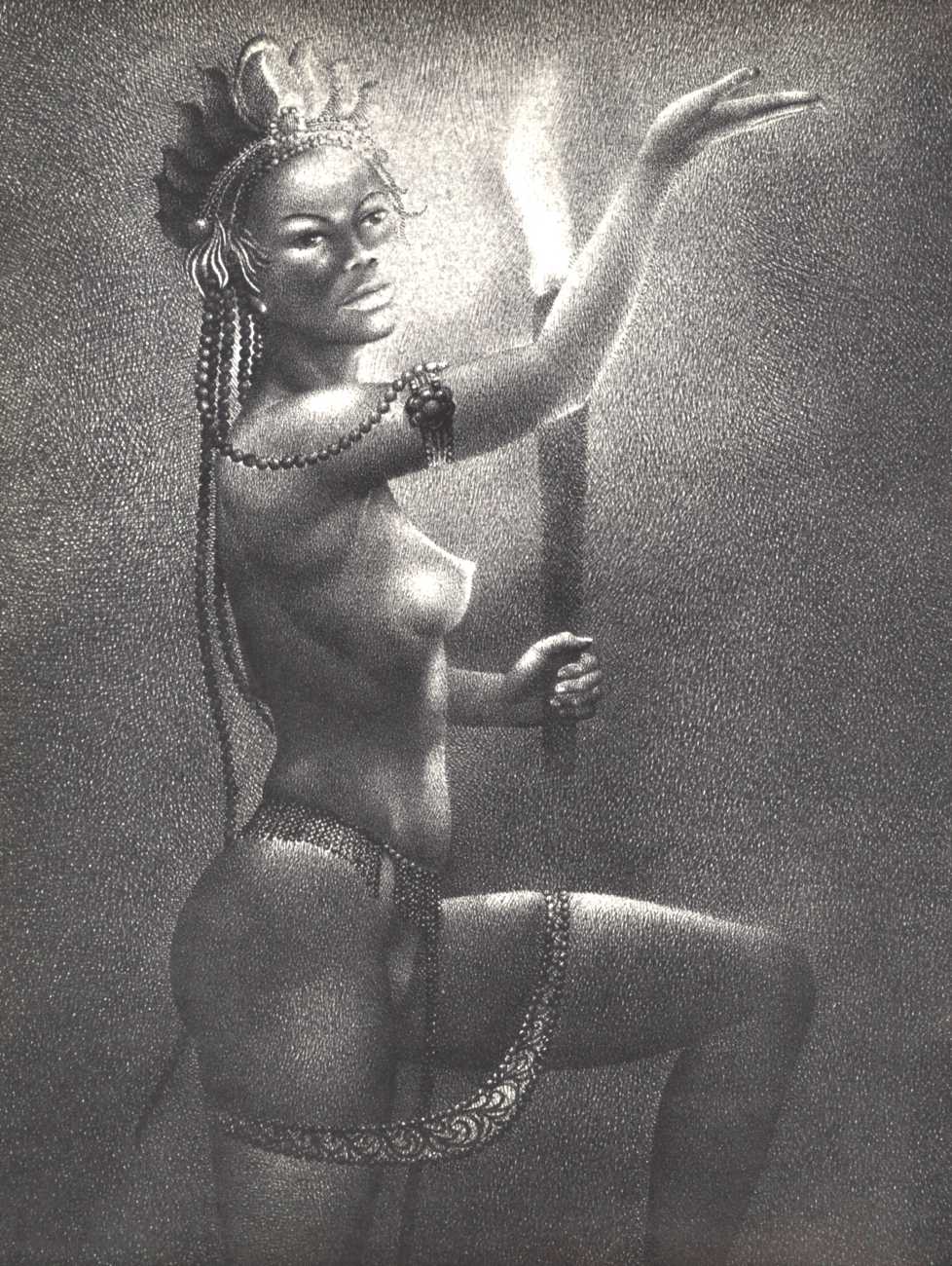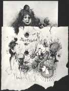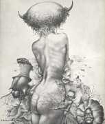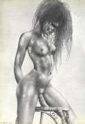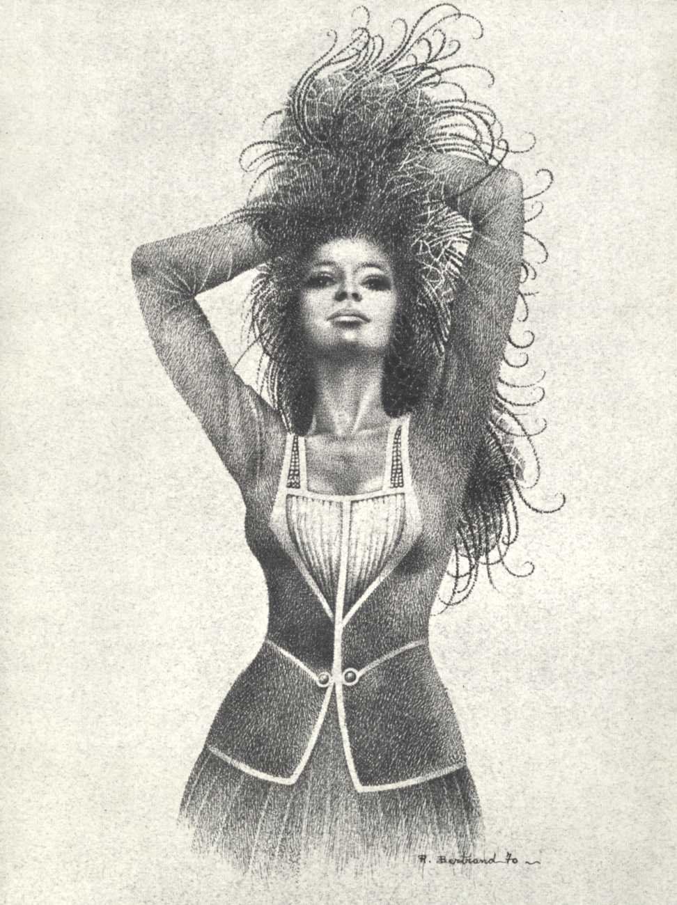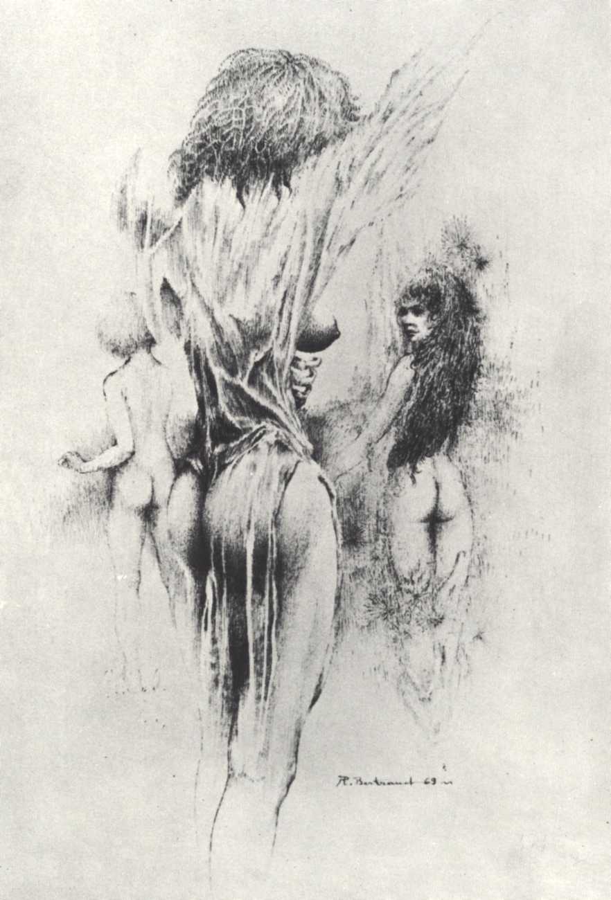 The first Losfeld portfolio of Bertrand drawings was so successful that a second volume, Dessins érotiques II, followed two years later, containing twelve full-colour paintings and 117 new drawings. The series of drawings which appears after the colour plates are more explicit than the artist’s previous published output, and include several which depict, or at least suggest, the involvement of male appendages as well as Bertrand’s ever-present female breasts and buttocks.