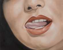 This large series of oil paintings created by Rubinstein are images taken from vintage pornographic films from the 1980s, predominantly those released around the time the pornographic film Deep Throat was released. The frames chosen are particularly striking as they focus on women’s faces during sex, which is an uncommon emphasis. The series of paintings branched out into stills of men and women kissing, showing vulnerability and the quality of sexual pleasure and romance.
