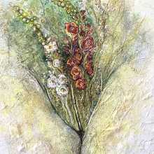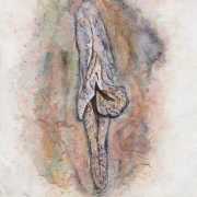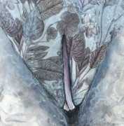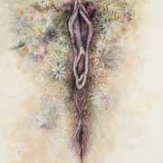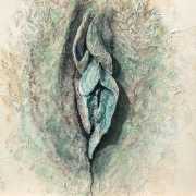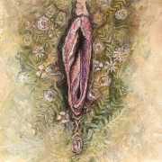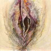 Vulvas emblazoned with cherry blossoms, roses, butterflies, and irises take their place as wonders of the natural world in Jacqueline Secor’s expressive mixed-media paintings. Her statement is political, as far as women’s bodies are battlegrounds, and the series has earned both praise and controversy in equal measure.