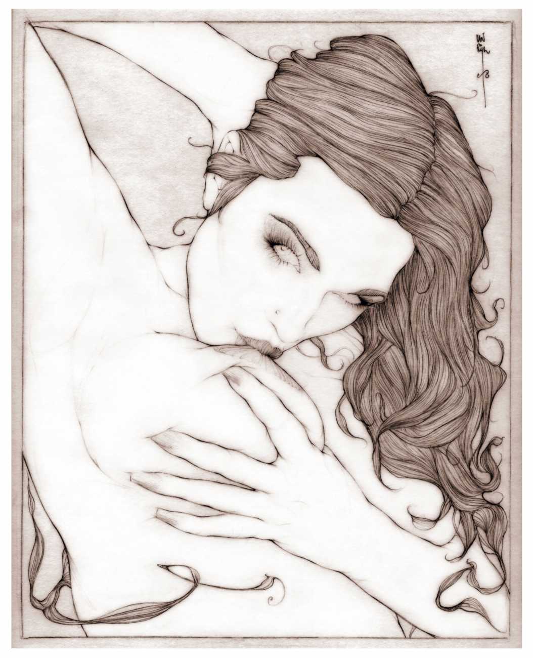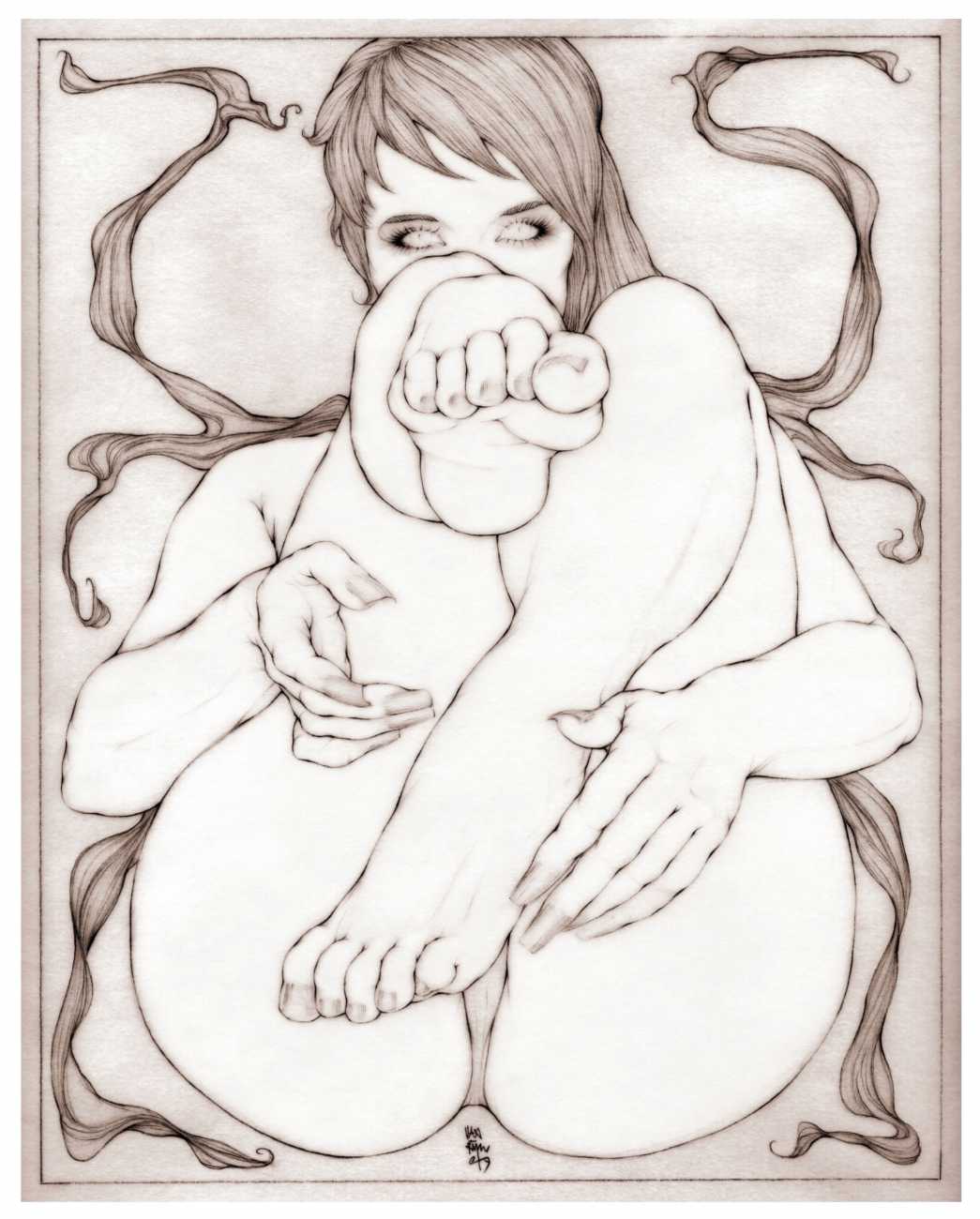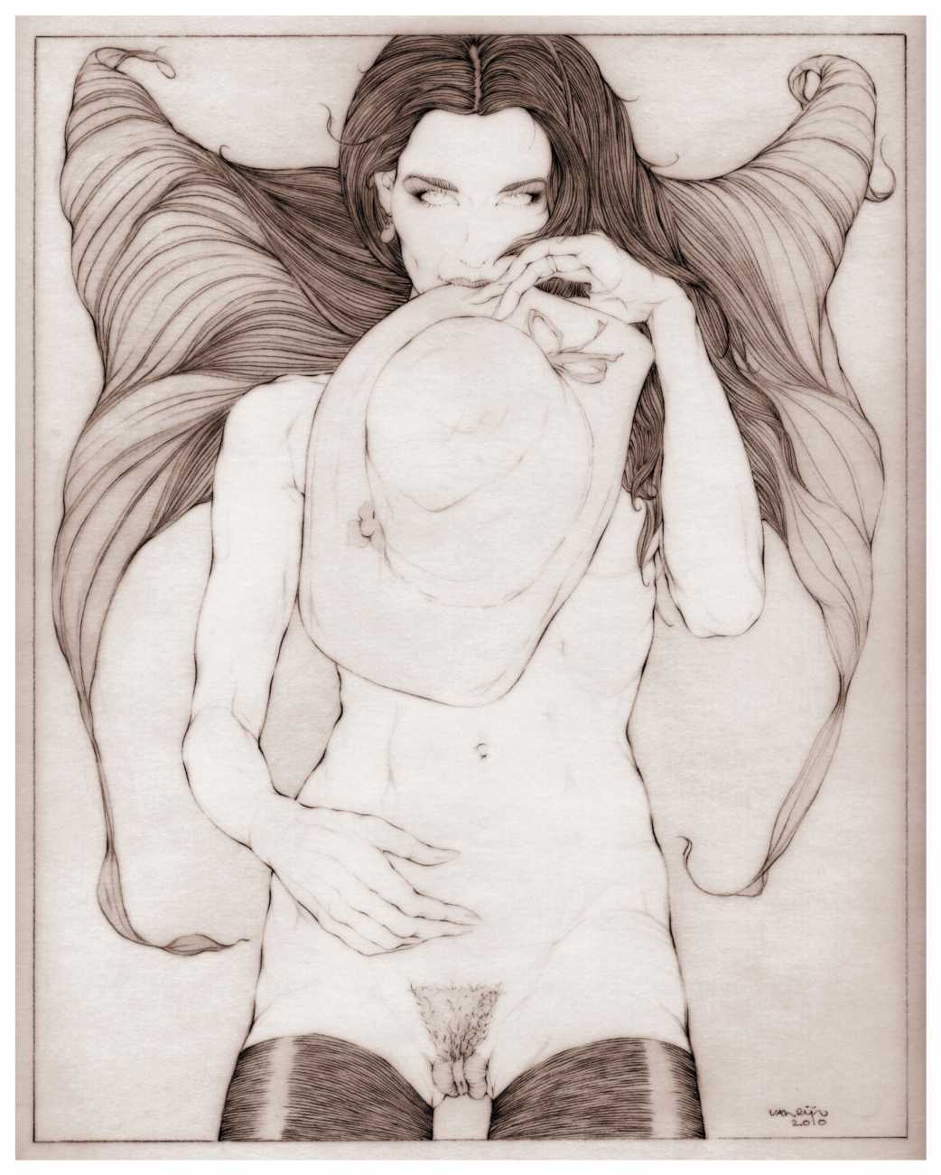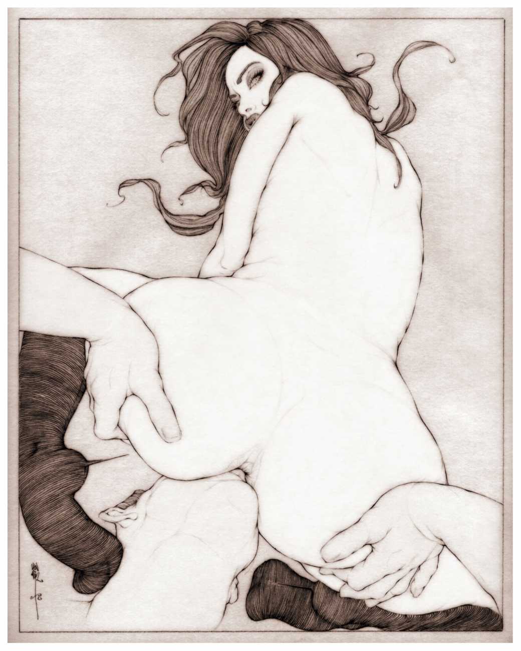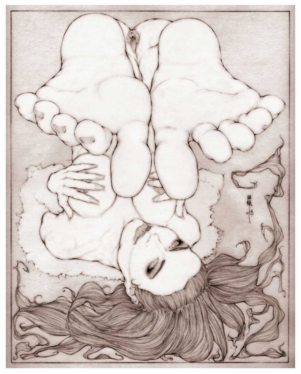 The Book of Hours is a project that Jan van Rijn started in 2008, conceived as a reference to extensively ornamented and illustrated medieval clerical manuscripts and books of prayers. Van Rijn asked the authors to contribute texts to pair with his illustrations, and subsequently developed ornamental artwork, reinterpretations of historic pieces, to complement their choices. This dialogue between the written and the visual makes for an impressive erotic volume in which poetry and prose intermingle with exquisitely-rendered monochrome illustrations, a reinterpretation of a medieval religious format designed to find the sacred within the profane.