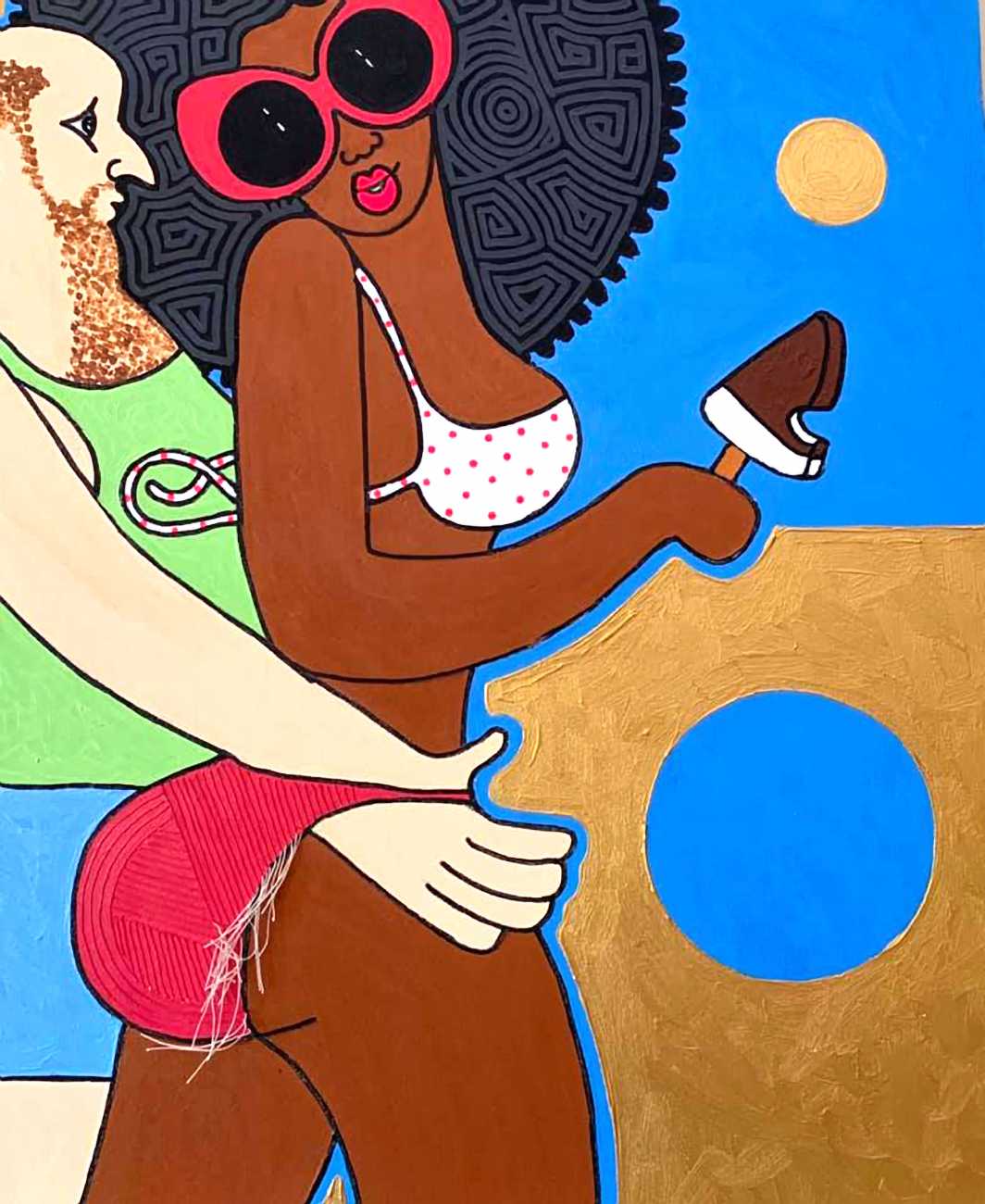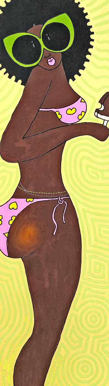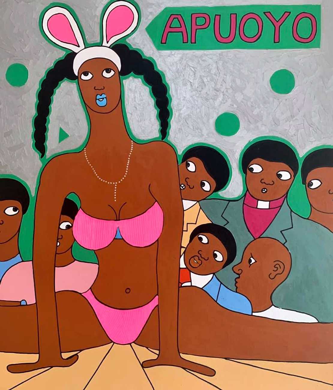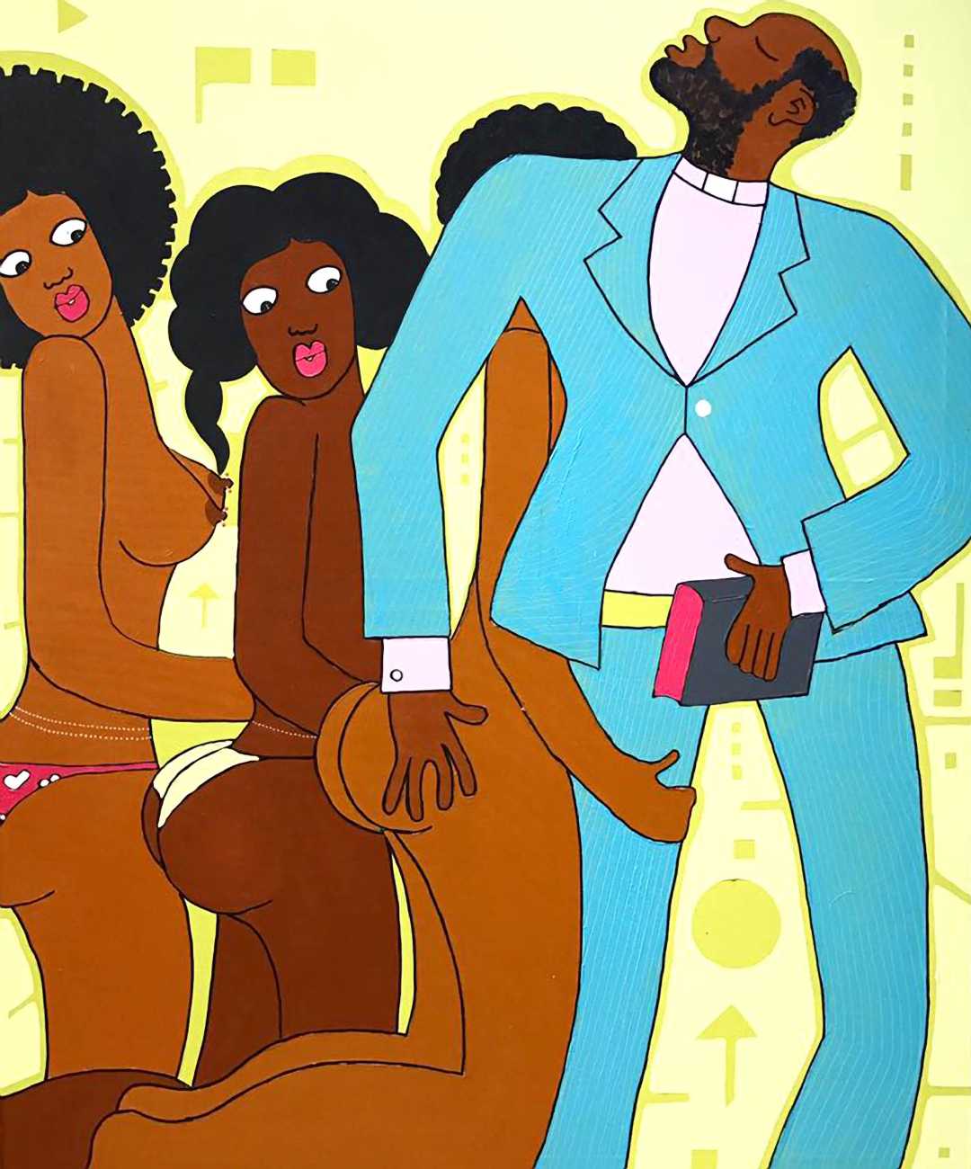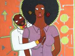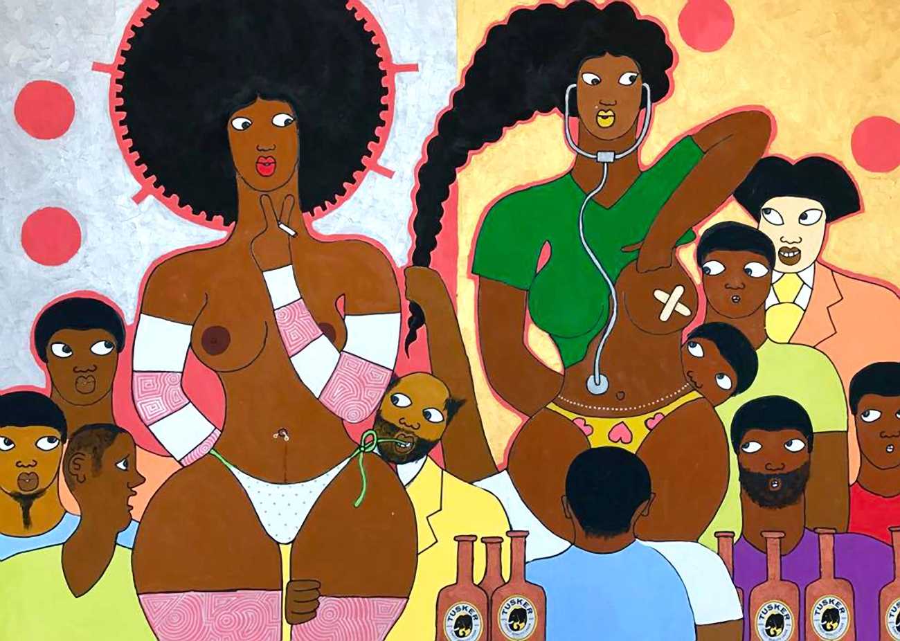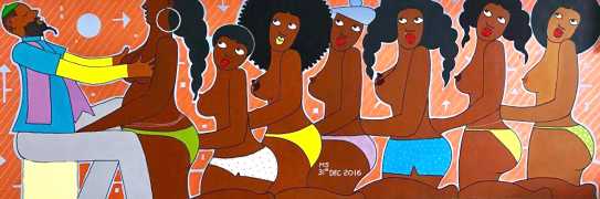 Michael Soi sets out his artist’s statement very clearly: ‘I want to create works that highlight the problems of women in Africa, especially problems related to how men see women here and how they treat them. For many people who look at my work, it is not an interesting subject, because they would rather not talk about it. They would rather bury their heads in the sand and pretend that such things do not exist. My work illustrates the role assigned to women as tools of pleasure, of enjoyment, and as a means to an end for men. My aim is to influence how men see and deal with women.’