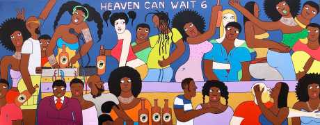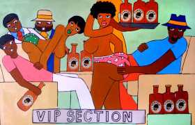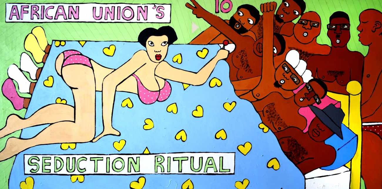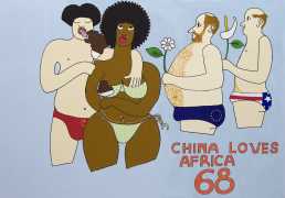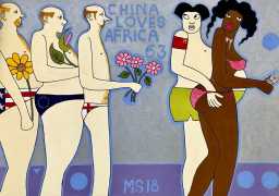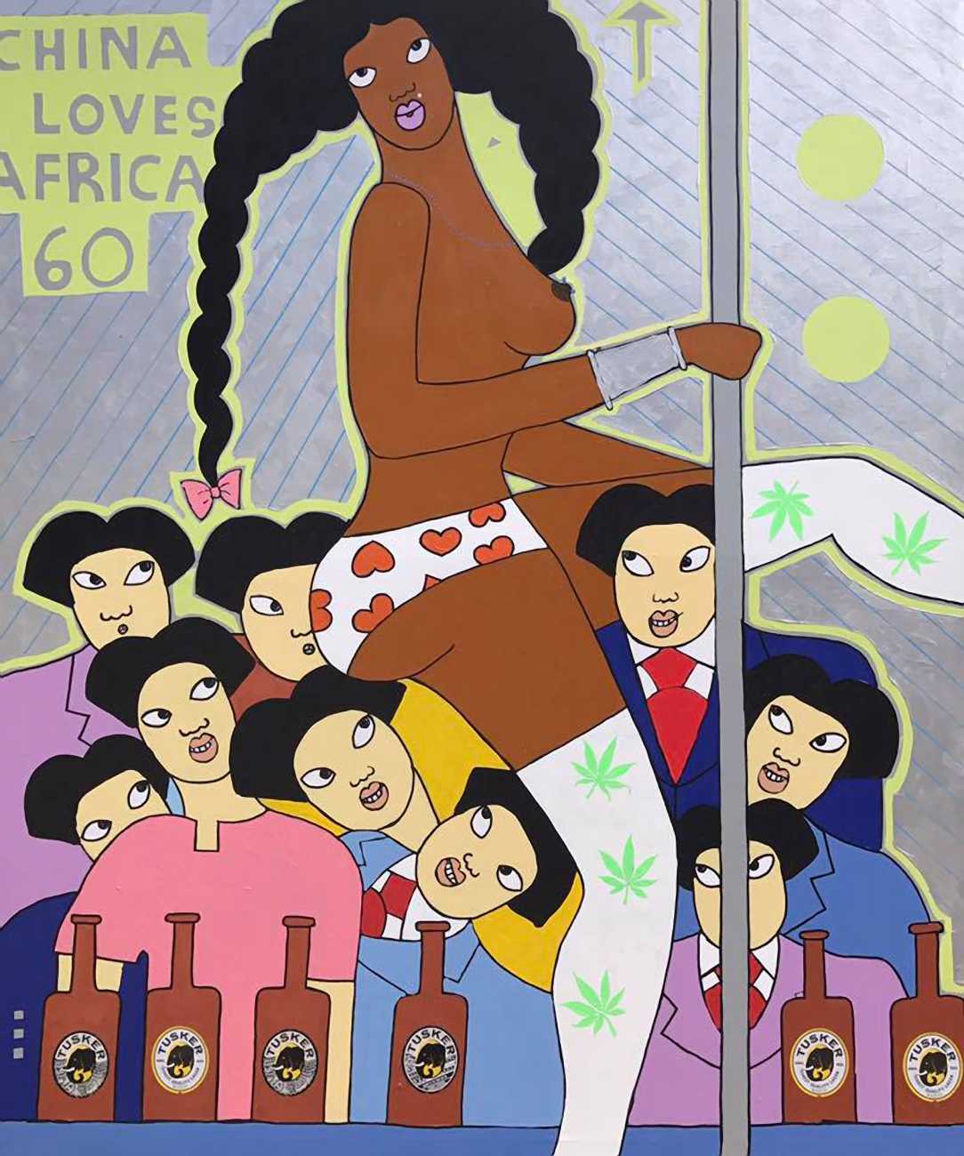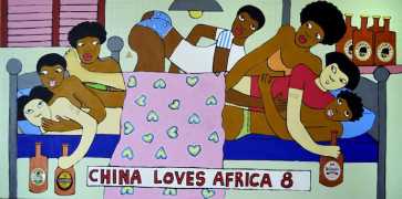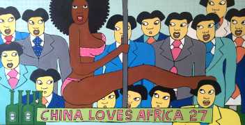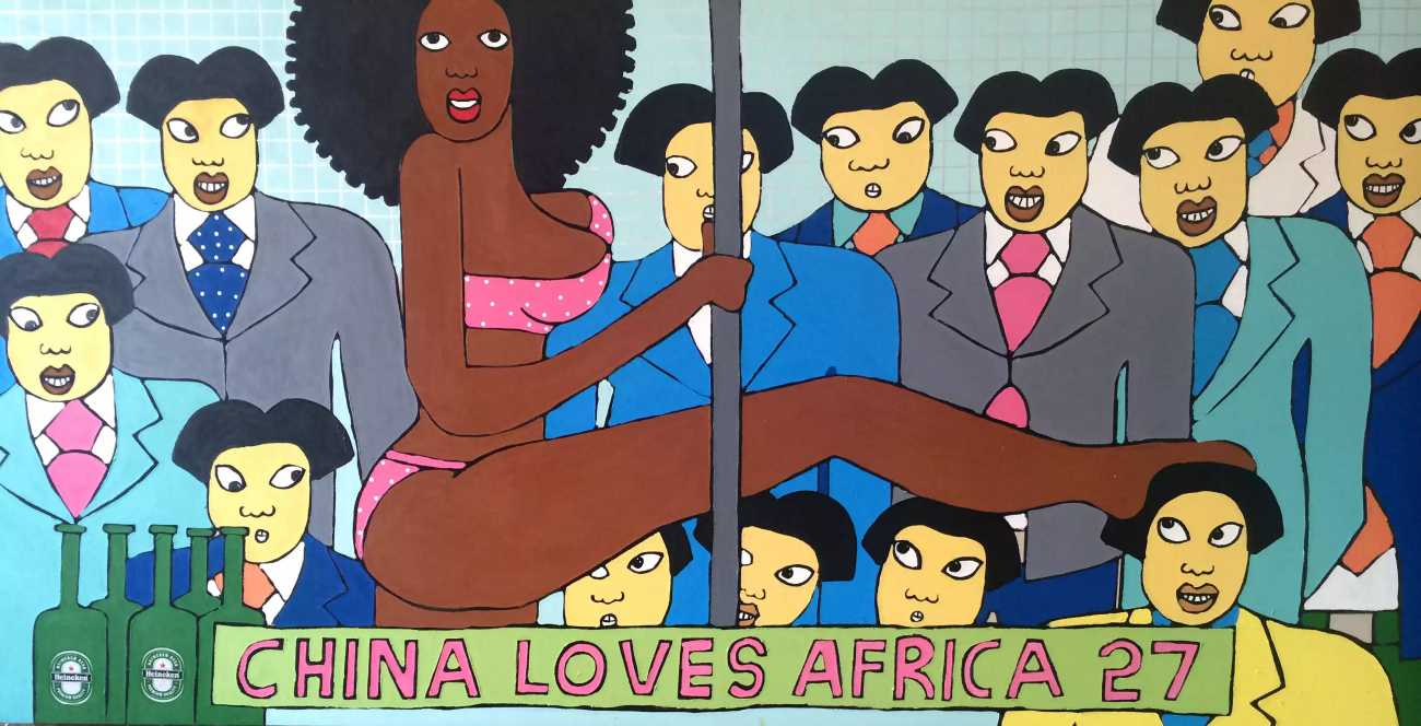 Michael Soi’s paintings are undeniably full of colour and life, but most of them also carry a story, a narrative of an African city where conventional ideas about the role of women collides with the reality of autonomy, independence, and power relationships at every level from the individual to the transnational. The titles of Soi’s paintings tell us a lot about modern urban life in Uganda’s capital – ‘Bachelor Party’, ‘China Loves Africa’, ‘Heaven Can Wait’, ‘Mi Vida, Mi Visa’ (My Life, My Visa), ‘The Teacher’s Lap’, ‘VIP Section’.