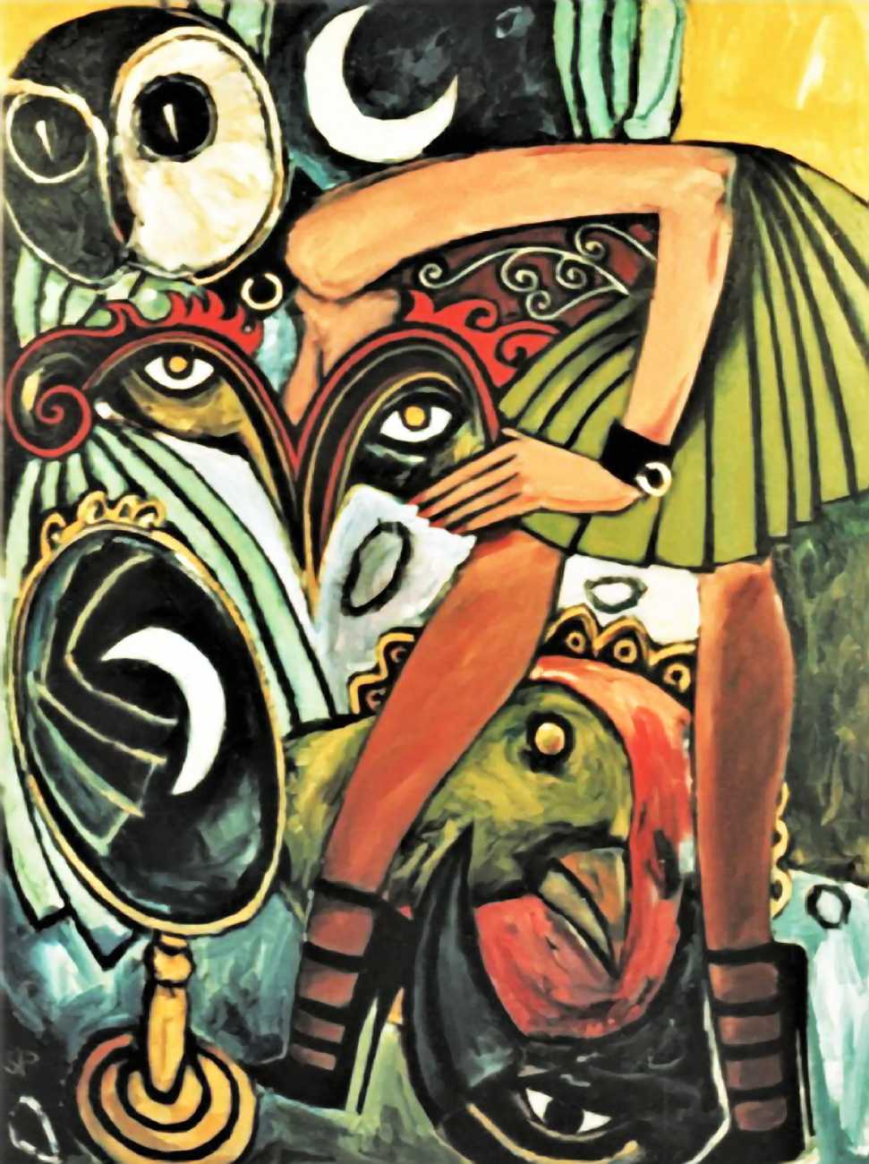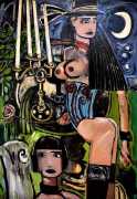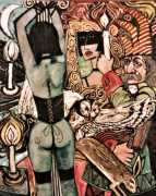 Prince first read the book in 1974, shortly after it was published in Britain for the first time, and as he explains, ‘For more than forty years The Story of O has haunted my imaginings, and persistently altered my course as an artist. My first attempts to create images of my own inspired by the book, in 1978, were faltering and inconclusive. Another attempt a few years later resulted in just two small paintings. It was not until 1996 that I found my way to realising a personal vision. The result, once I had found my feet, was a substantial series of large canvasses dominated by reoccurring motifs that altogether amounted to twelve Stories of O. They were never exhibited as a complete set, but several were exhibited in London at the Coventry Gallery and several more found their way into private collections in the UK and on the continent. One painting found a place on the set of the feature film Preaching to the Perverted, and was glimpsed not only near the end of the film but also on an early edition of TV’s EuroTrash.’