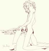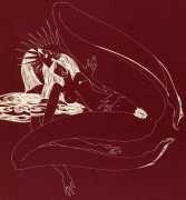 John Boyce met the French author and diarist Anaïs Nin in 1969 at a private showing of an experimental film he had made with fellow director Ivor Flom; she was impressed with his approach to art, and seven years later suggested a collaboration on a book of illustrations that would complement selected erotic passages from her novels and diaries. The joint project that followed seemed a natural synthesis of approach from artists who shared a similar aim, to express the inner workings of the unconscious. After a year of reading Anaïs Nin’s complete novels and diaries, Boyce selected passages and drew more than eighty drawings in six sequences of ‘Love Stories’. When it was published, the New York Book Review was highly enthusiastic, writing ‘Rarely has the human imagination produced a work that was more exquisitely erotic’. Aphrodisiac went on to be published in France, Britain and Spain. For Boyce, the illustrations were the result of a fifteen-year pursuit of line drawing as a point of departure for this very personal artistic statement.