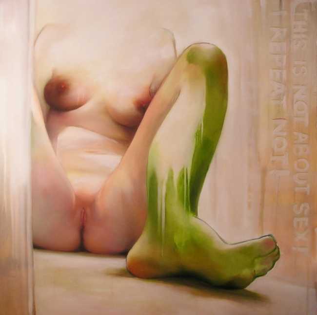 Made mostly between 2000 and 2016, the art of nakedness is what Westerhout’s work is mostly known for, and in the broadest sense of the word, both literally and figuratively. She has the ability to convey the tenderest of intimacies and the harshest of social commentaries in her brushwork, giving the viewer every opportunity to relate to the painting from their own experience and response. As she explains, she steers clear of taking her art too far in the direction of photorealism, because then the subtlety and element of surprise is lost. Her technique encourages us to look for the stories that lie within; feelings and emotion are as important to her as the subject. Her paintings often render some aspects of the body faithfully, then distort others and offer unexpected textures and contexts. Though this may have disconcerting results, each of her works conveys a vulnerable and honest quality.