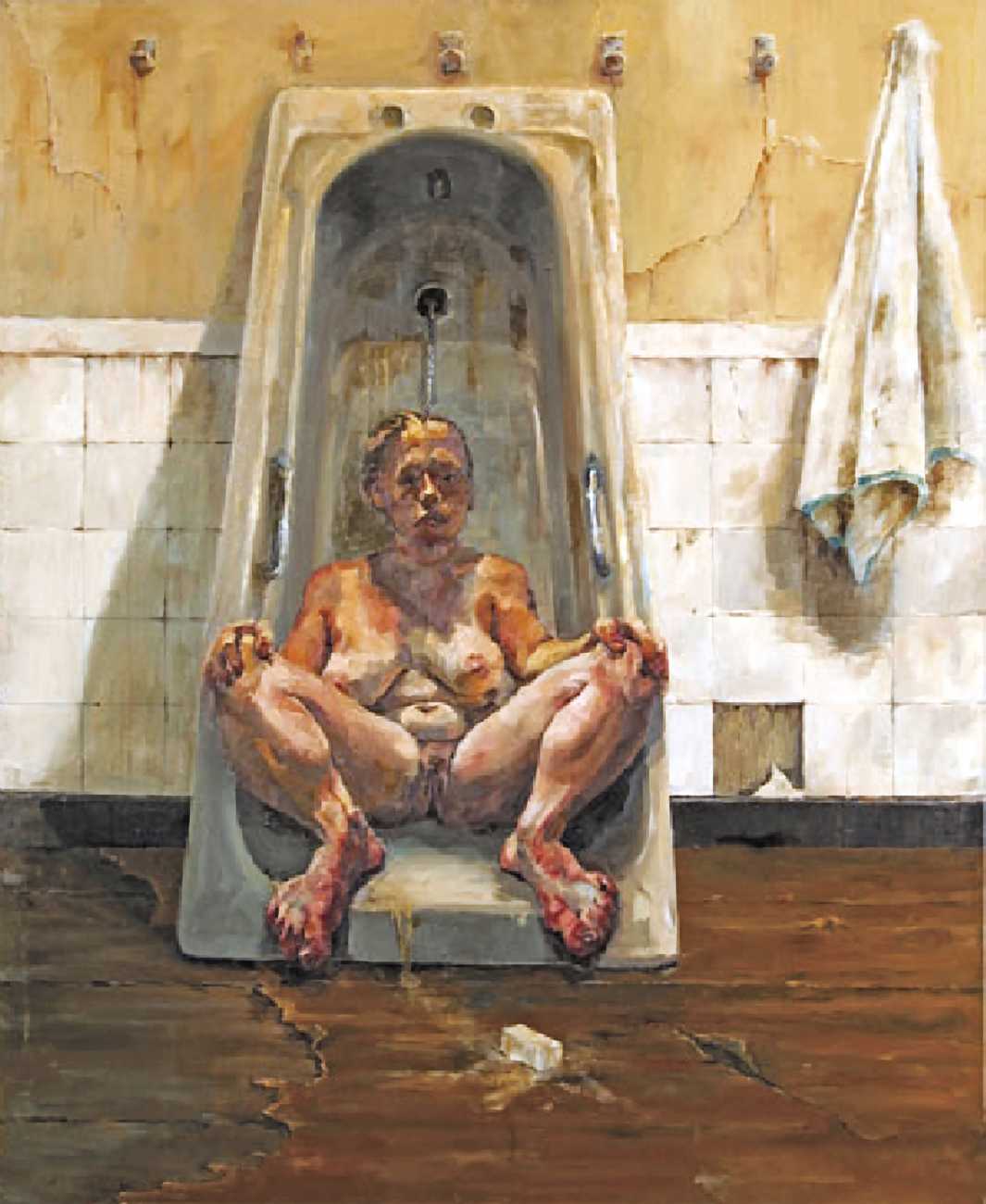 There is a mundane reality to many of Saville’s paintings, a challenge to see and accept women’s bodies as they are rather than how they are supposed to be, and she challenges her audience to be as honest about their own physicality as she is. She must be one of the very few artists to paint herself sitting on the toilet.