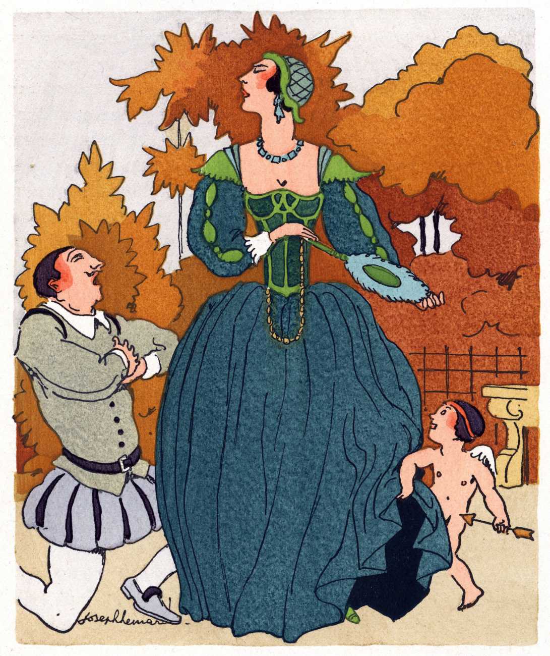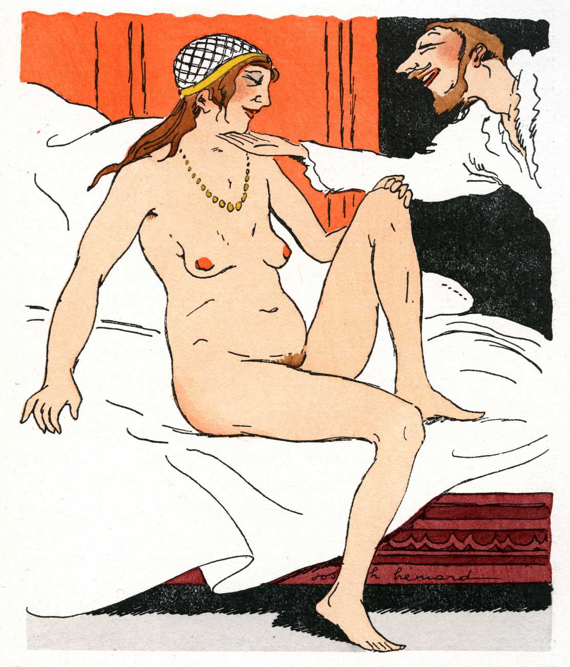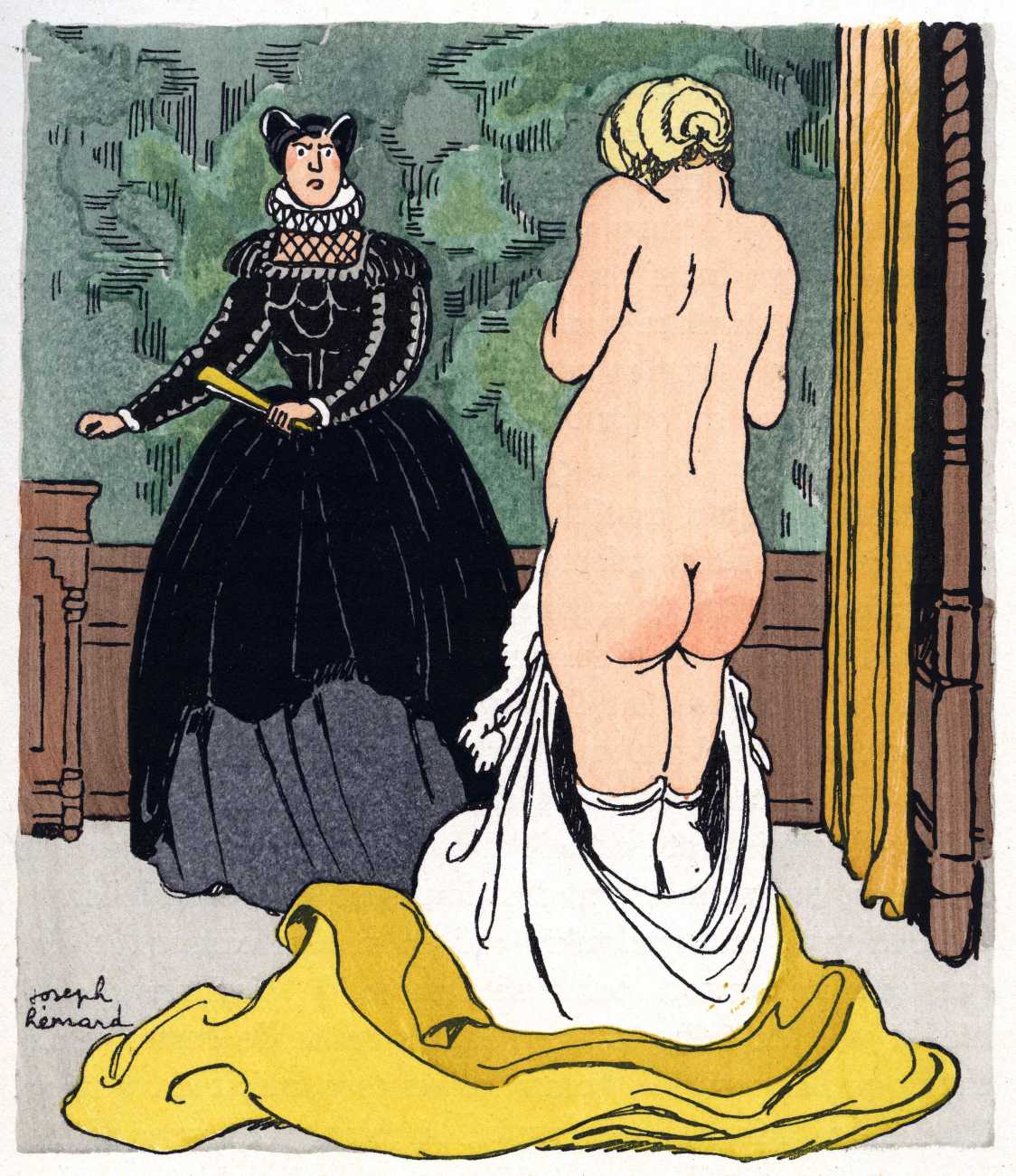 This two-volume edition of Les dames galantes includes the best-known of Brantôme’s tales, accompanied by thirty or so of Joseph Hémard’s colourful and witty illustrations. They are very much ‘galante’, gently erotic rather than overtly sexual, but there is quite enough naked flesh to whet the imagination.