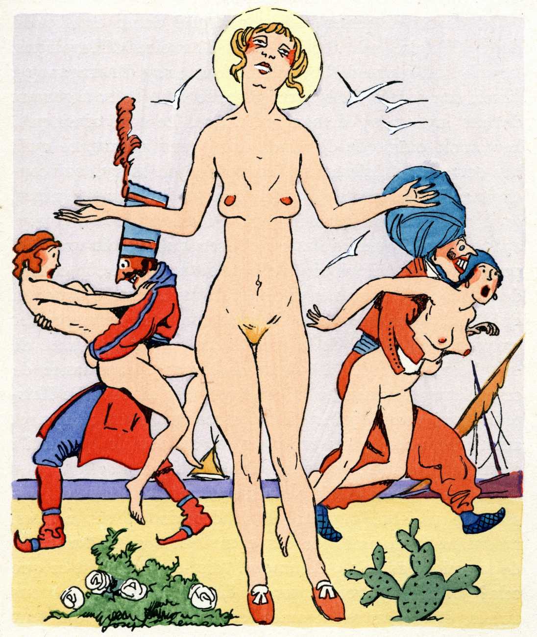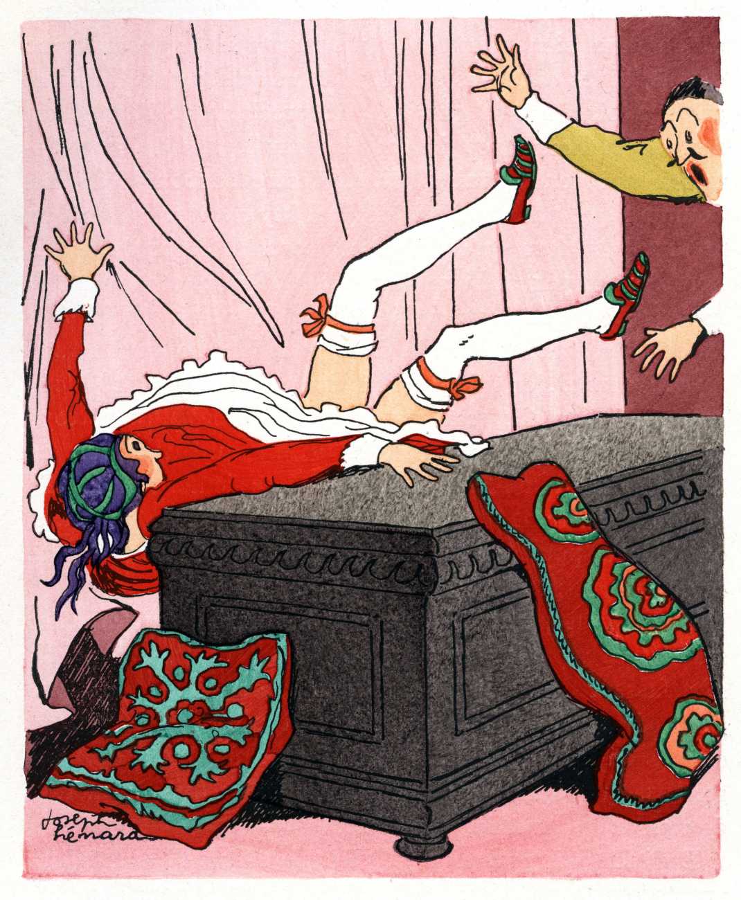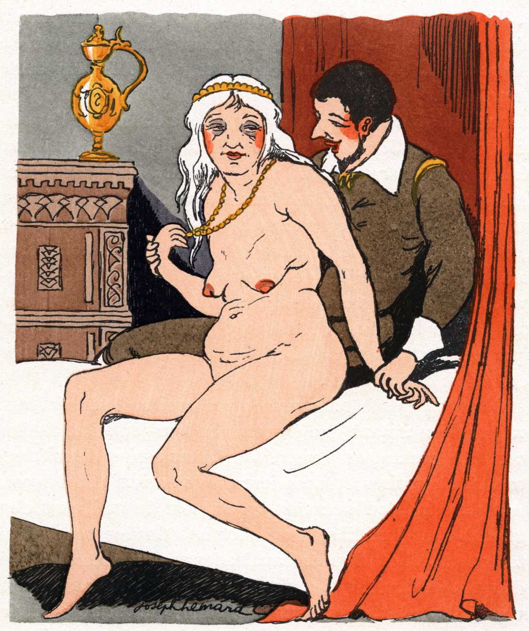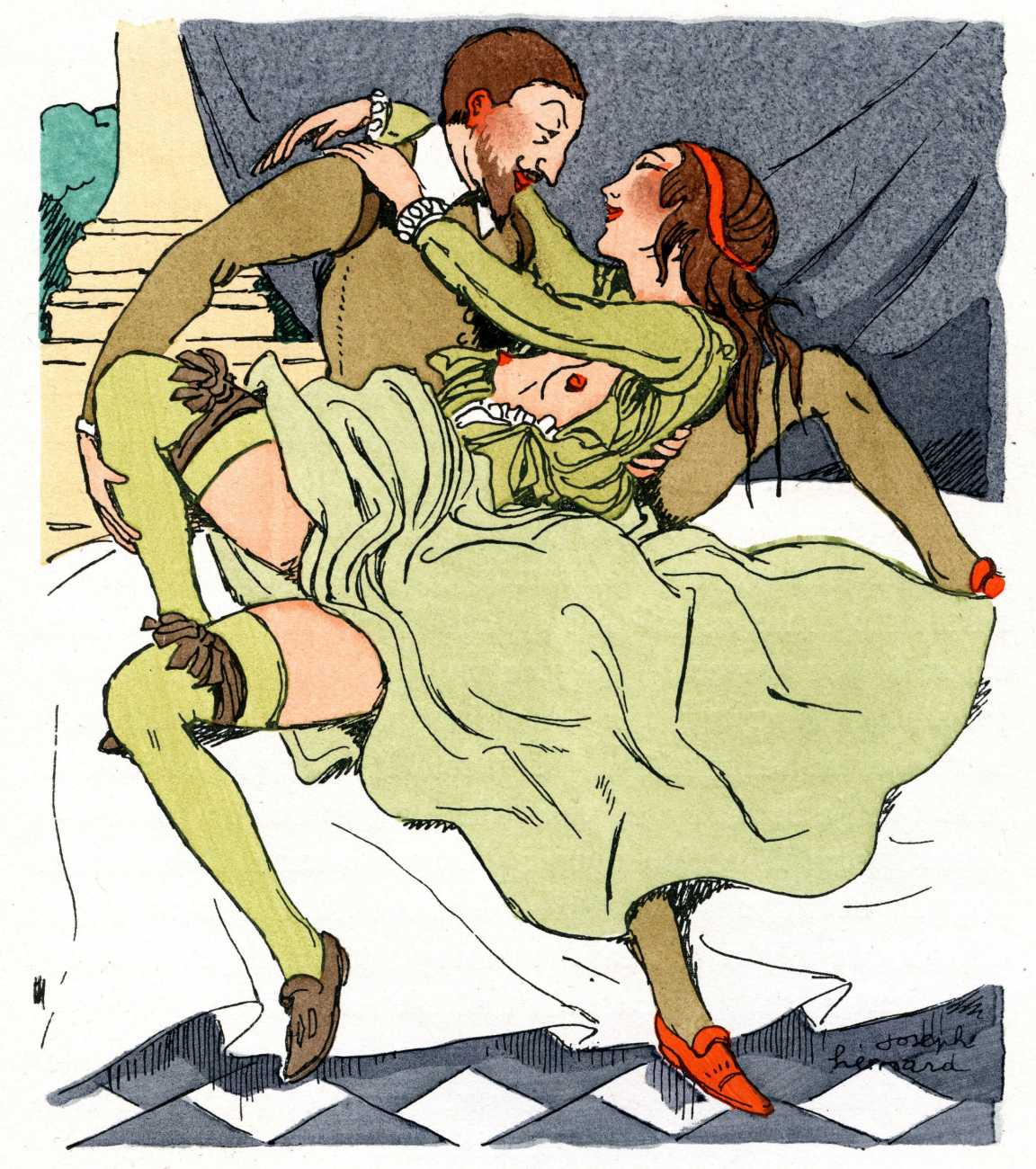 This two-volume edition of Les dames galantes includes the best-known of Brantôme’s tales, accompanied by thirty or so of Joseph Hémard’s colourful and witty illustrations. They are very much ‘galante’, gently erotic rather than overtly sexual, but there is quite enough naked flesh to whet the imagination.