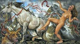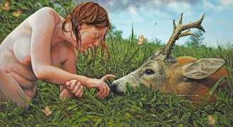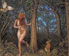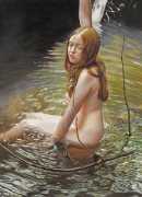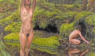 The connection between nakedness and the erotic is a tricky subject in an age when public nudity per se is considered taboo. Is the unadorned naked human body truly erotic, or is it just who we are in our natural state? This is the indeterminate borderland depicted in such powerful detail in Susannah Martin’s paintings, encouraging us to think carefully about how we relate to our own skin and to the raw nakedness of the natural world. In her paintings there is connection and joy, exploration and company – all totally naked.
