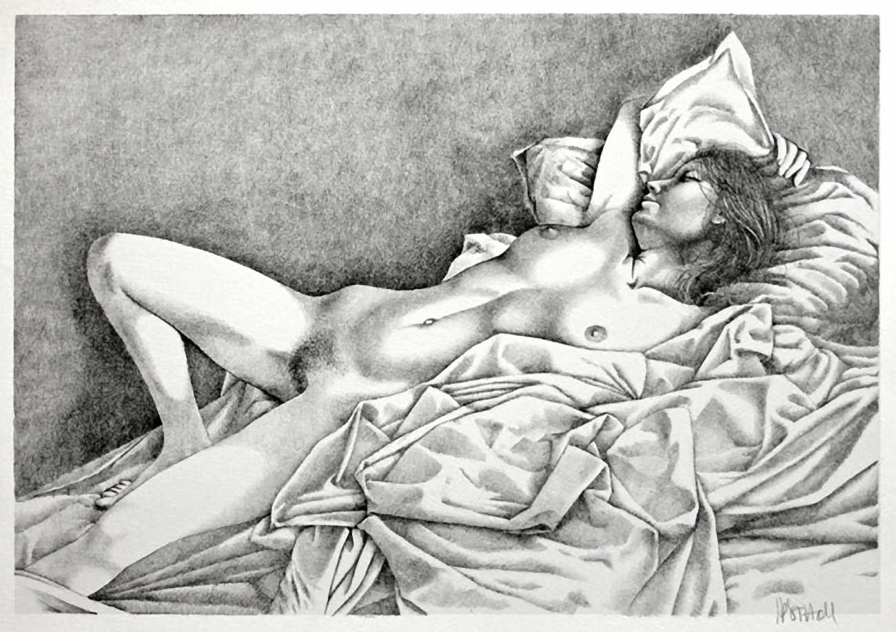 The Stholl-illustrated Le rideau levé was published by Les Éditions de l’Ibis in a limited numbered edition of just 310 copies.