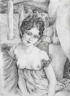 It is interesting that for an expert in cultural history who must have made many architectural drawings for his various publications, nearly all of Rasp’s artwork to have survived contains more or less erotic elements, often explicitly sexual. These are not, however, intended to be particularly titillating; they are carefully considered works with titles like ‘At the Close of the Golden Age, or Moses destroys Parnassus’; ‘The Creation of an Acrobat Monument in Monument Valley’; ‘Polyphemus appears to Galathea’; and ‘The Entrance of the Virtual Apparition’.