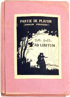 Partie de plaisir (Pleasure Party) is one of Sapach’s more finished portfolios, presented in a folder of seventeen circular drawings mounted on pink card, accompanied by two matching explanatory circular devices and a mounted paper cover.