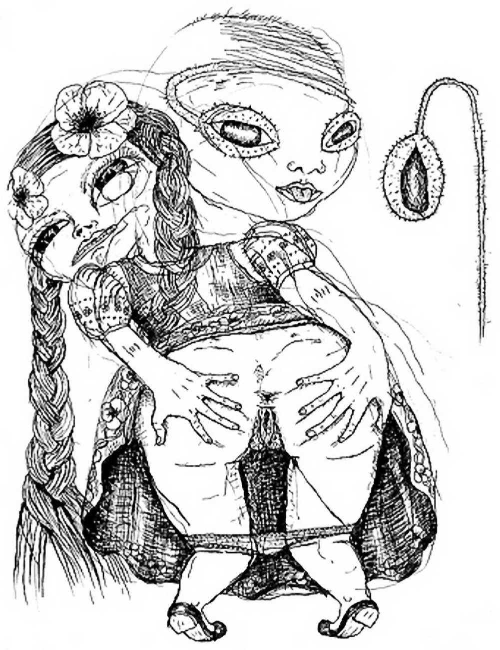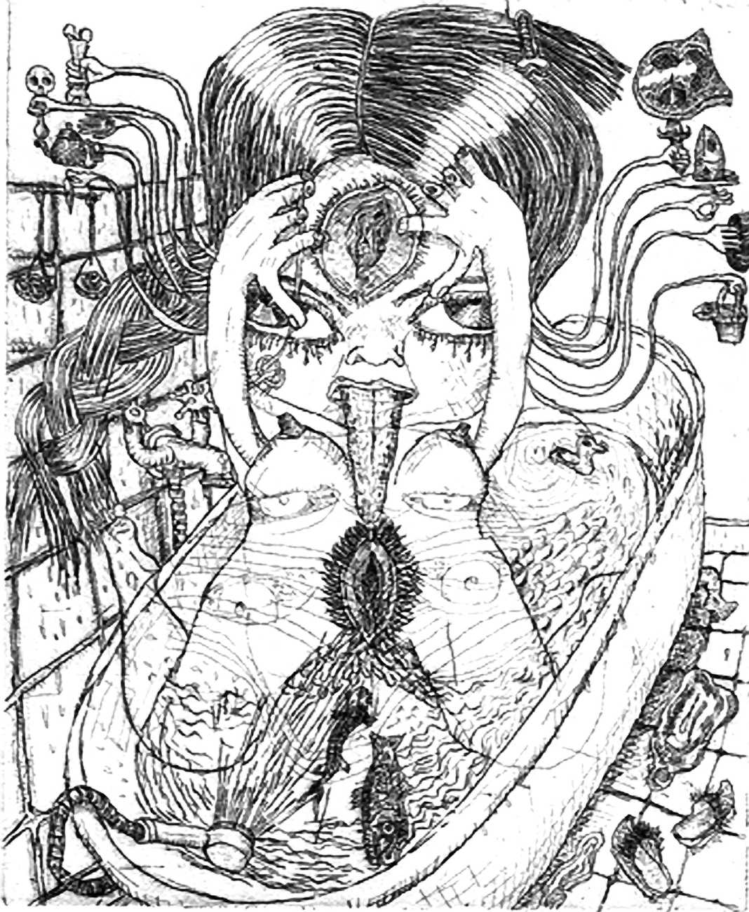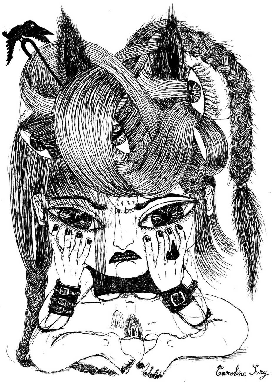 Compared with the amount of in-your-face art featuring rampant male genitalia, depictions of the female equivalent are rare. In Caroline Sury’s hand, though, pen and ink offer a powerful collection of women taking delight in showing us everything they have down below. With equally explicit titles like ‘Elle montre ses fesses’ (She Displays Her Ass) and ‘Je serai ta chatte’ (I’ll Be Your Pussy), she challenges her viewers to deal head-on with any fantasies they may have about female sexuality.