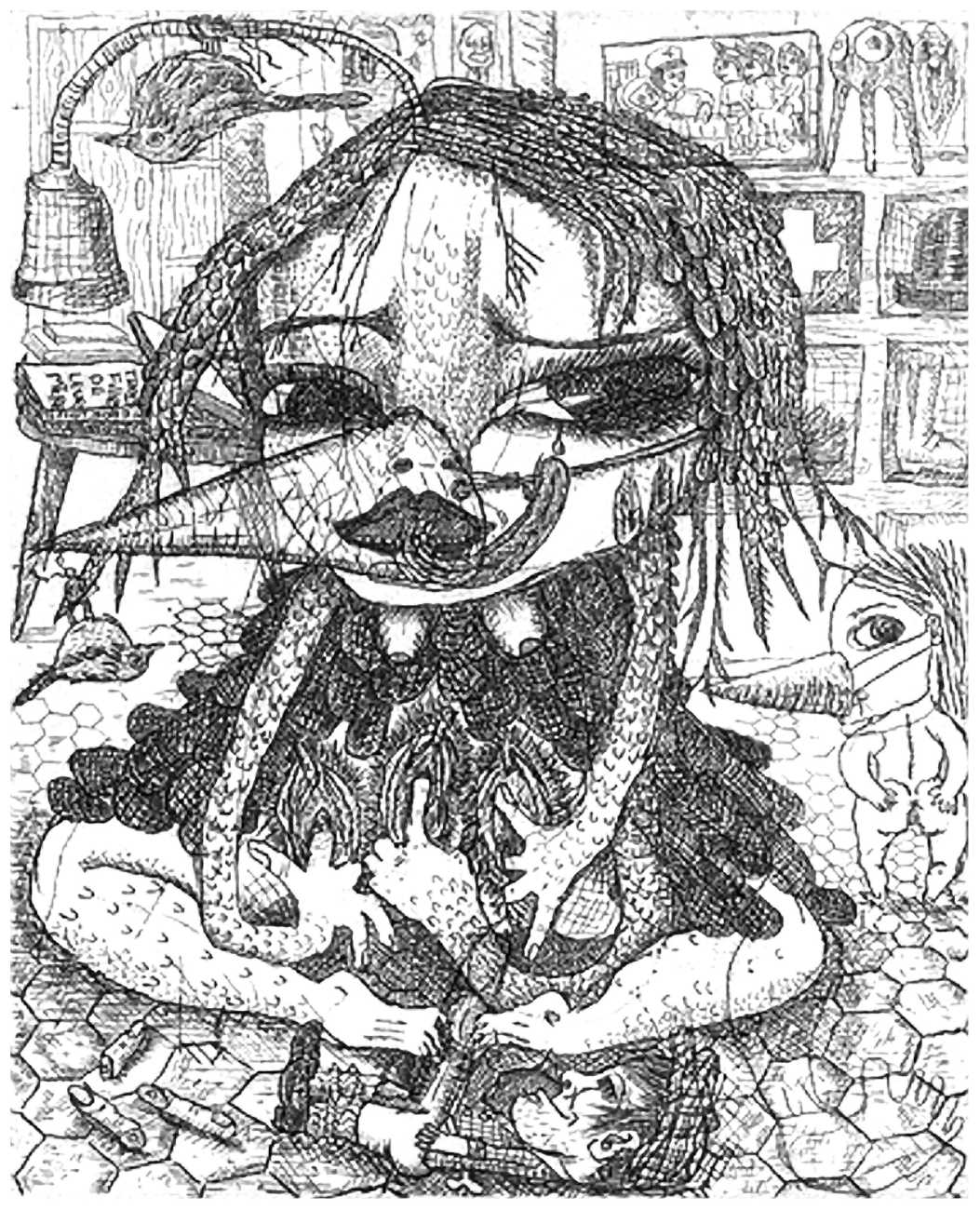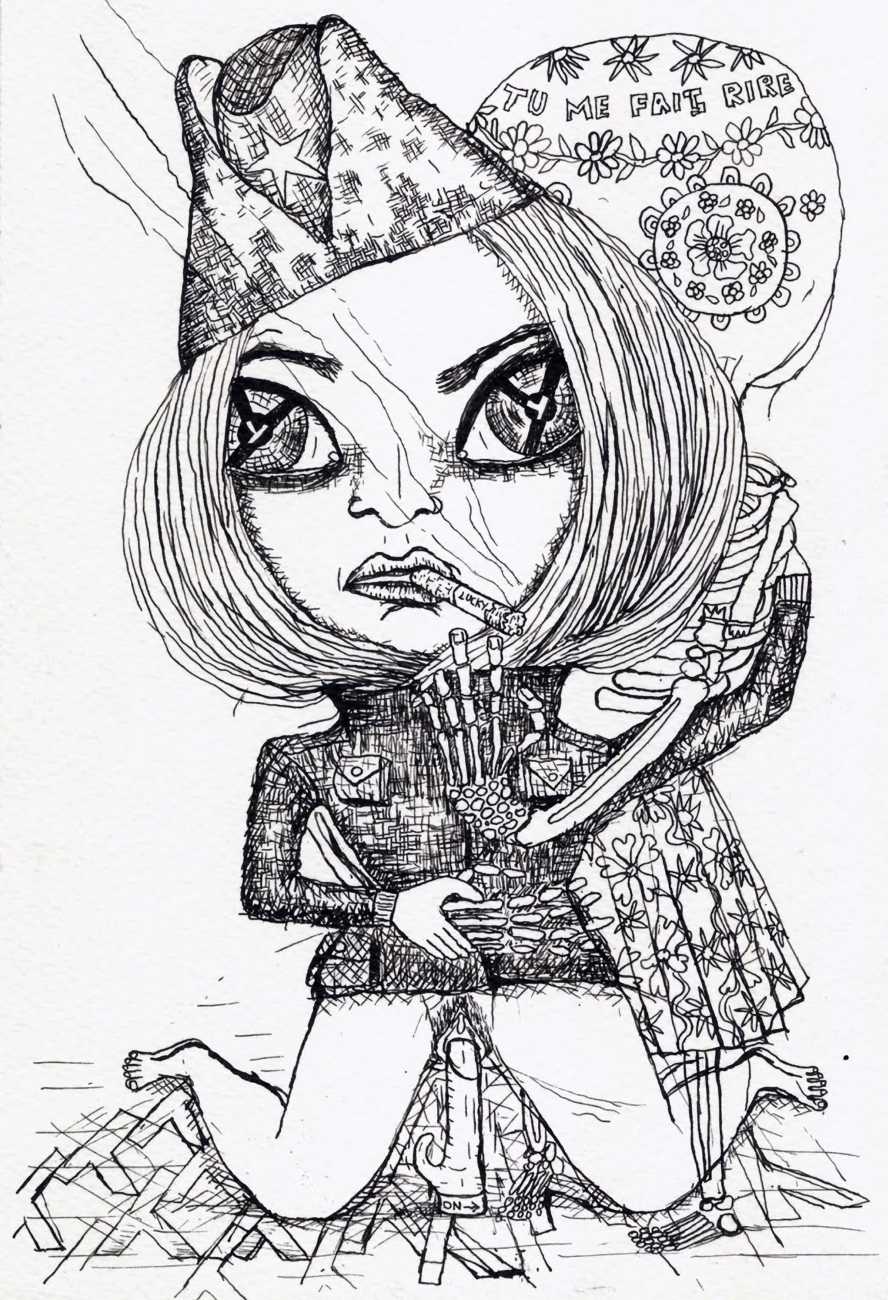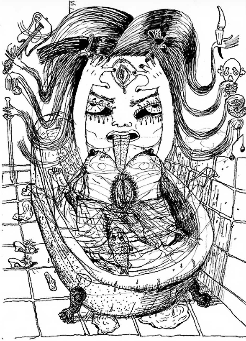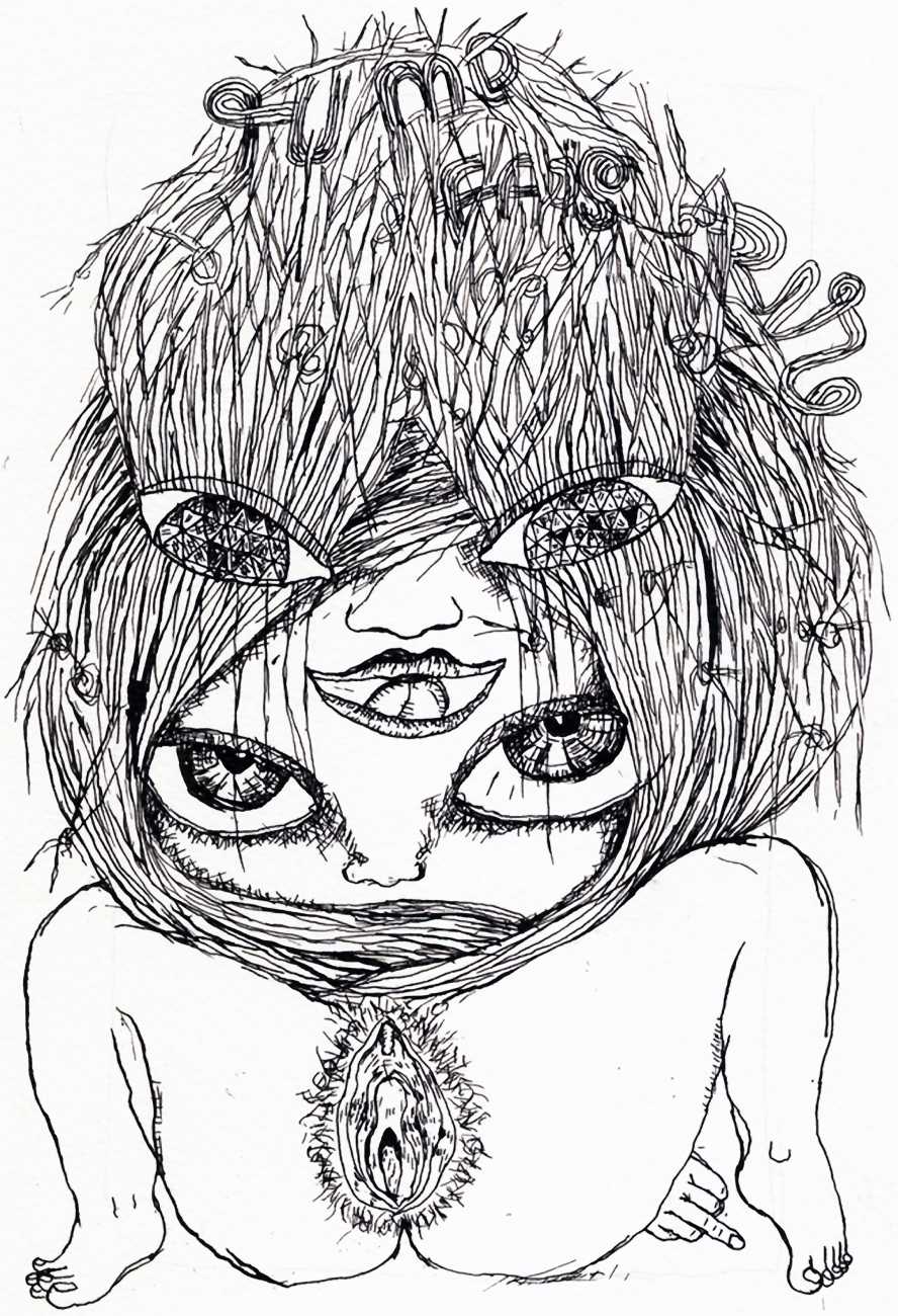 Vagina Mushroom is the title of the occasional limited-edition magazine that was published by Le Dernier Cri between 2000 and 2005, in which many of these drawings first appeared, along with art by more than thirty other women, including Georgeanne Deen, Nathalie Lété, Pirjetta Brander, Marilena Pelosi, Marie Noël, Marie Negretti, Laetitia Brochier, Emmanuelle Pidoux, Yuko Mizobushi, Sophie Brunelière, Valérie Berge, Clémence Paldavi, Silvia Lenardon, Judith Drew, Kathi Käppel, Elina Mérenmies, Cathi Ward, Julie Doucet, Jule Kruschke, Joëlle Izoz, Thi Kim Thu, Ulli Lust, Anna-Livia, Nina Kataila and Terhi Ekebom.
