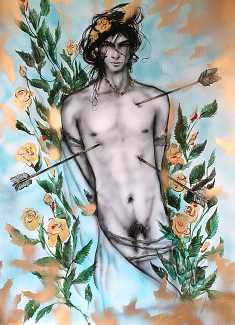 Jason and the Argonauts, St Sebastian, Cupid – you name it, Kirill Fadeyev will imagine and paint it, complete with bows, arrows, shields, ships, wings – and penises. He clearly loves his myths and symbolism, and these paintings make maximum use of gold paint to highlight the erotic element.