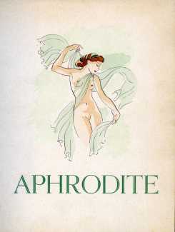 By the time Éditions de la Mappemonde commissioned Renée Ringel to produce sixteen watercolours for this edition, Aphrodite was an established vehicle for acceptable mild titillation, which Ringel managed perfectly with the novel’s protagonists engaged in naked but relatively chaste interactions.